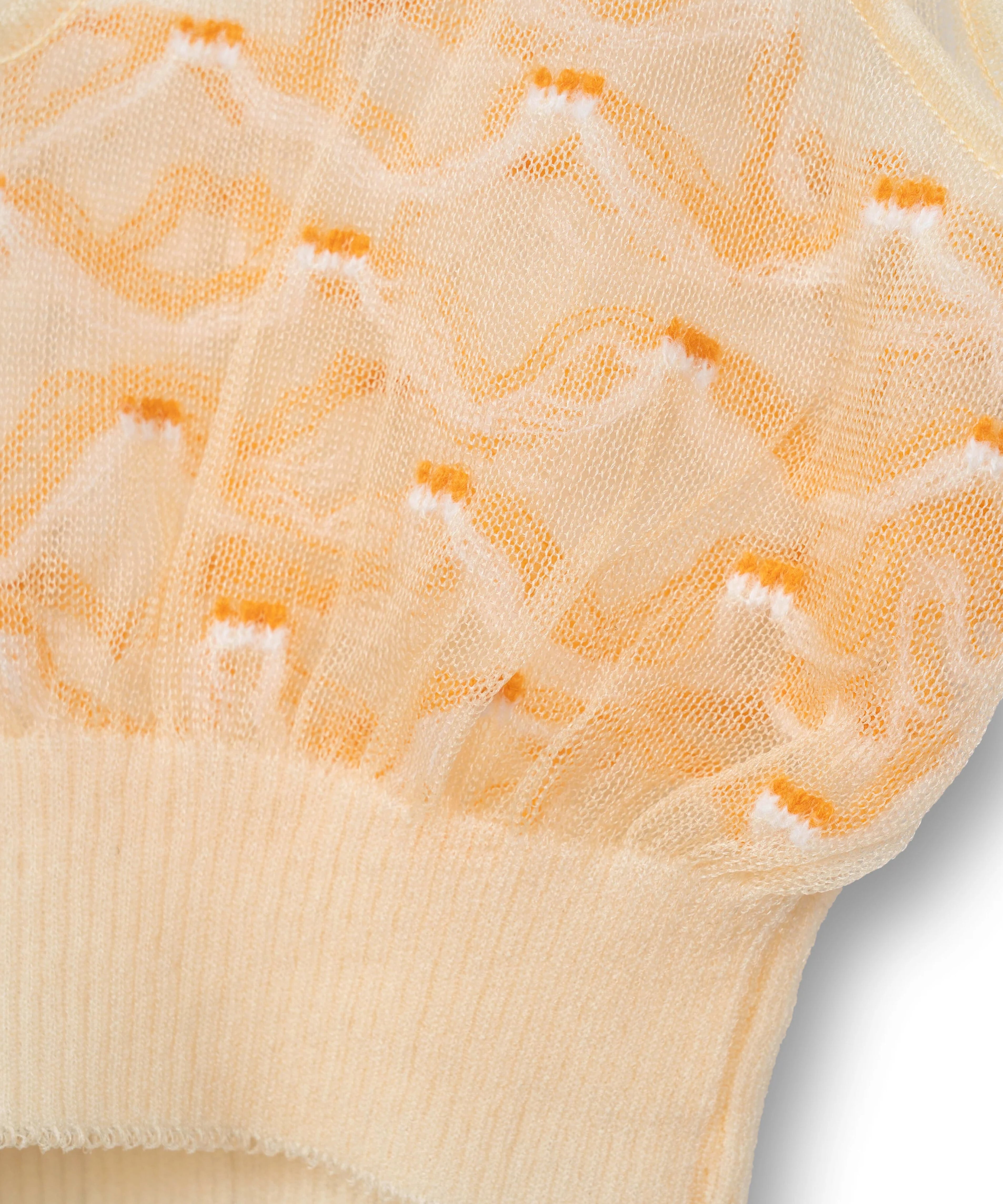 ボディにはクリアな糸(ナイロン×ポリエステル)を使用し、繊細な透け感と軽やかさを演出しています。