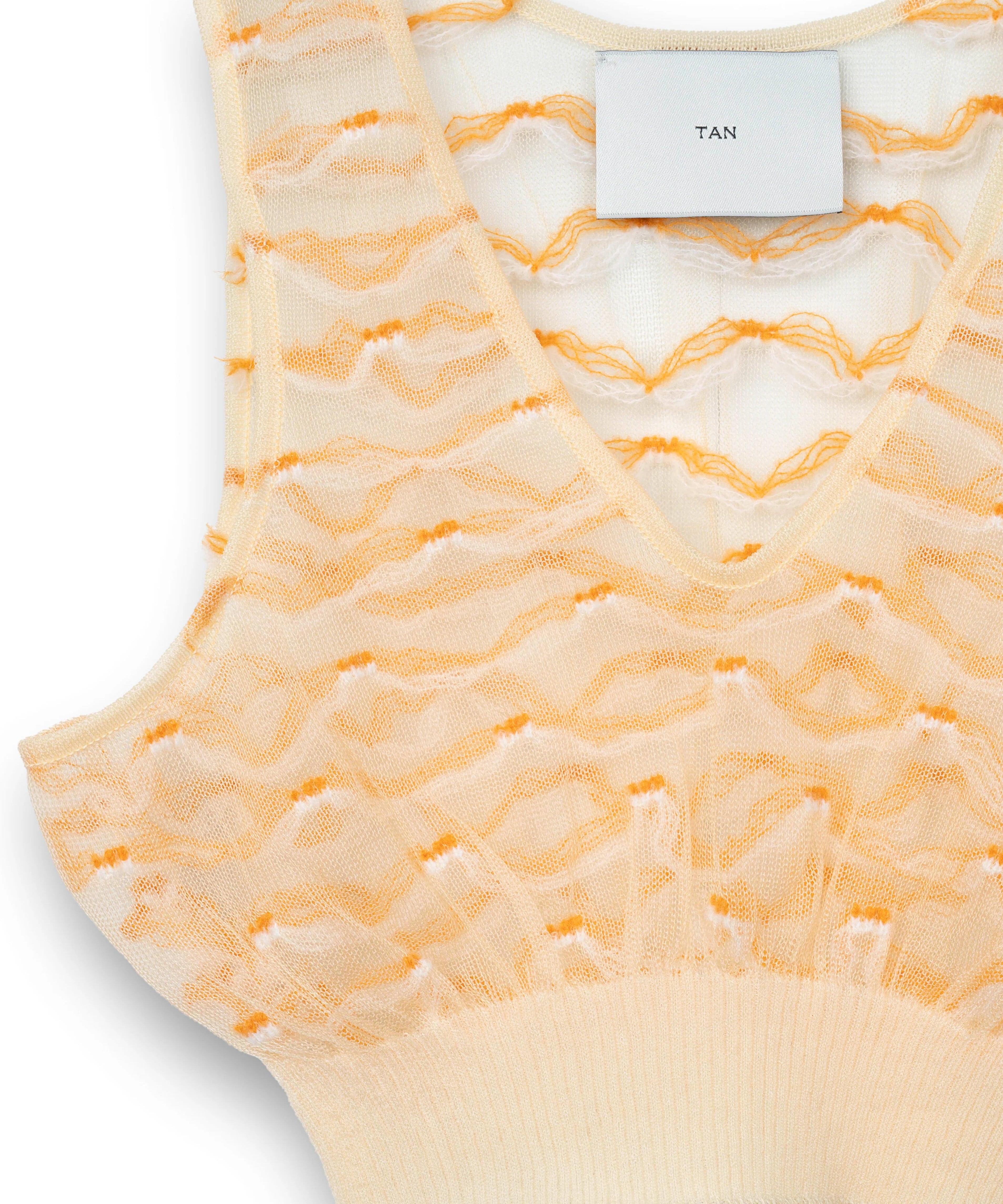 TAN 25SS JACQUARD V/N SHEER TOPS (CREAM)