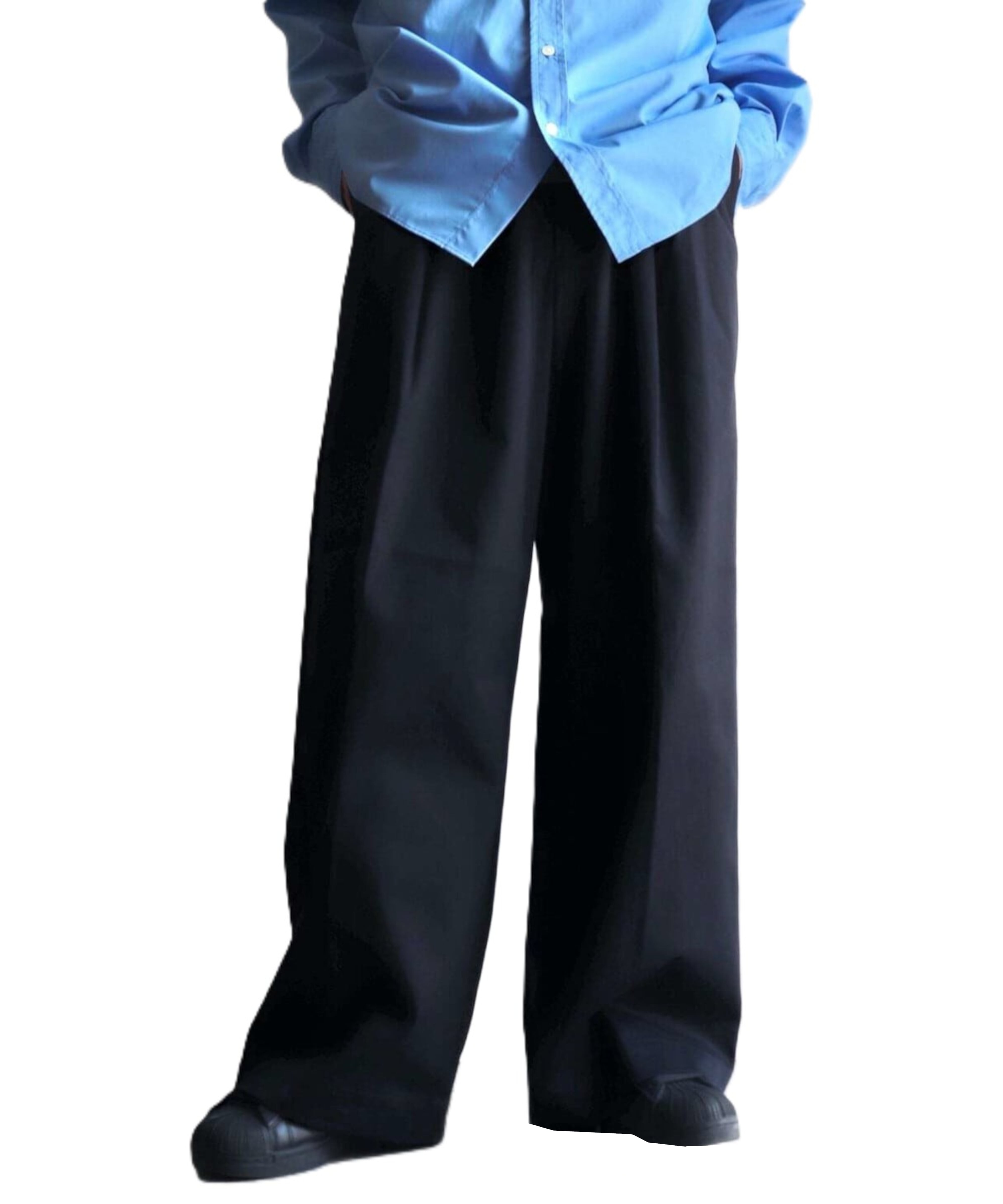 UNIVERSAL PRODUCTS. 25AW 2TUCK WIDE CHINO TROUSERS (NAVY)