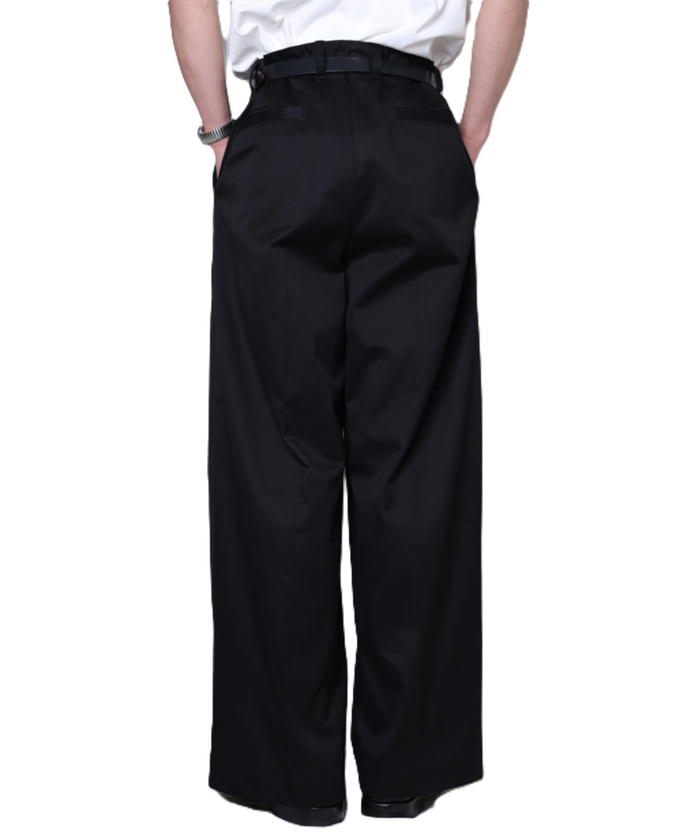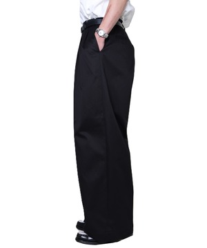定番チノと同素材で仕立てた〈2TUCK WIDE CHINO TROUSERS〉。