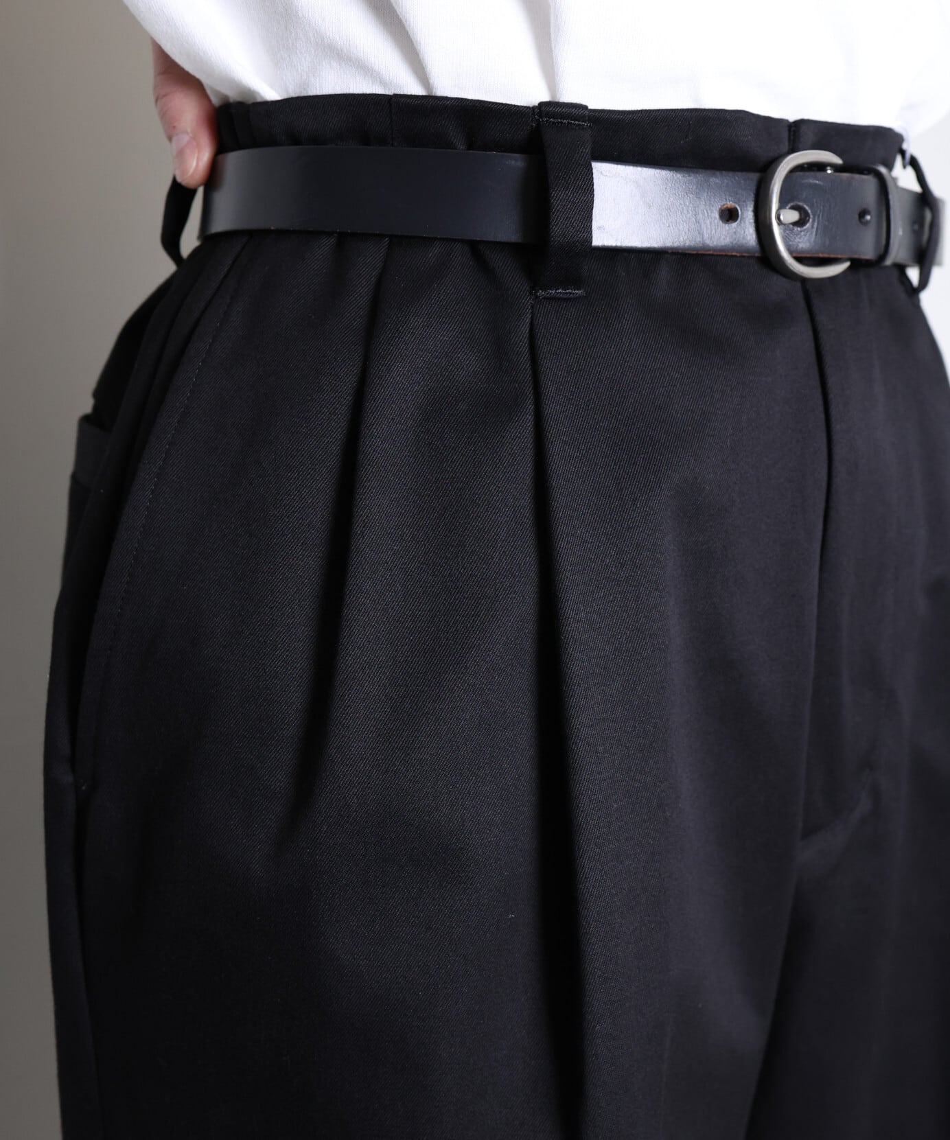2タックによる腰まわりのゆとりが自然な落ち感を生み、