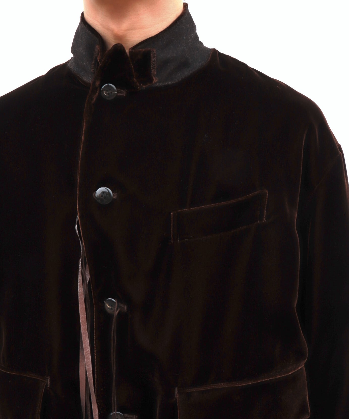 こうした装飾は、紳士服のベースを踏まえた上であしらわれており、今までに感じたことの無い新鮮な表情や、ハンガーに吊るされているだけなのに感じられる独創的な佇まいが魅力です。