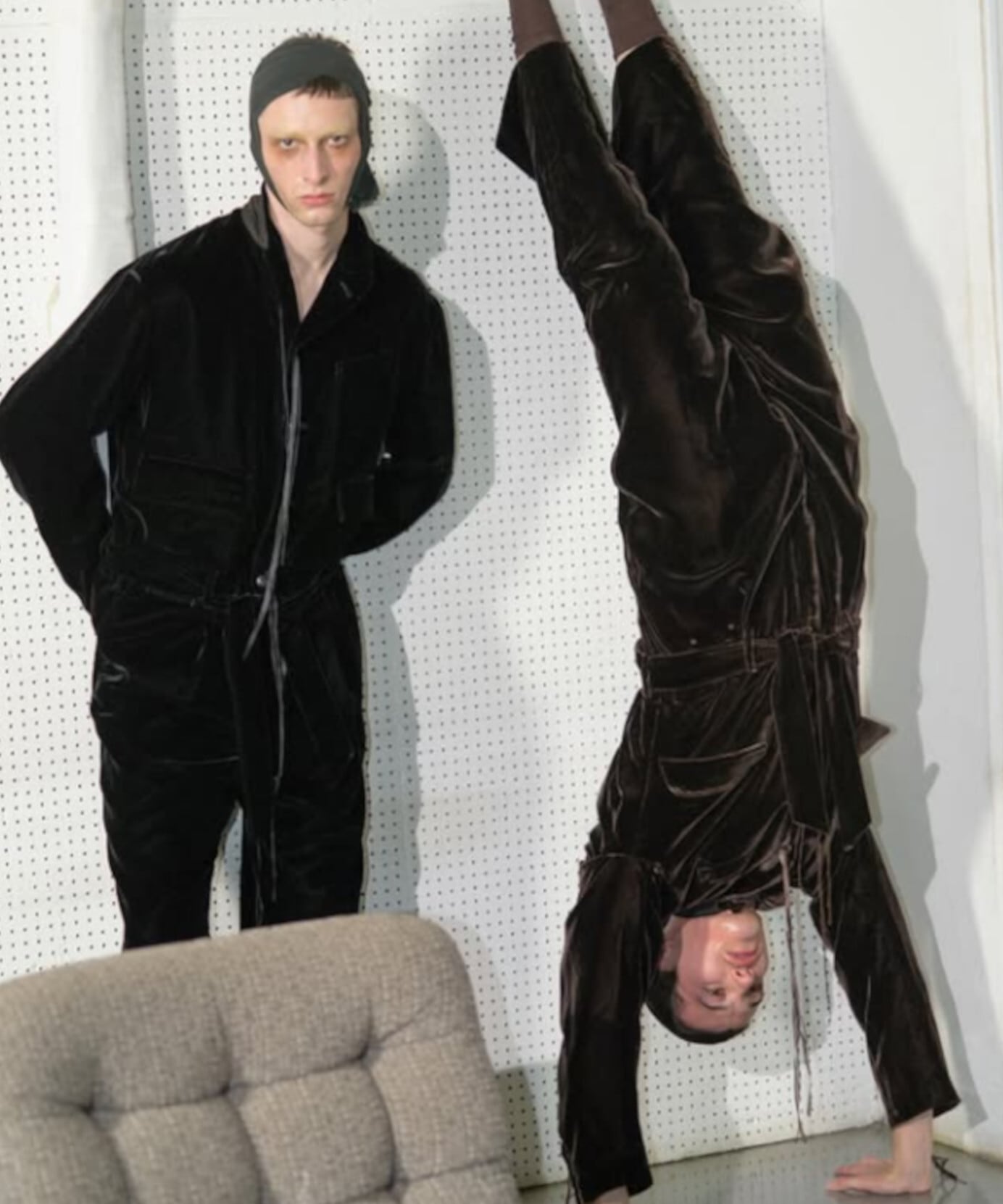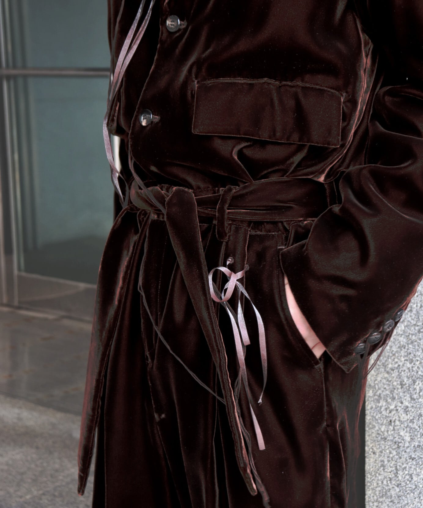 ジャンプスーツを展開しているブランドは多くありませんが、Midorikawaは毎シーズンリリースしており、今季はベルベットで登場です。