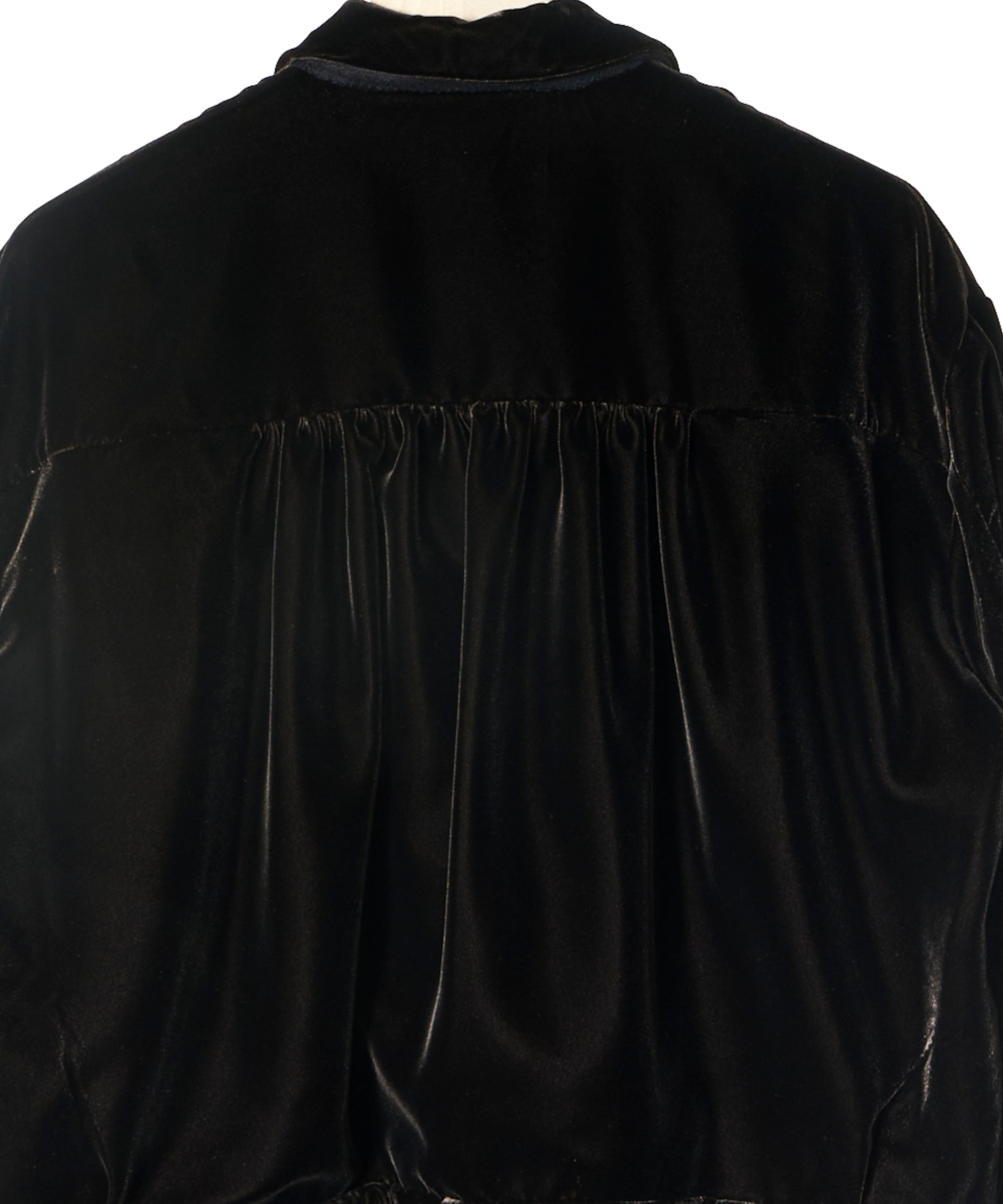 ベルベット特有の落ち感が、身体のラインを拾いすぎずに包み込むシルエット。