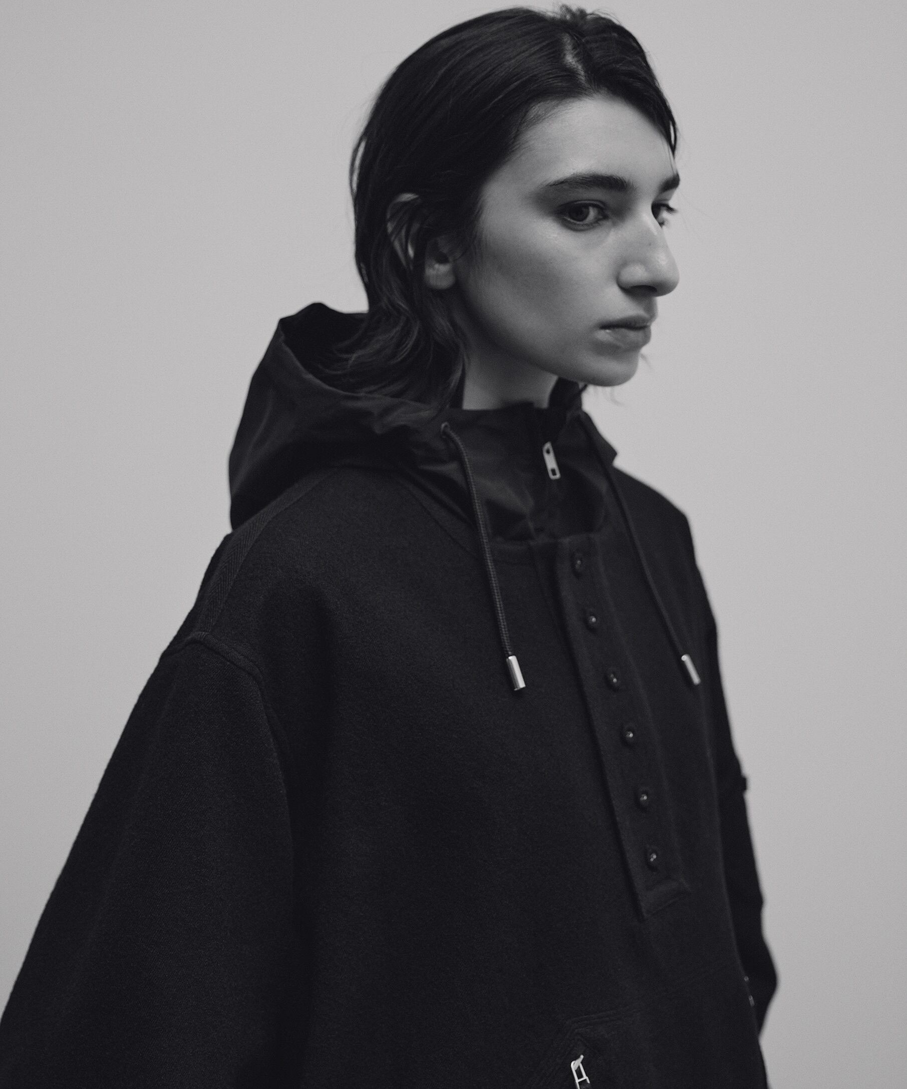 縮絨ウールを使用したプルオーバージャケット。