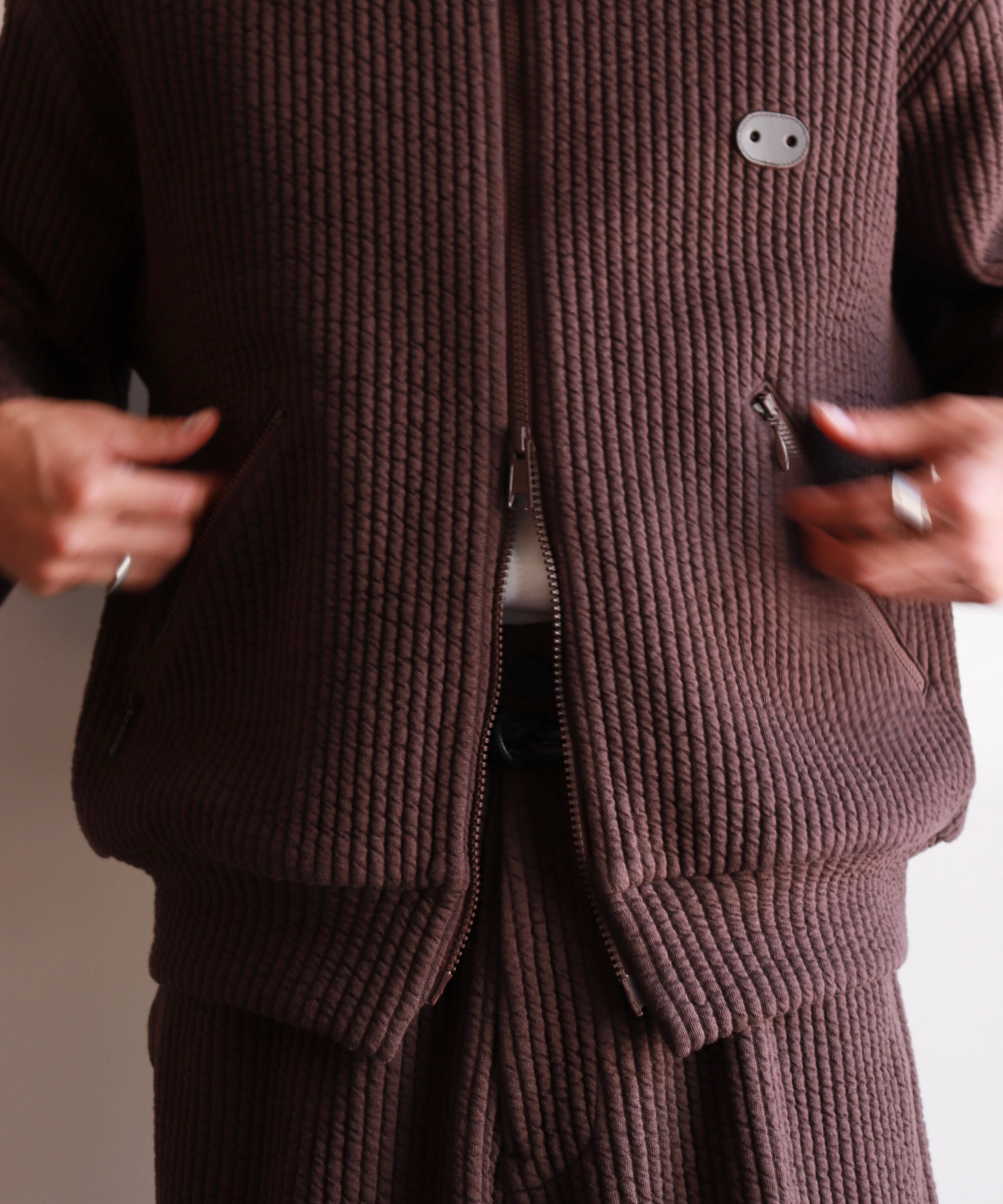 MATSUFUJI 25AW STRIPE JACQUARD STAND COLLAR JACKET (BROWN)