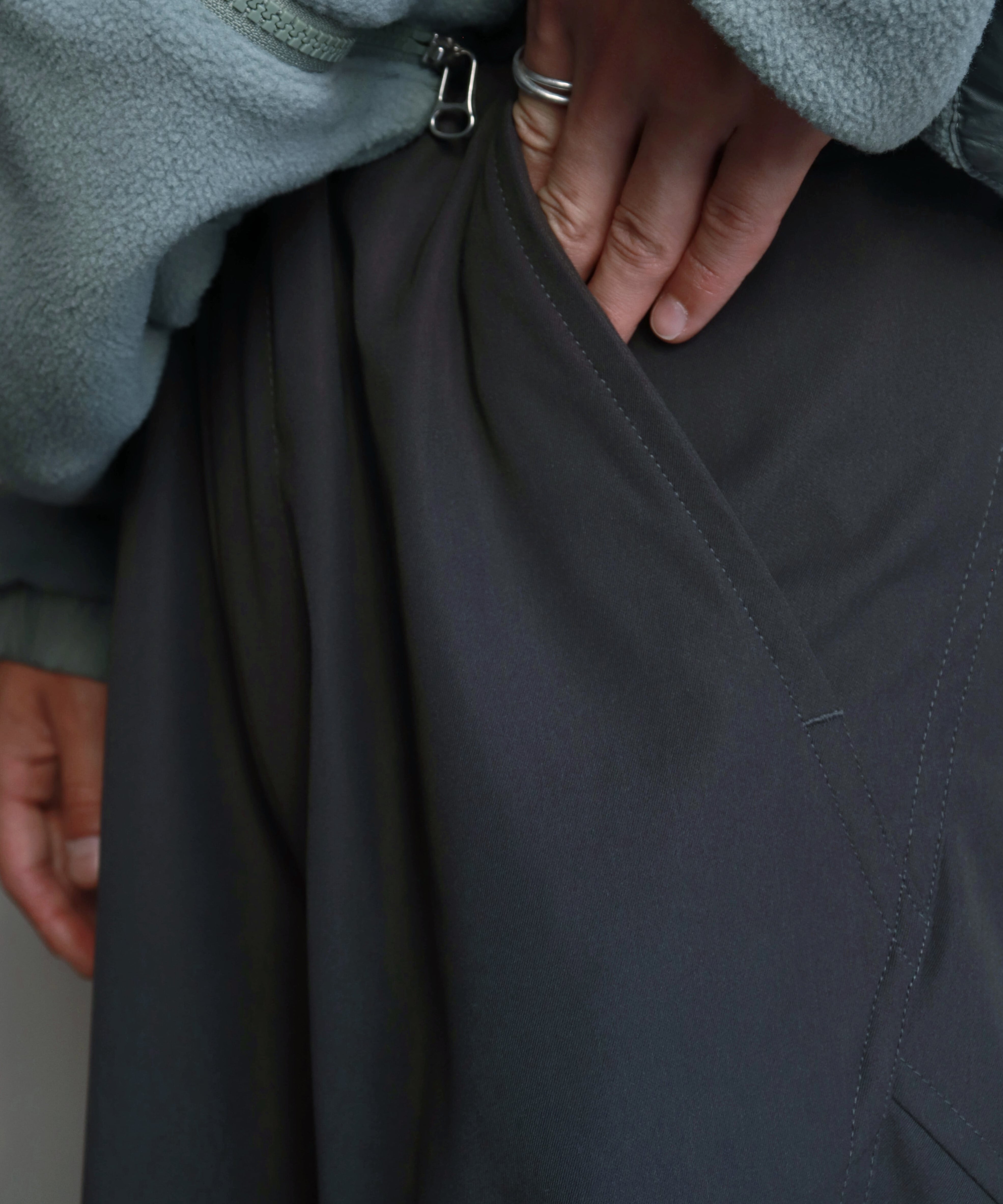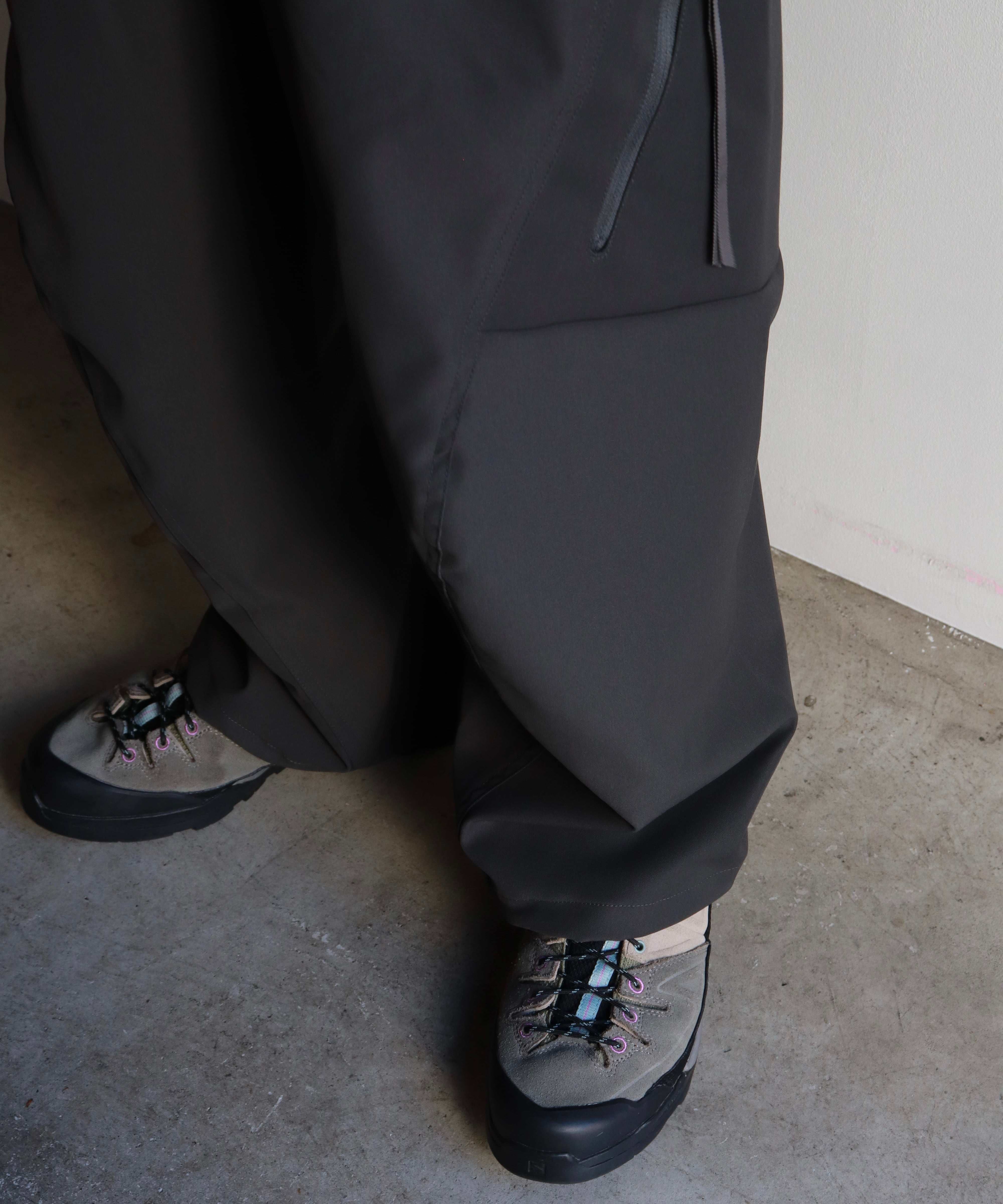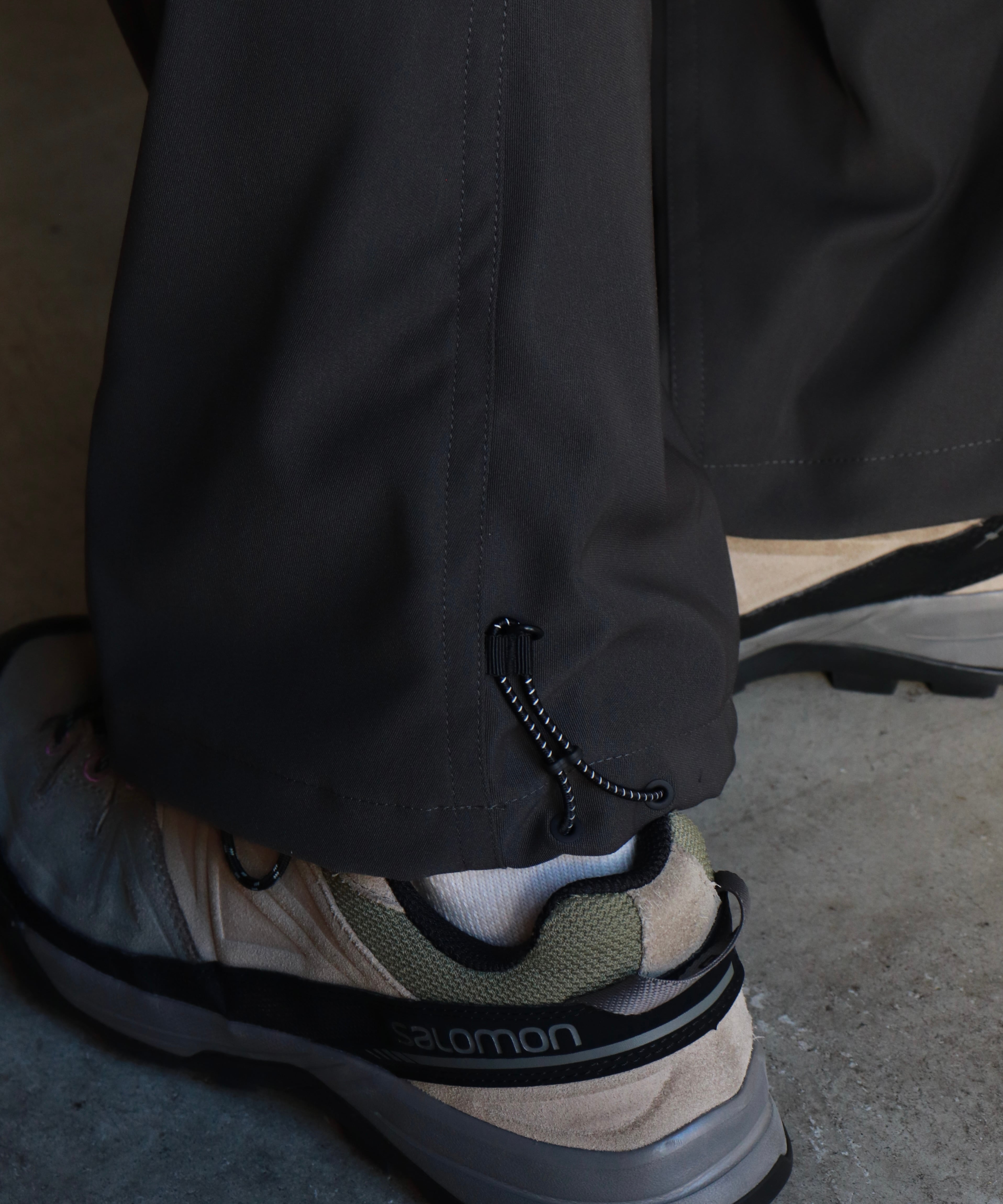 裾幅はしっかり広めに取られているので、テック系シューズやスニーカーとも好相性。
