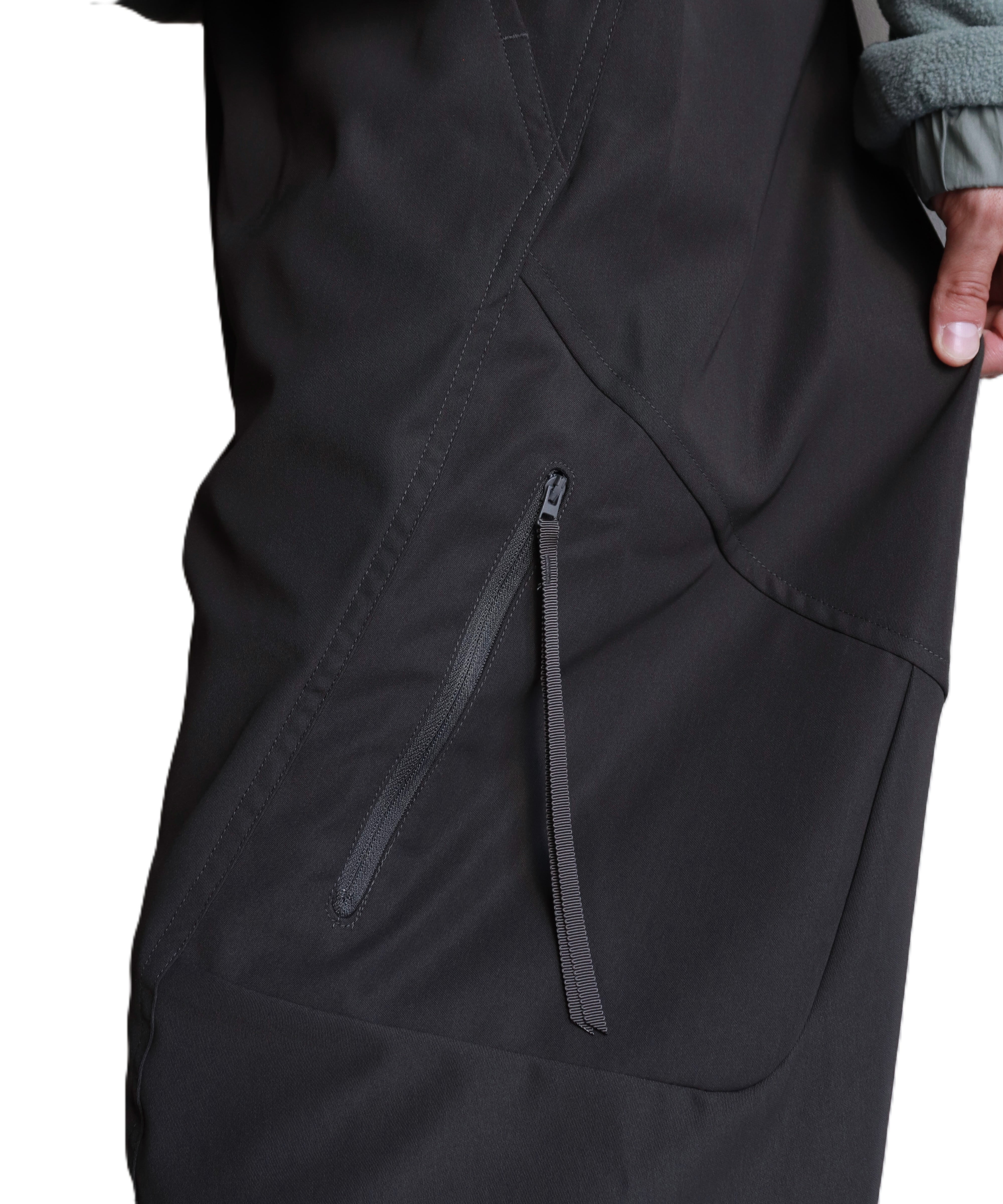 腰のシークレットポケット、サイドのくり抜きポケットなど、全部で8個のポケットが備わっています。