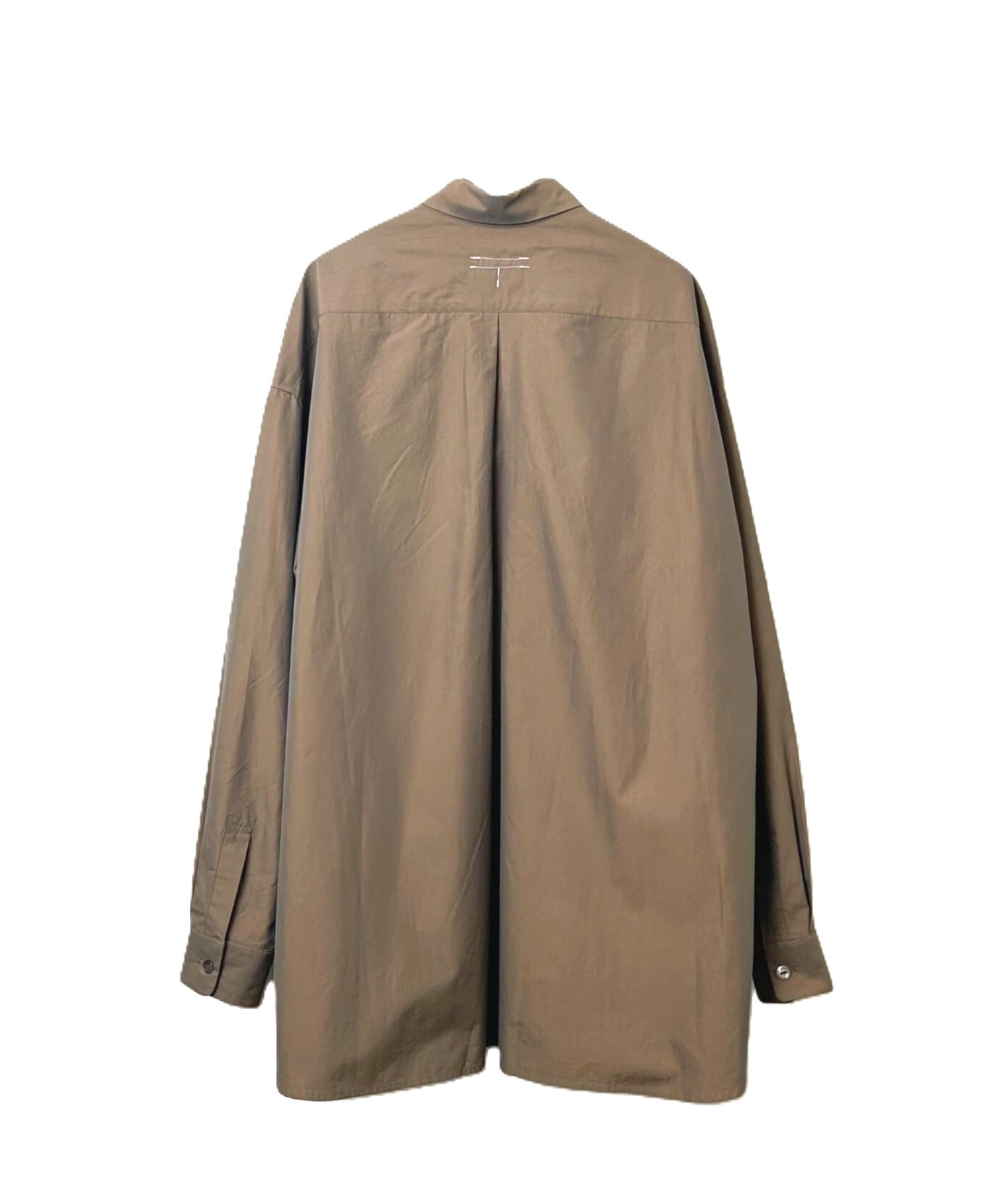 コートに使われるようなハリと艶を持つ生地をシャツに落とし込むことで、