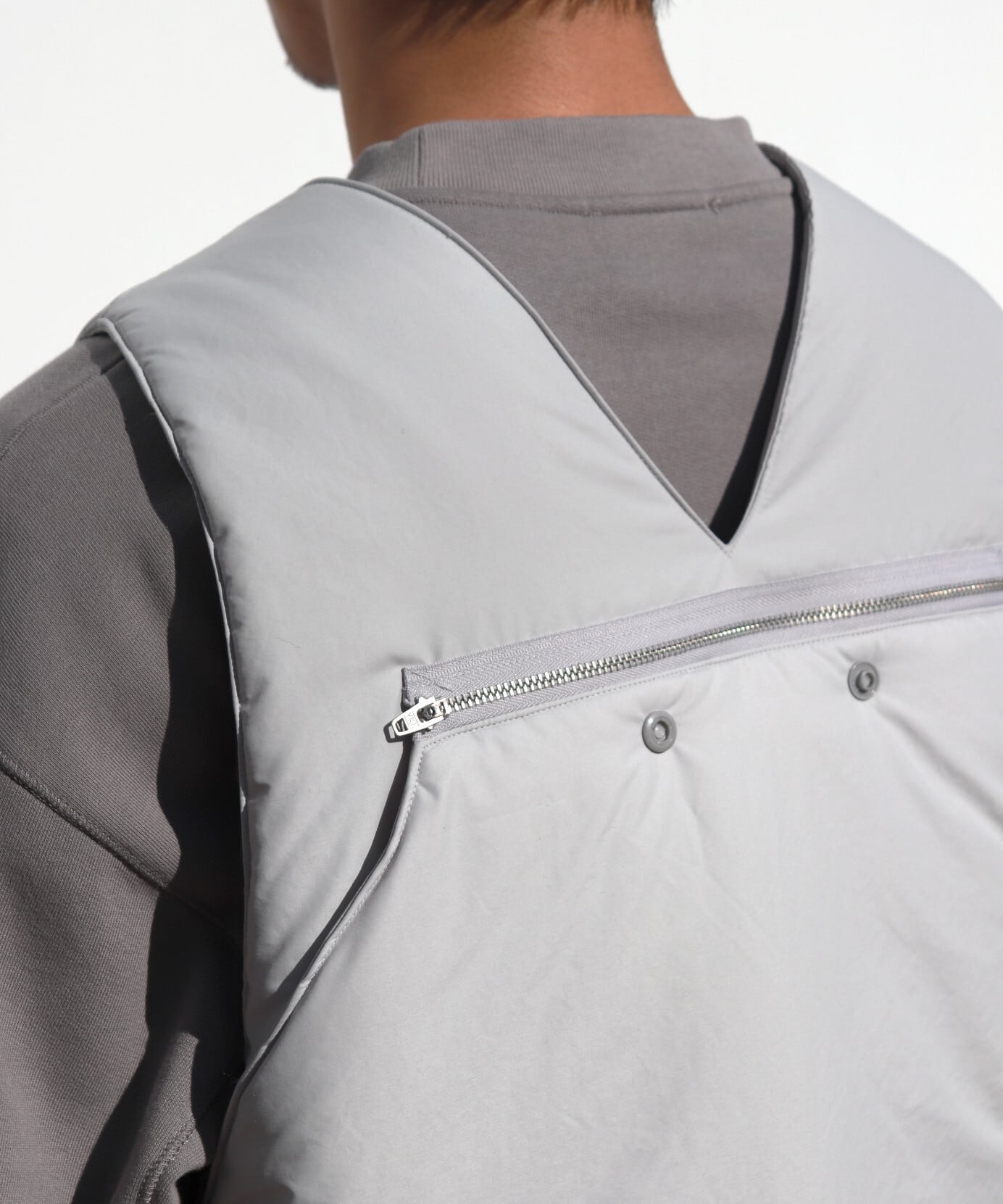 どちらの形状が主役という訳ではなく、暑ければ脱いでバッグ、荷物が少なければベストに、と状況に応じて姿を変える事ができます。