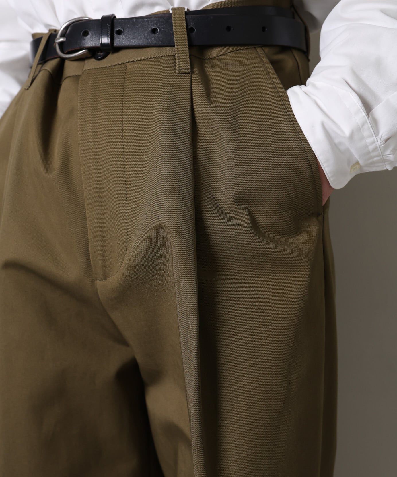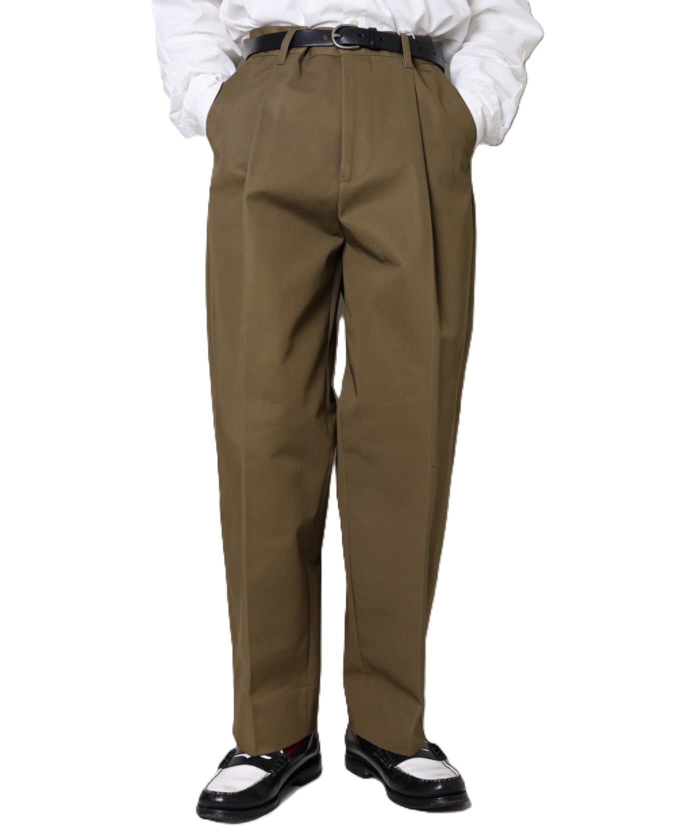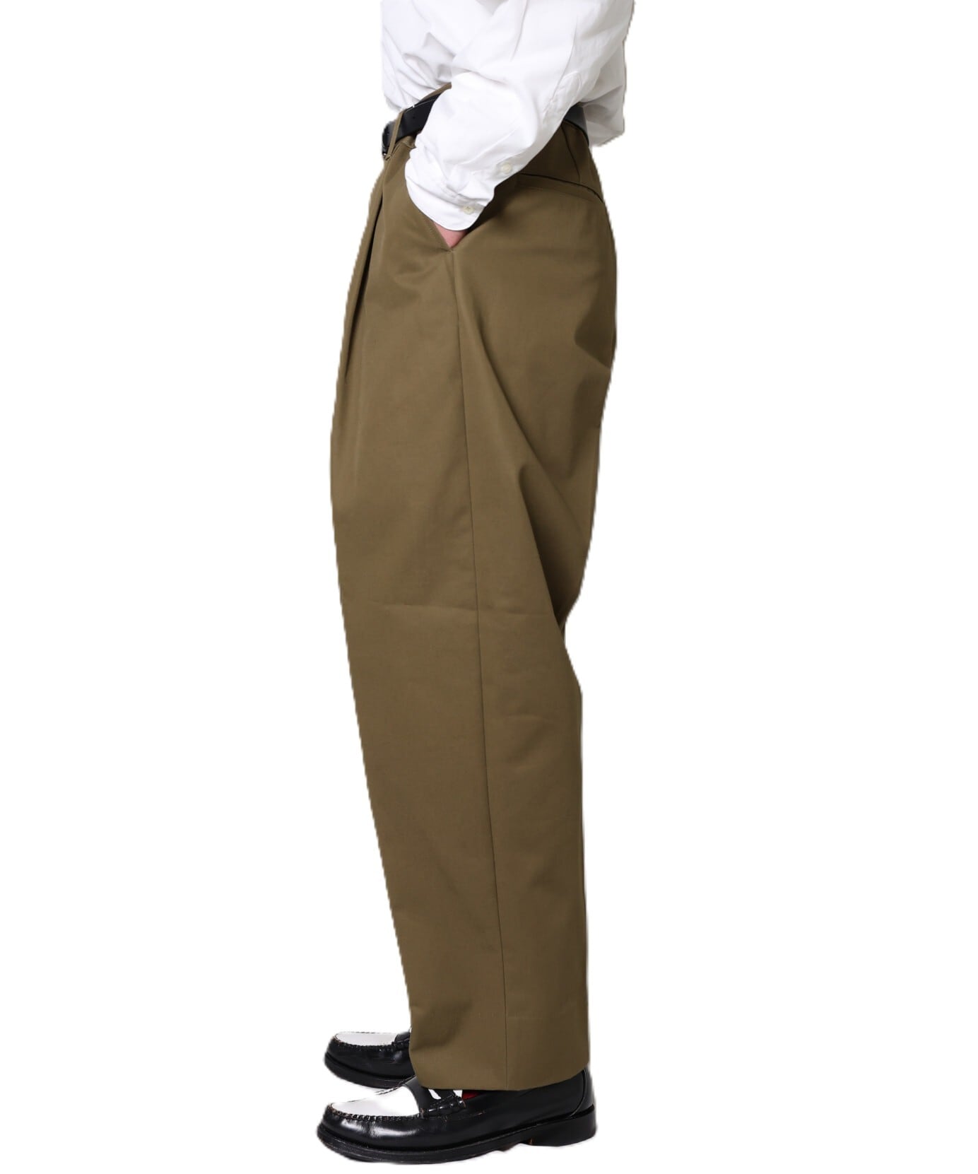 UNIVERSAL PRODUCTS. / COTTON 1TUCK TROUSERS (OLIVE)