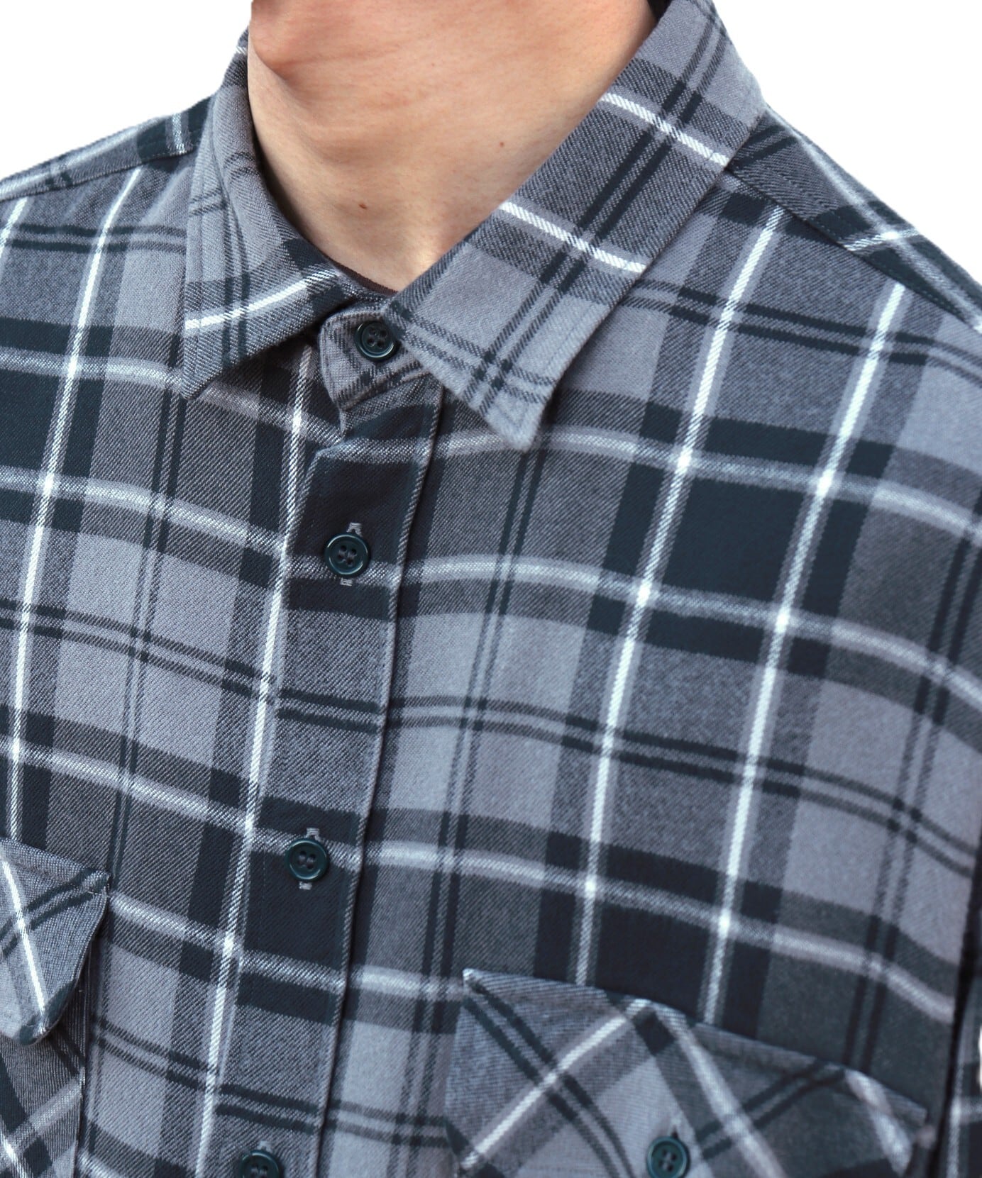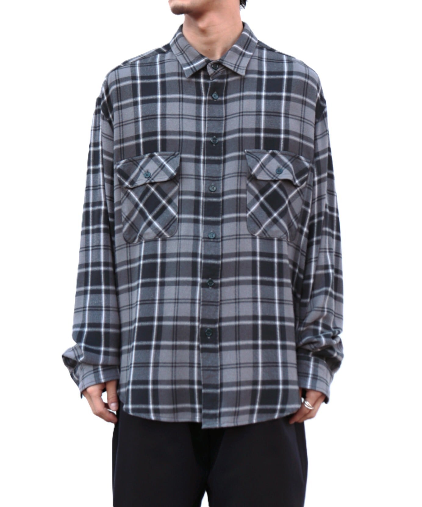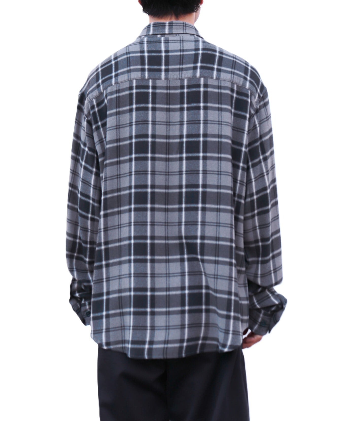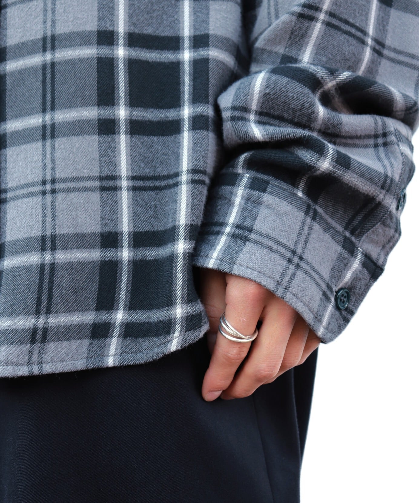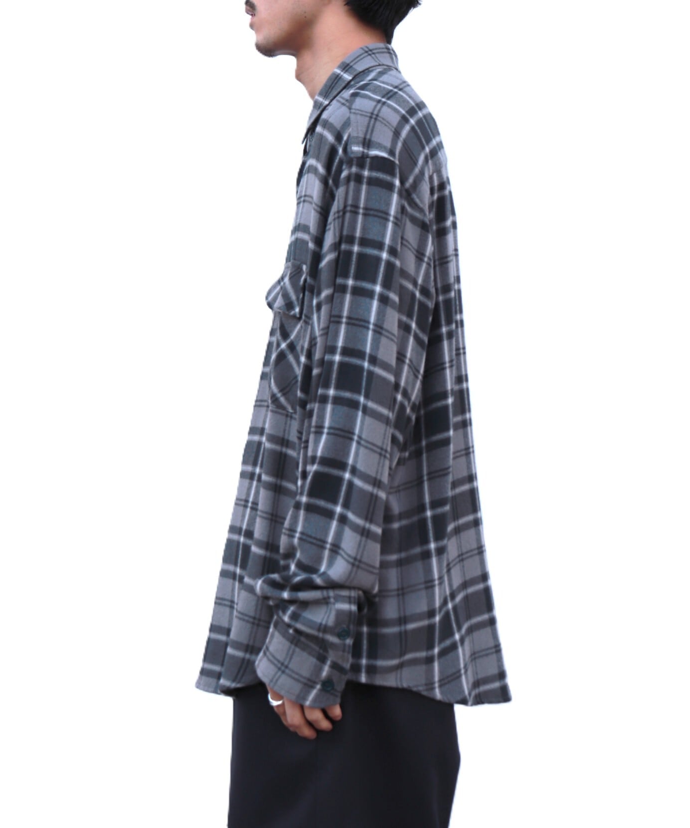 一見コットンネルシャツのような表情ですが、実はレーヨン100%。見た目に反してしっかりとした肉感がありながら、肌触りはとてもなめらかで美しいドレープ感が魅力です。