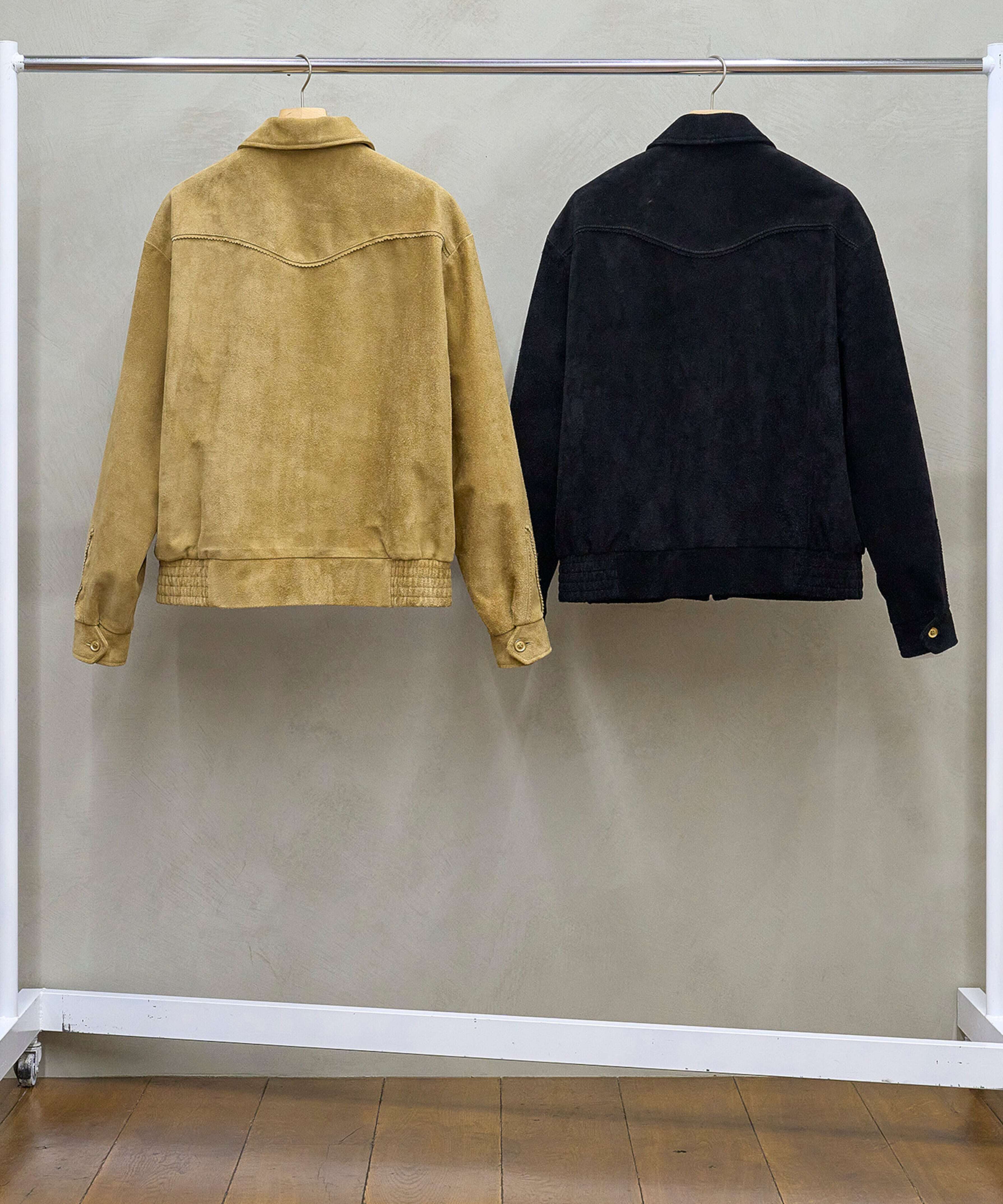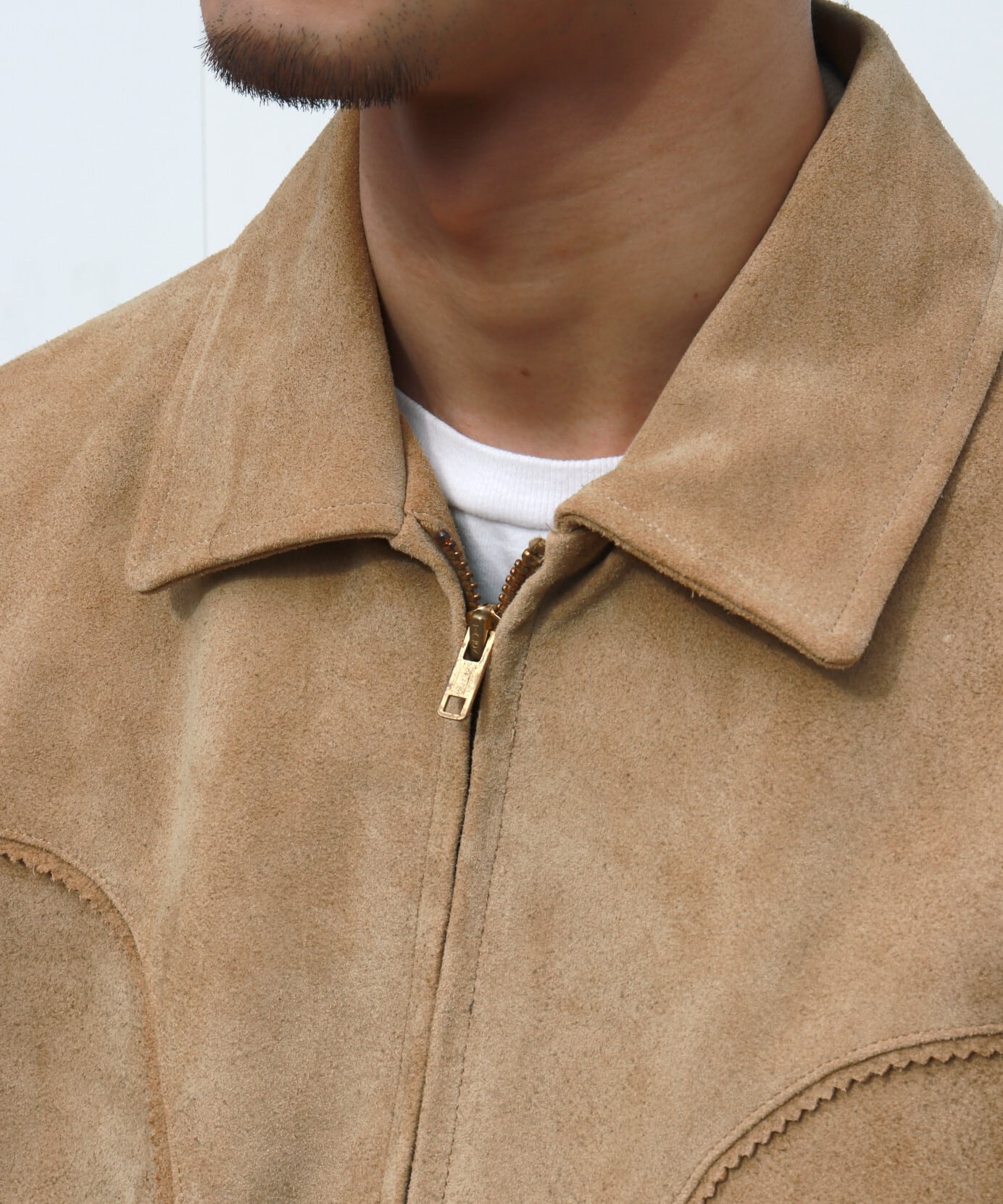 ウエスタンディティールを取り入れたカウレザースエードのジャケット。