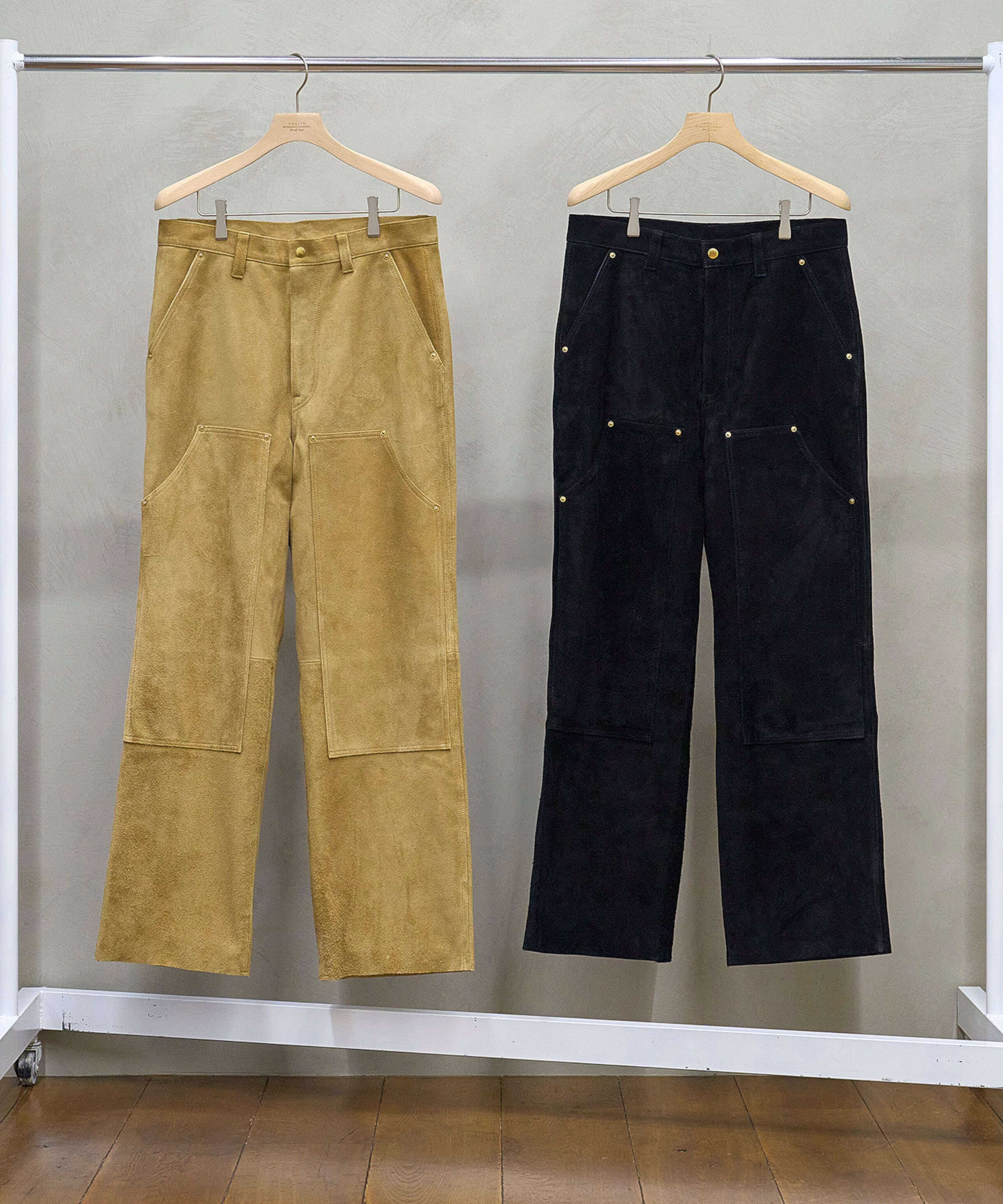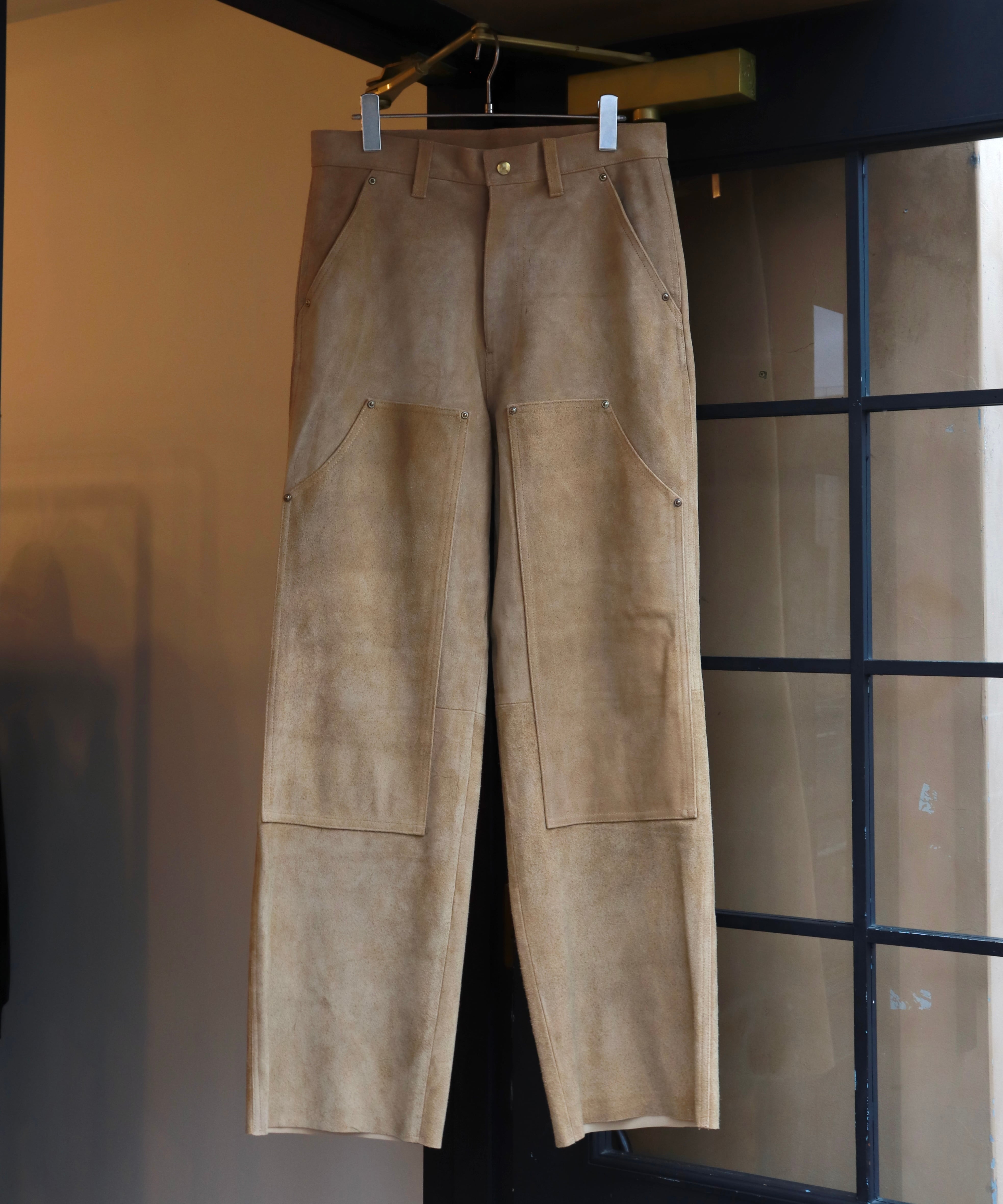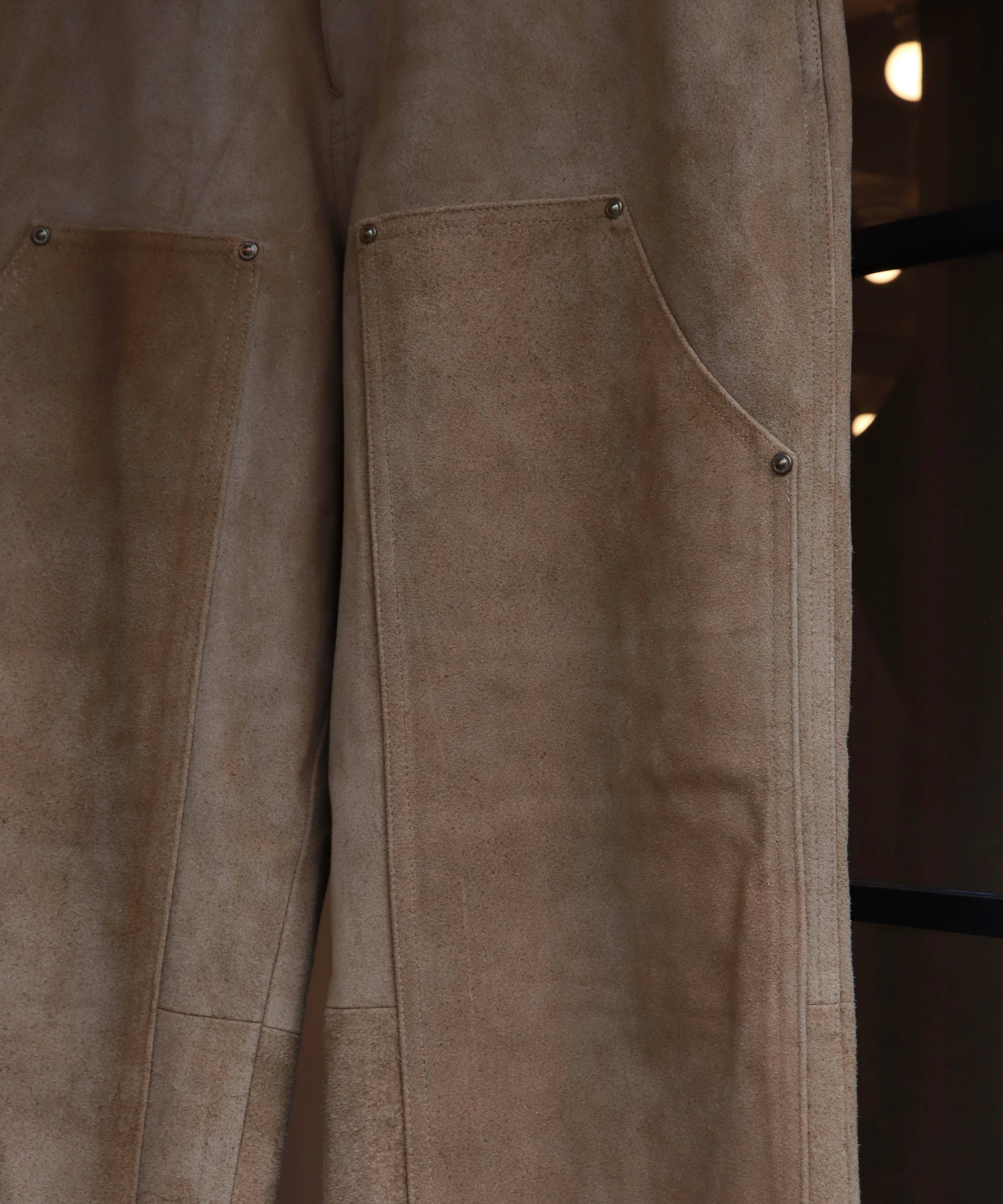 ダブルニー仕様でワーク感のあるカウレザースエードのパンツ。
