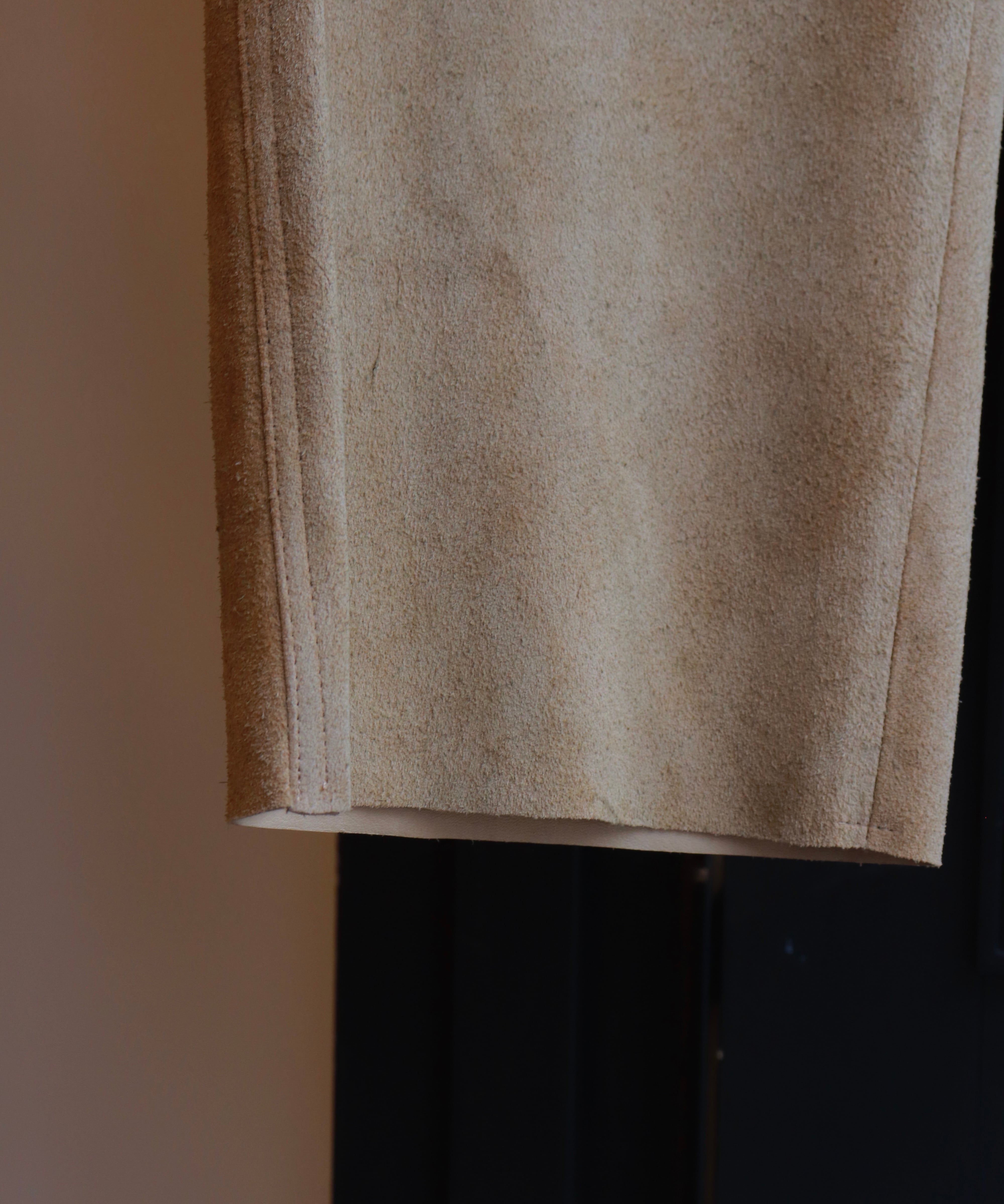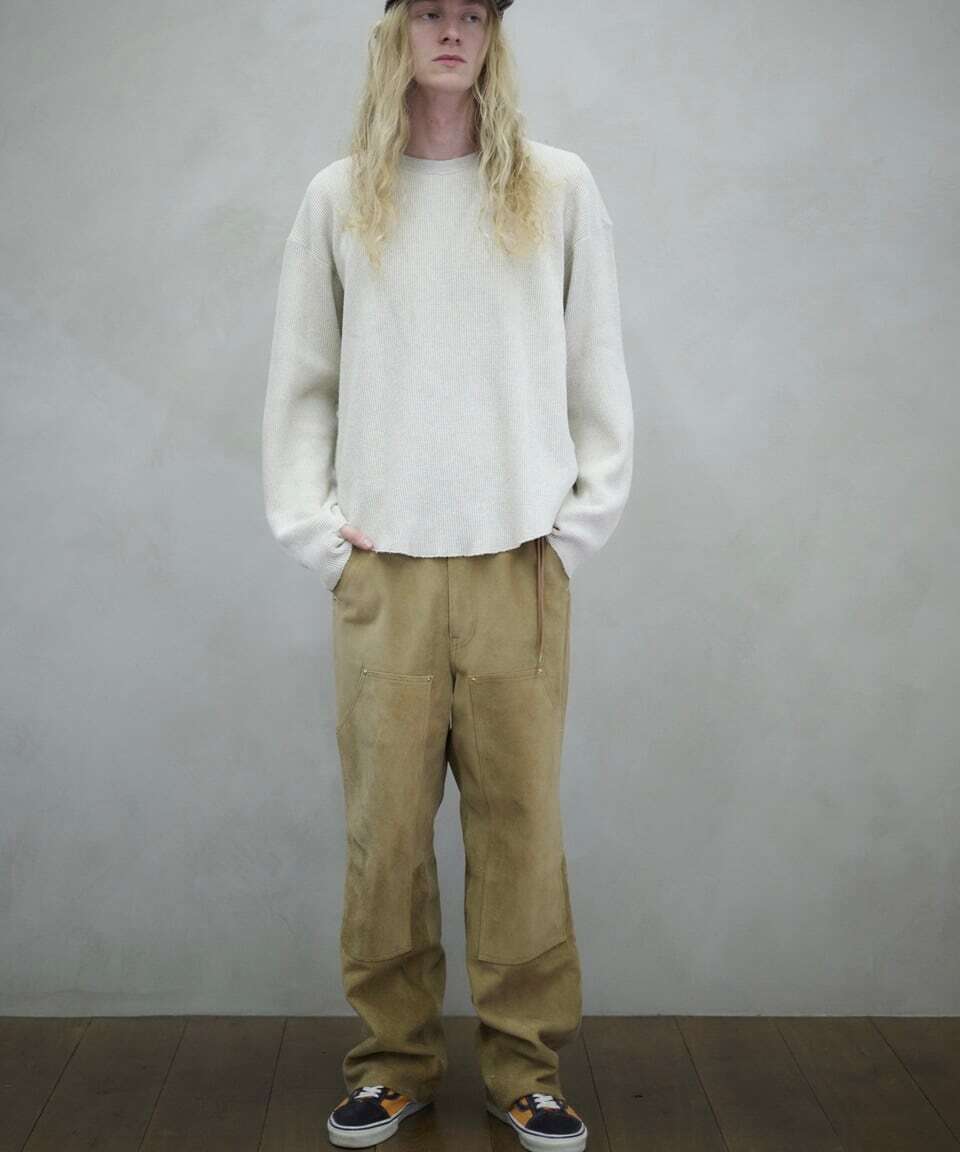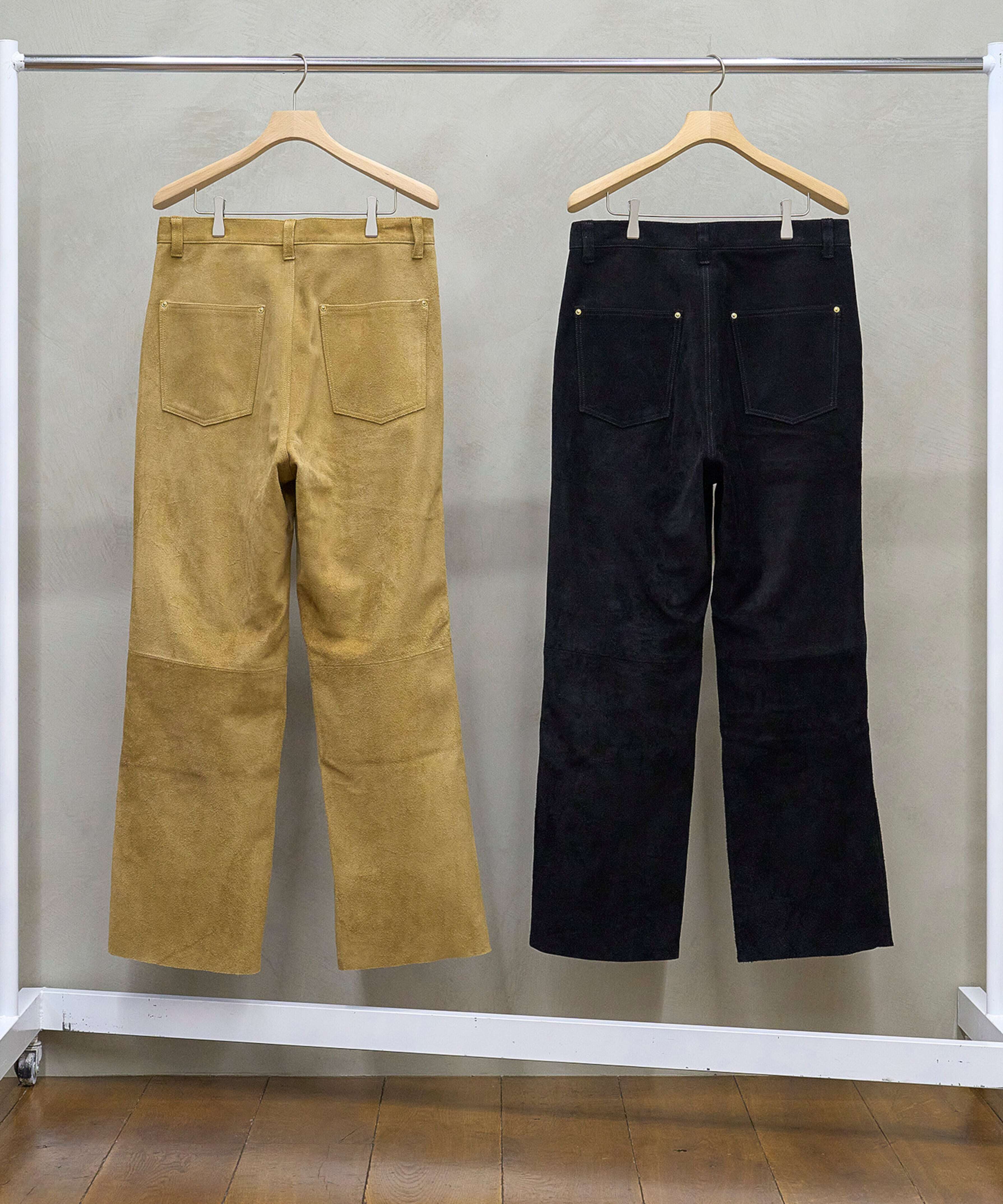 ダブルニー仕様でワーク感のあるカウレザースエードのパンツ。