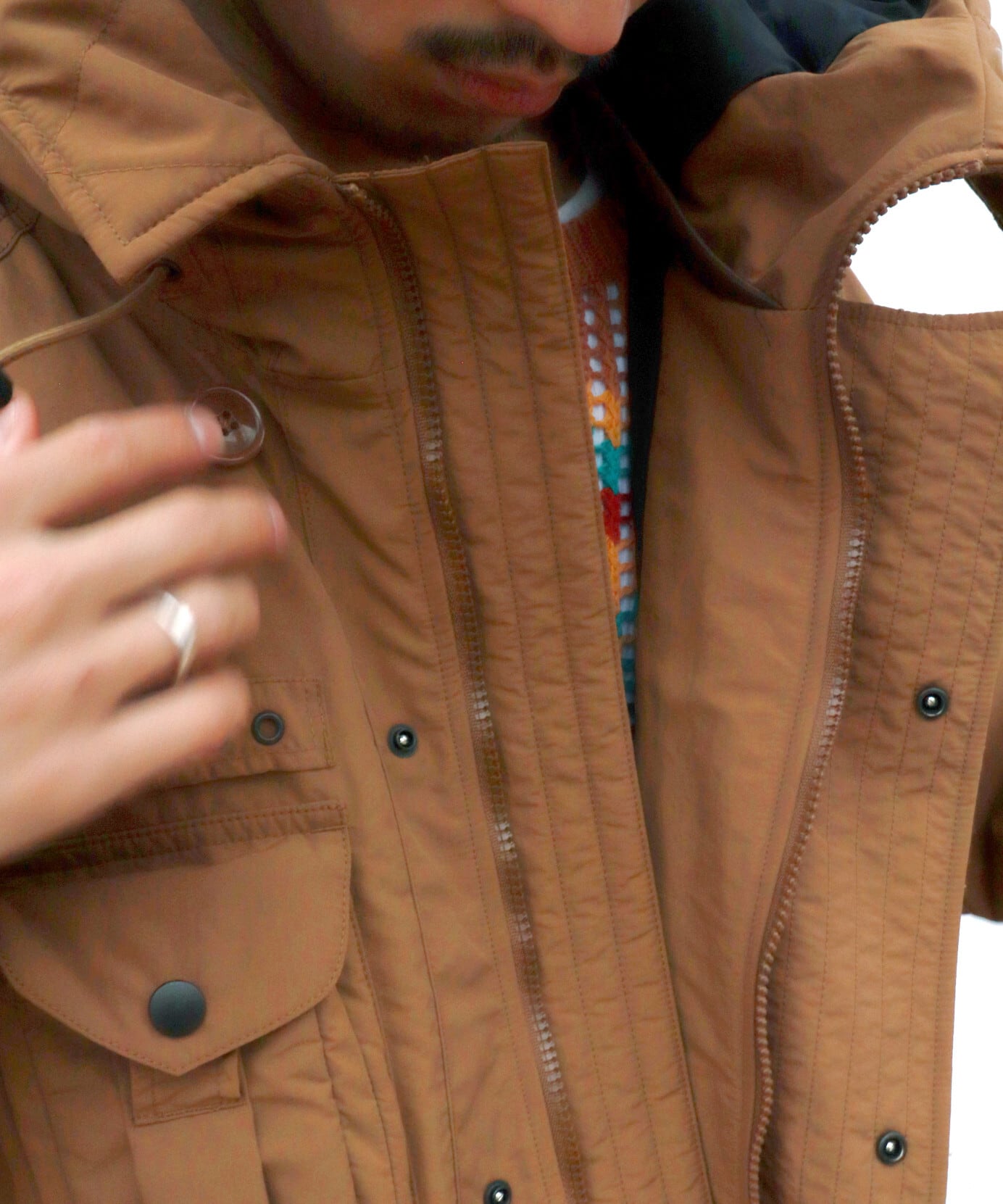 カーハートのアクティブジャケットやカメラマンジャケットのような要素もありつつ、見た目はダック生地のようでいて、実は雨や雪をしっかり弾くナイロン素材というのも嬉しいポイントです。