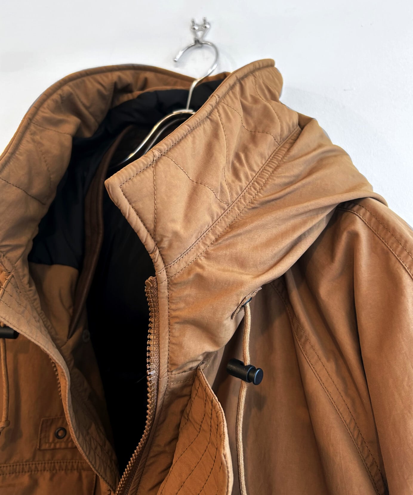 同色のLampoジップ、襟元にあしらわれたカウレザーなど、渋いディティールが魅力的。