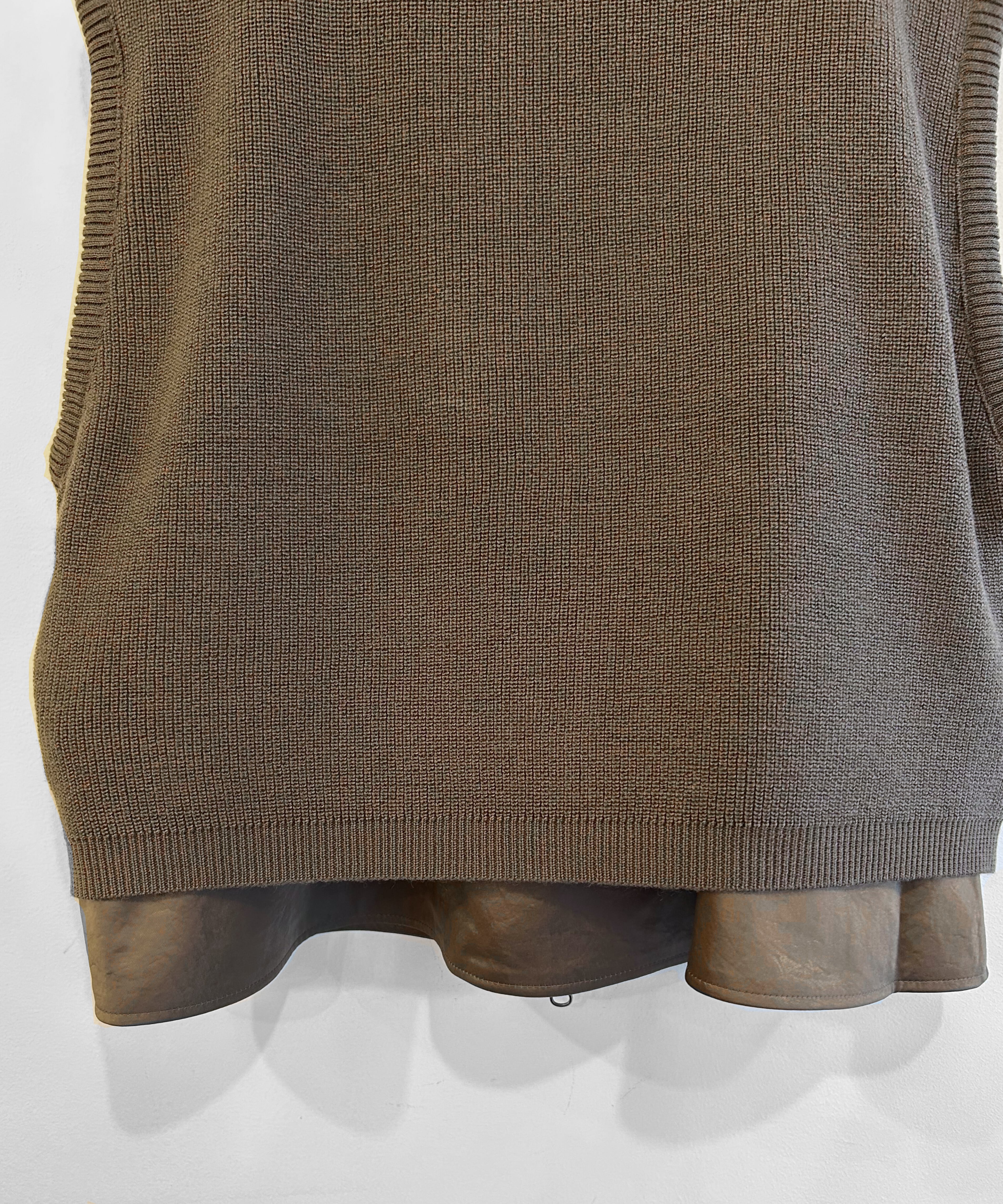 TAN 25AW REVERSIBLE KNIT&SATIN VEST (KHAKI)