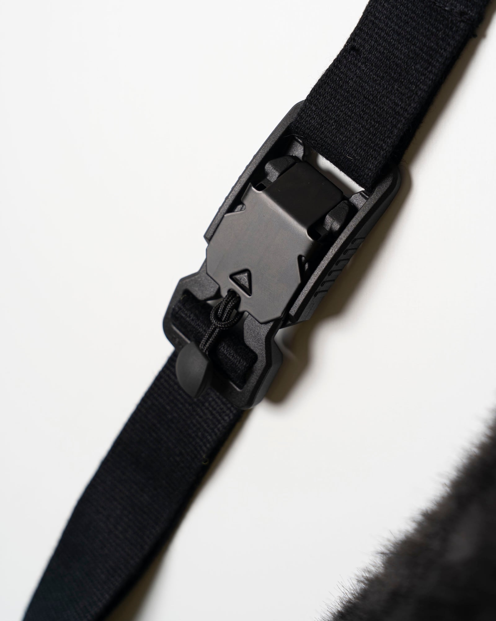 ミンクファーのような質感を持つ生地のウエストポーチ。