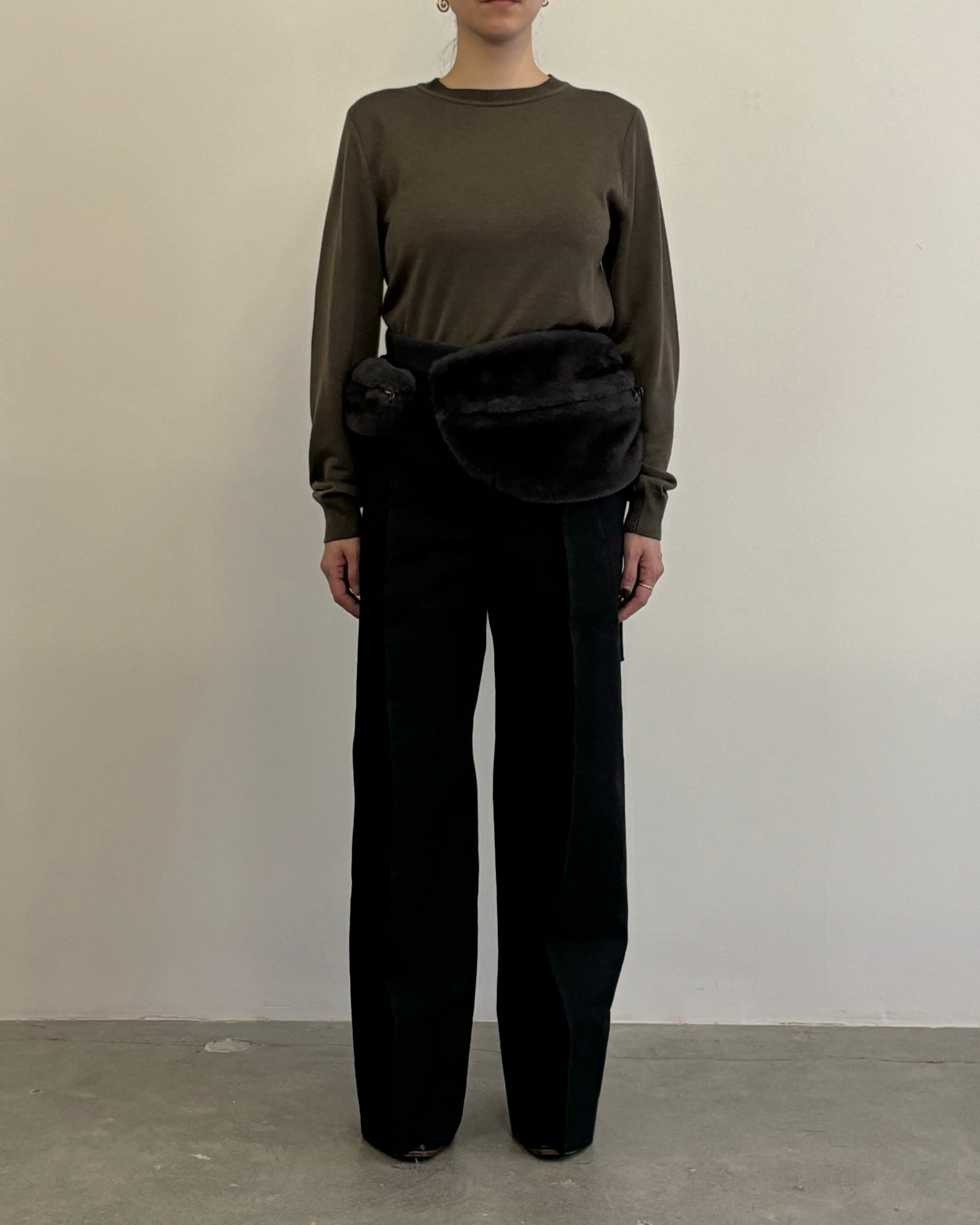 TAN 25AW MINK FUR EFFECT WAIST POUCH (D.GRAY)