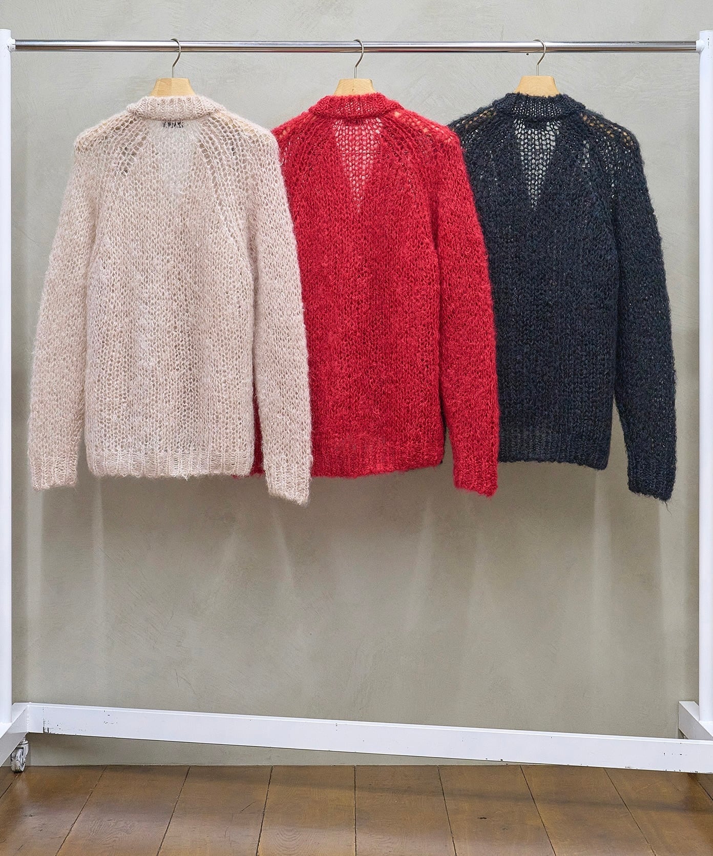 モヘヤならではの質感と、手編みのようなざっくりとした風合いが、スタイリングに抜け感をプラスしてくれます。