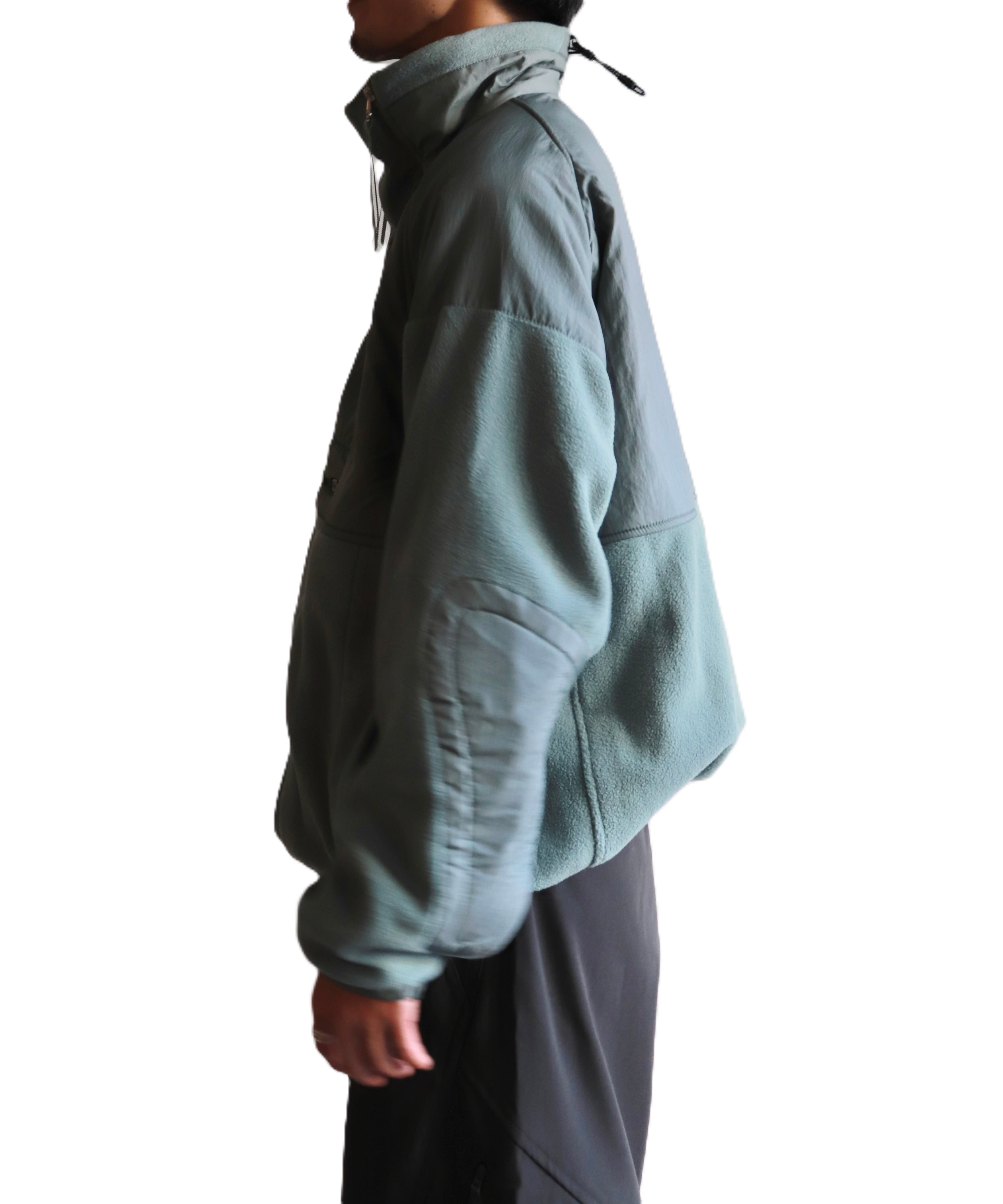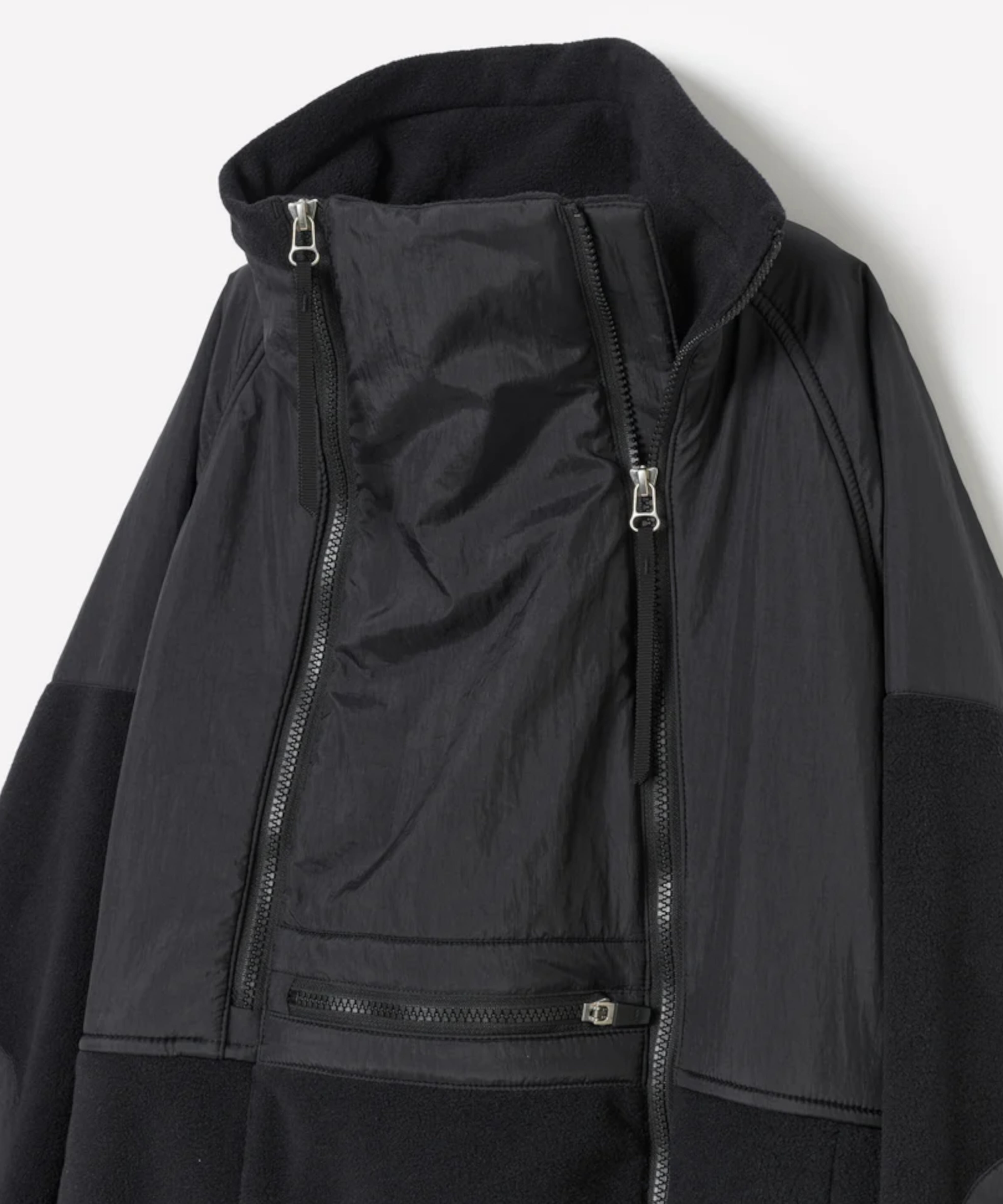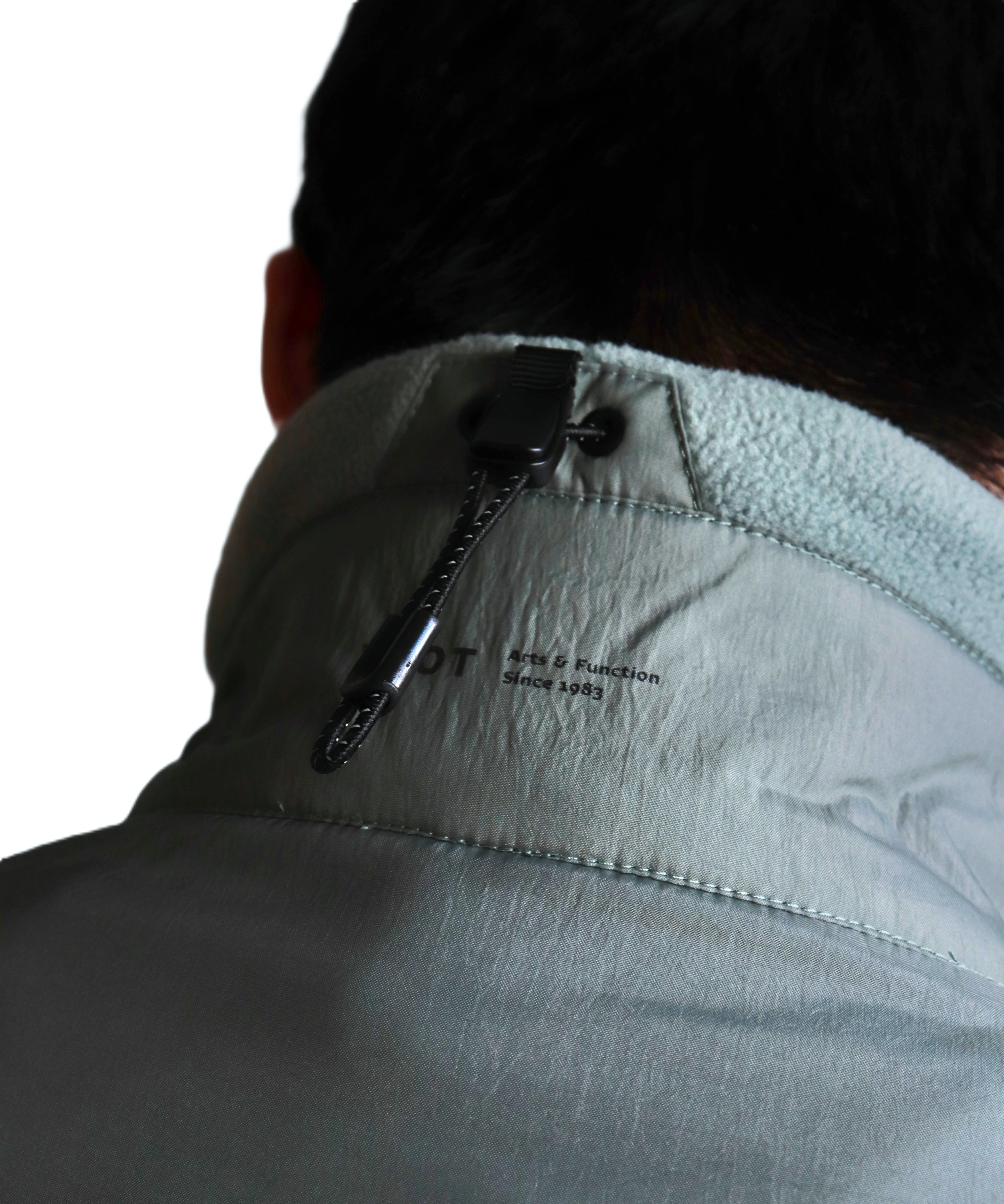 両面起毛の肌触りの良いフリースとシワ加工を施したナイロンタフタの切り替えがアクセントになっています。