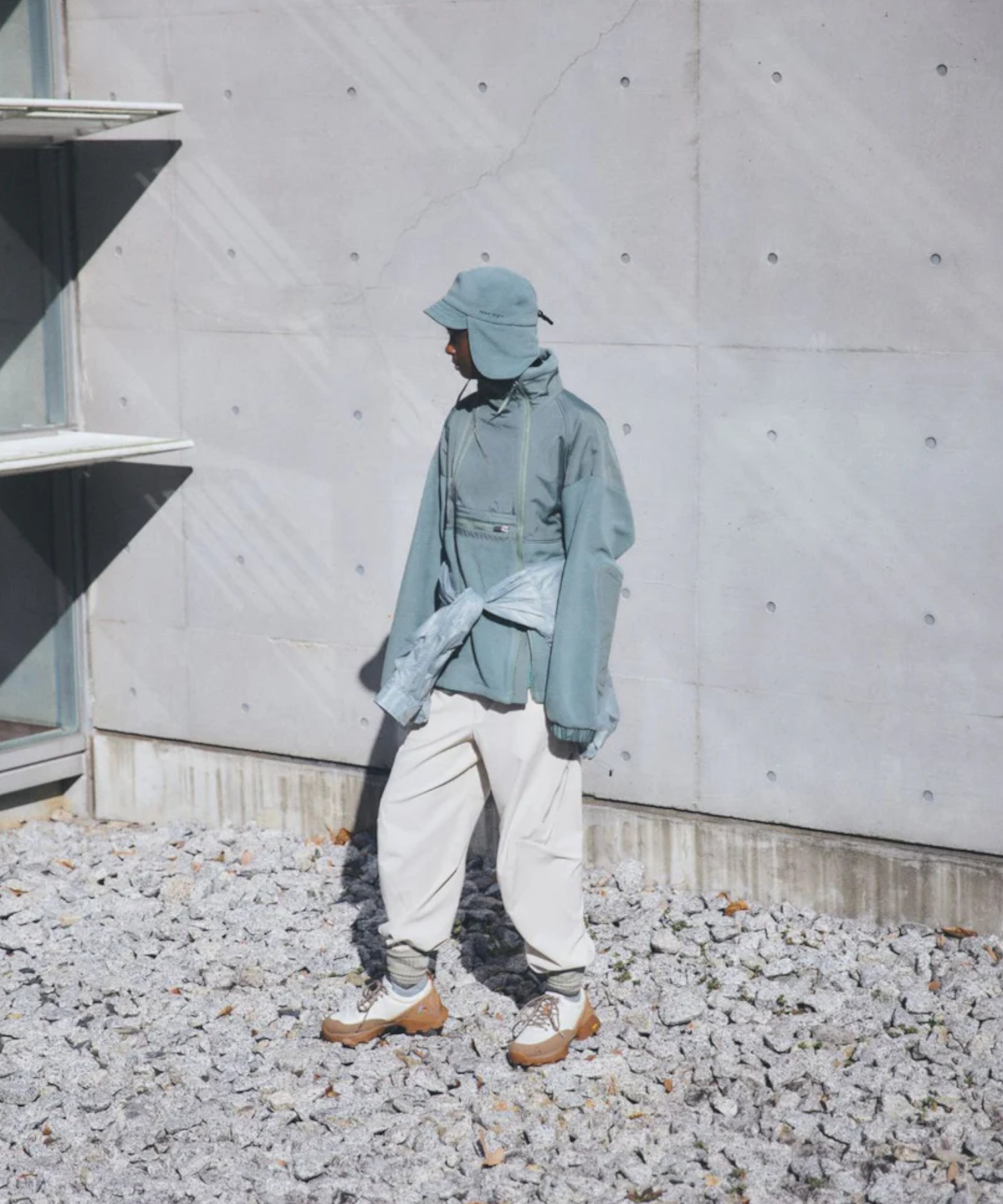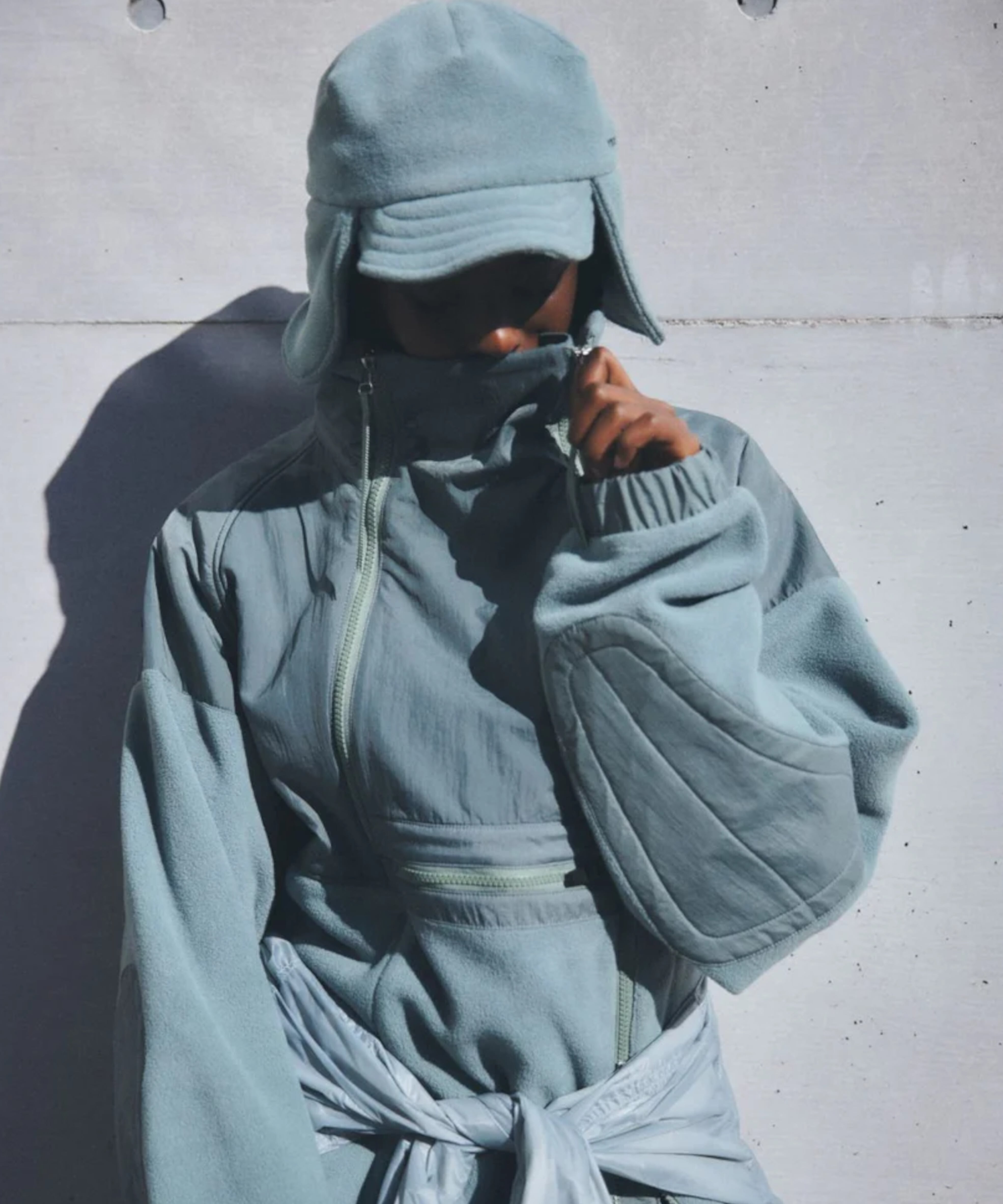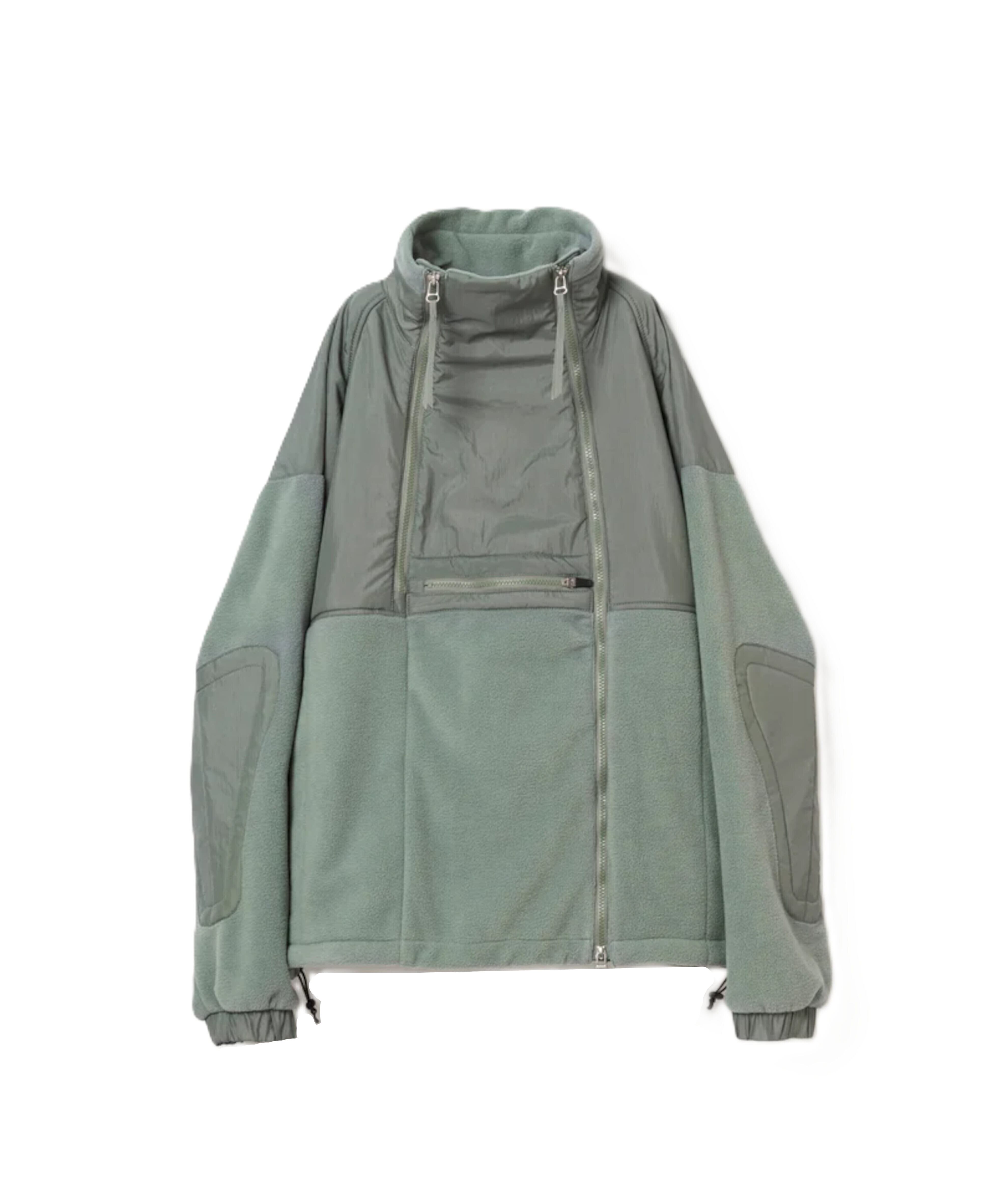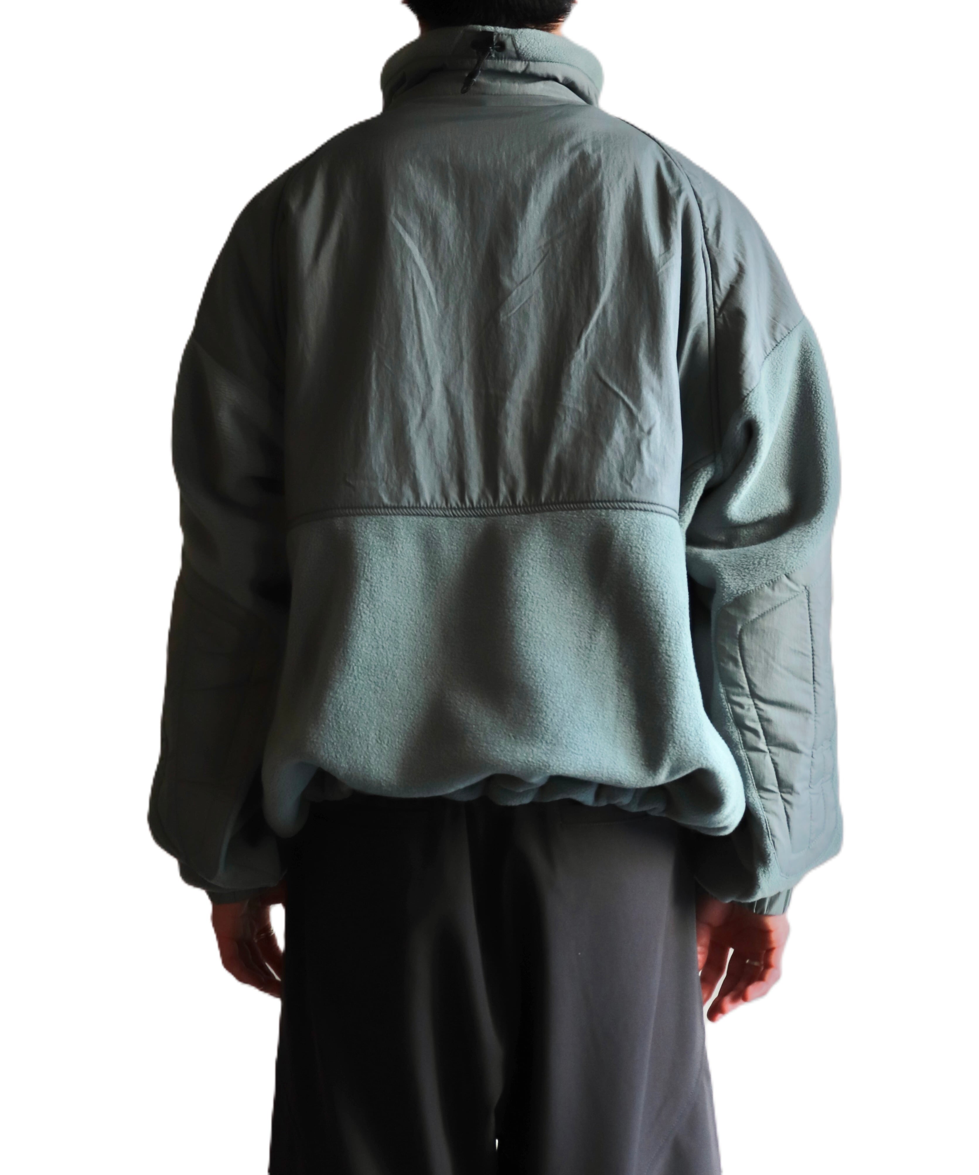両面起毛の肌触りの良いフリースとシワ加工を施したナイロンタフタの切り替えがアクセントになっています。