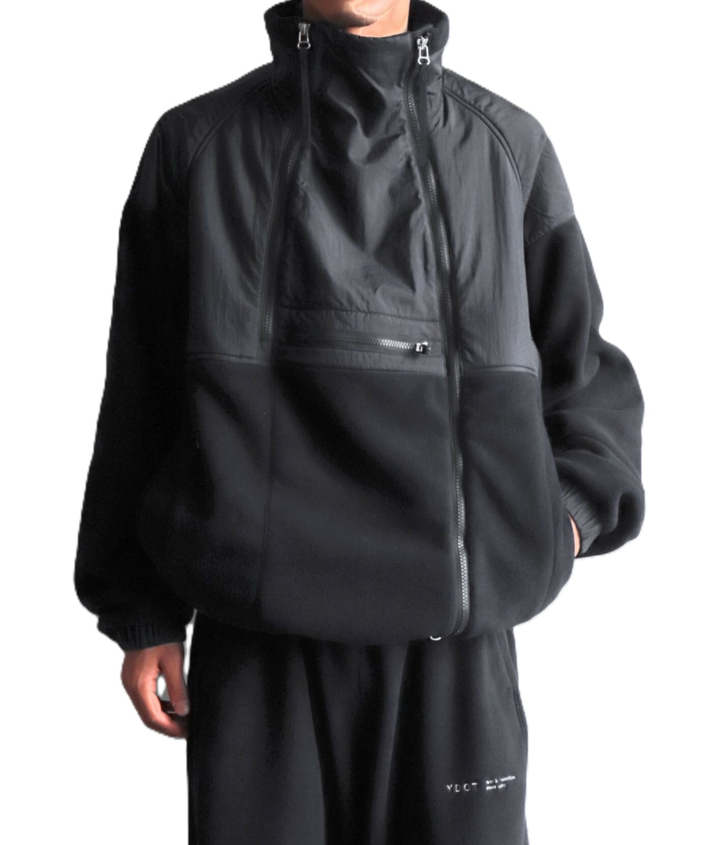 両面起毛の肌触りの良いフリースとシワ加工を施したナイロンタフタの切り替えがアクセントになっています。