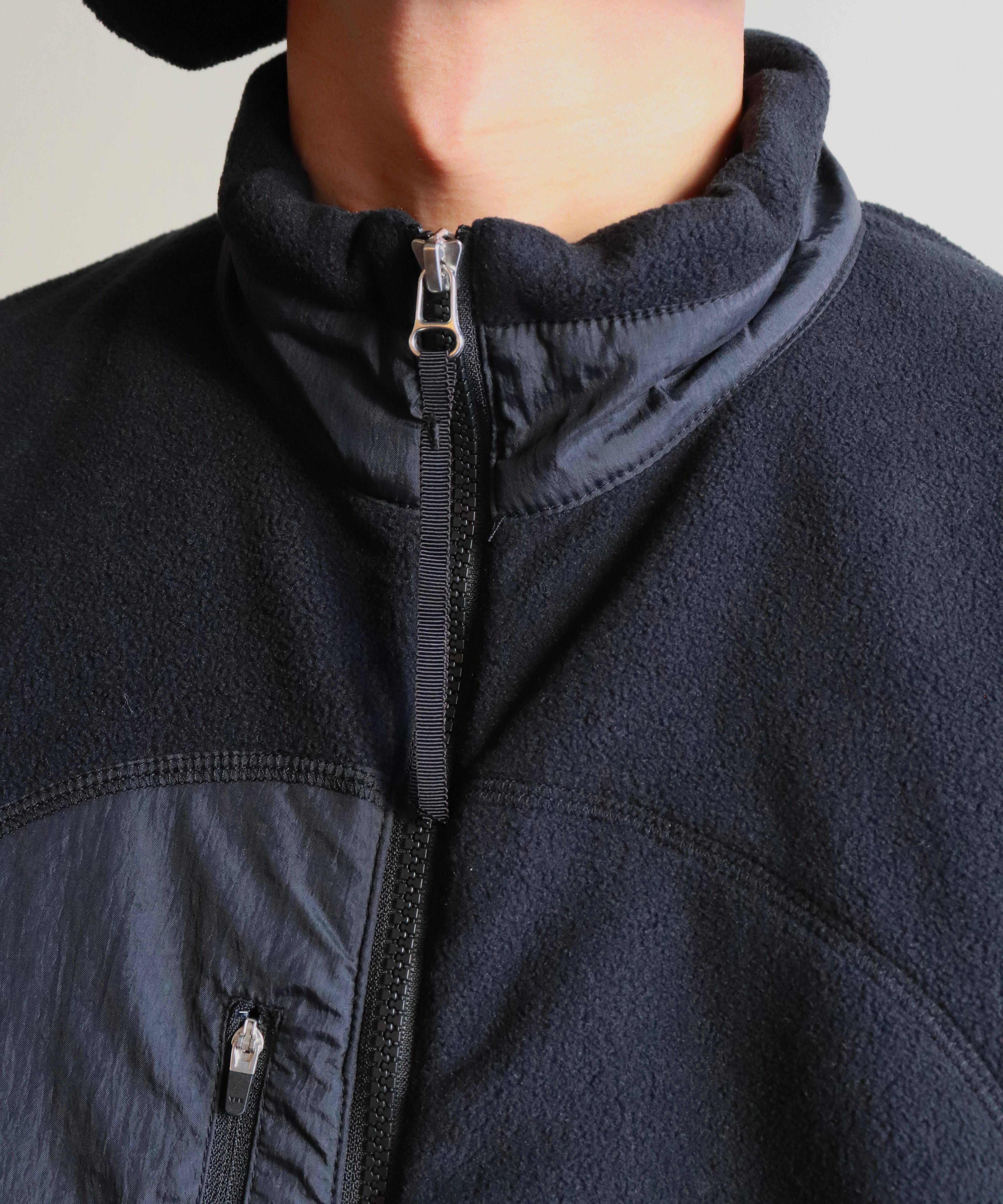 両面起毛の肌触りの良いフリースとシワ加工を施したナイロンタフタの切り替えがアクセントになっています。