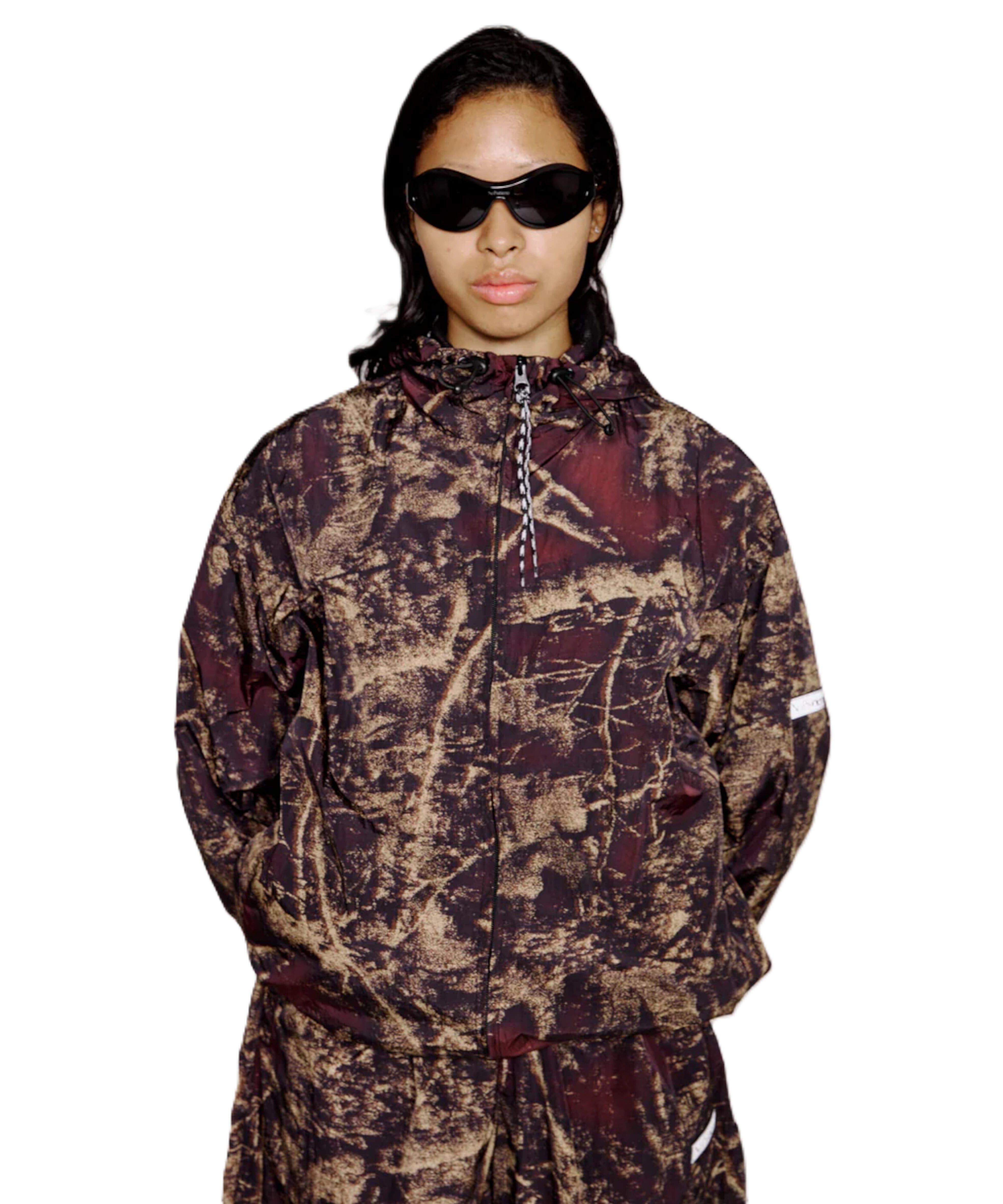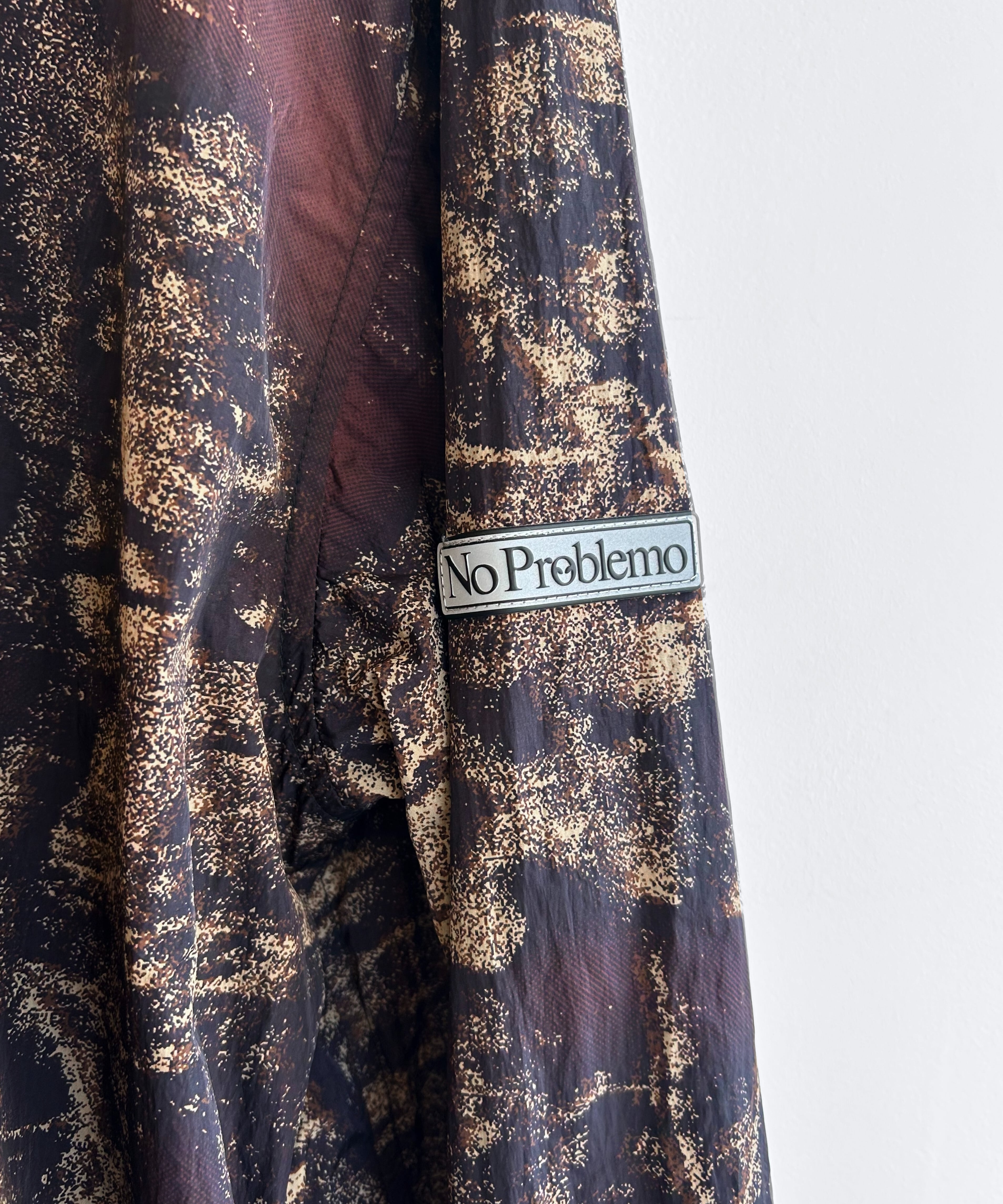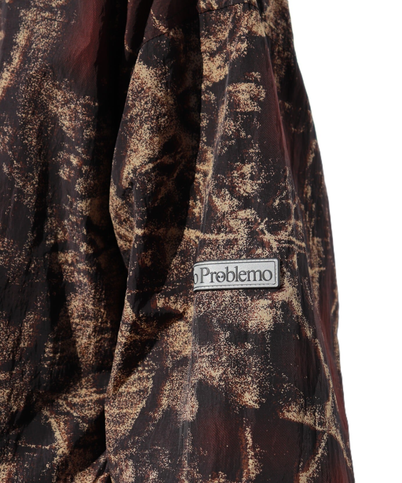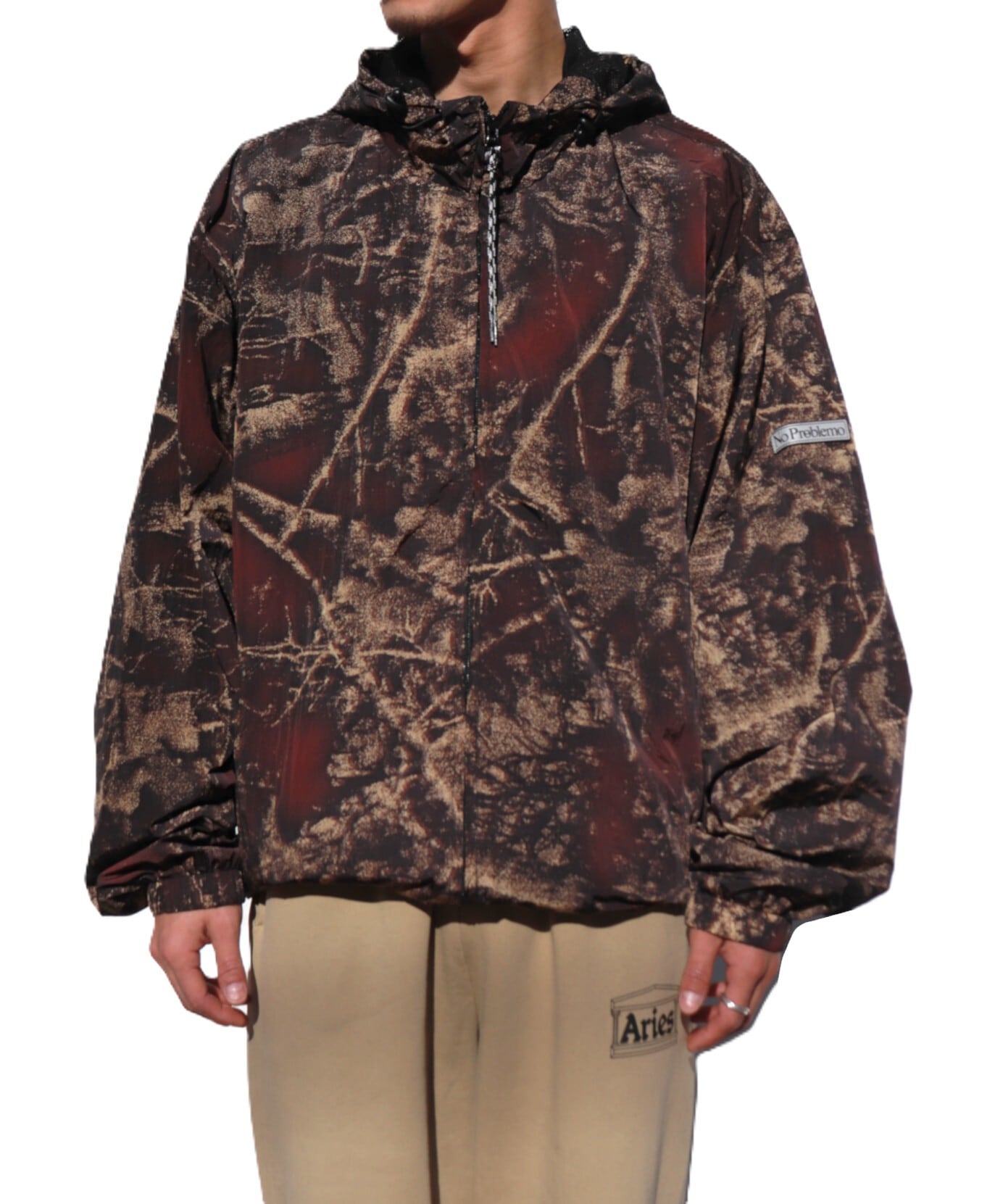 全面に施されたノープロブレモのツリーカモ柄は、自然のリズムとストリートのエネルギーを融合。
