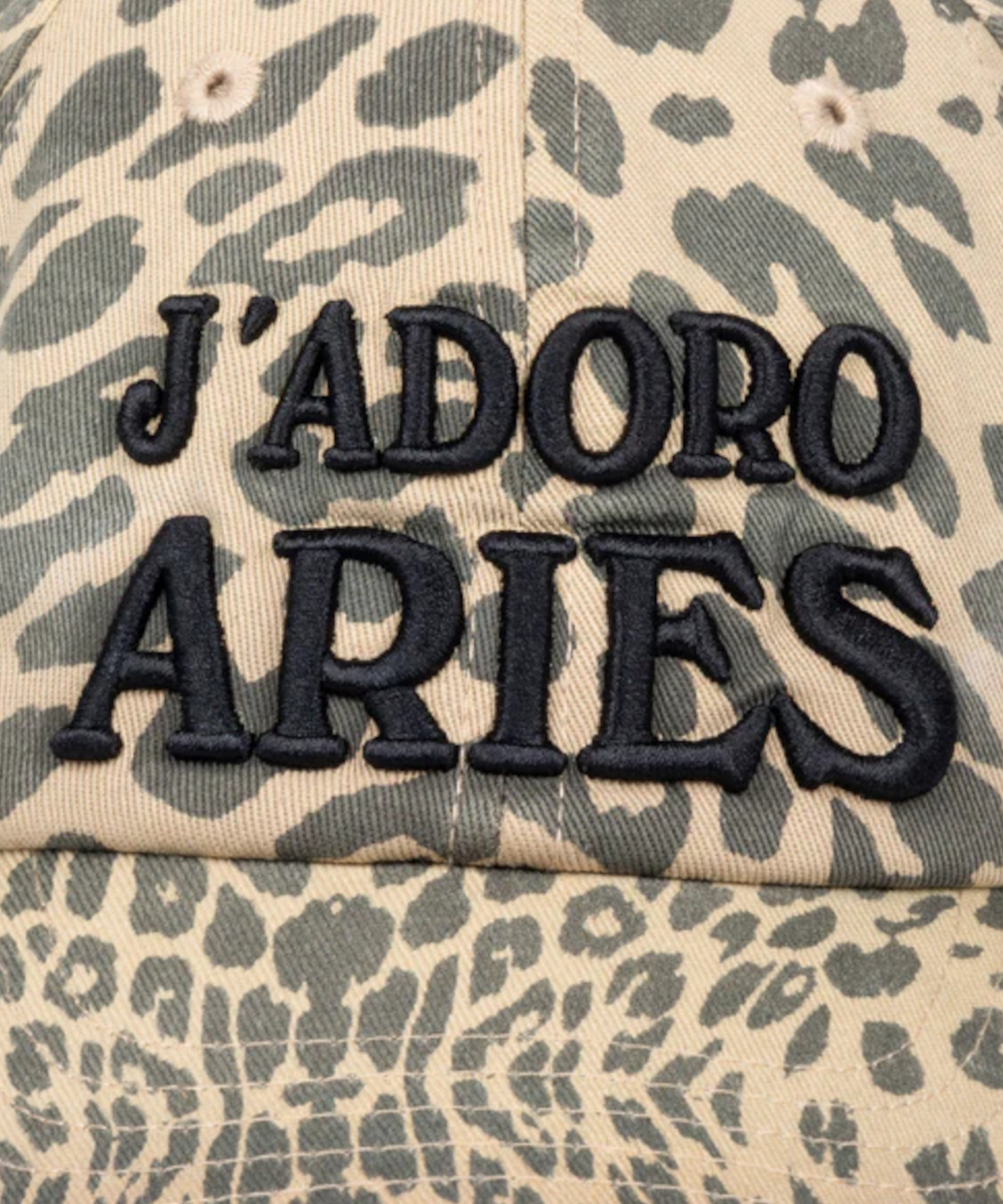 シーズナルなヒョウ柄プリントが視覚的なインパクトを与えつつ、フロントに配された“J'ADORO ARIES”のメッセージが、ブランドのアイロニカルな美学を静かに主張します。