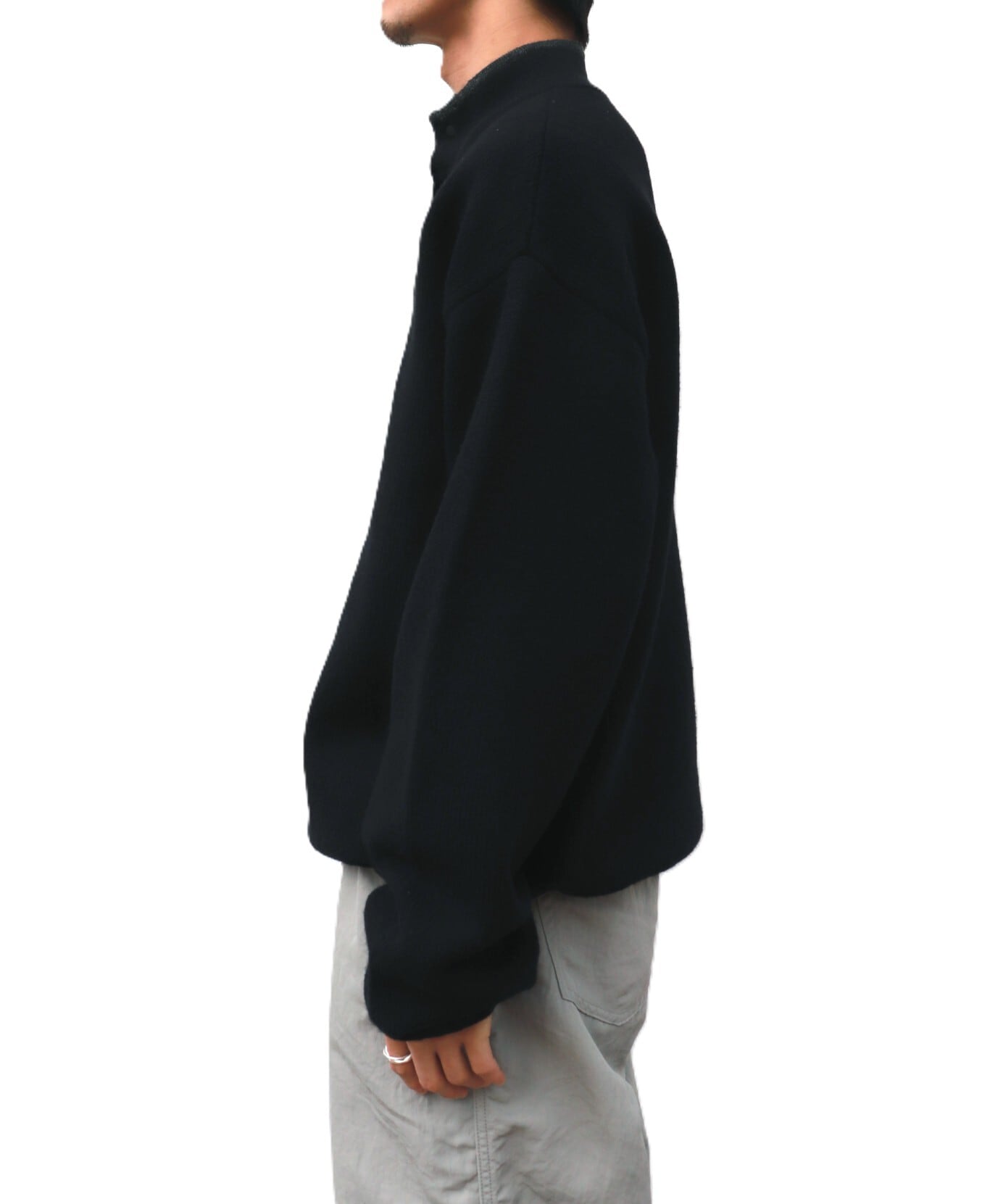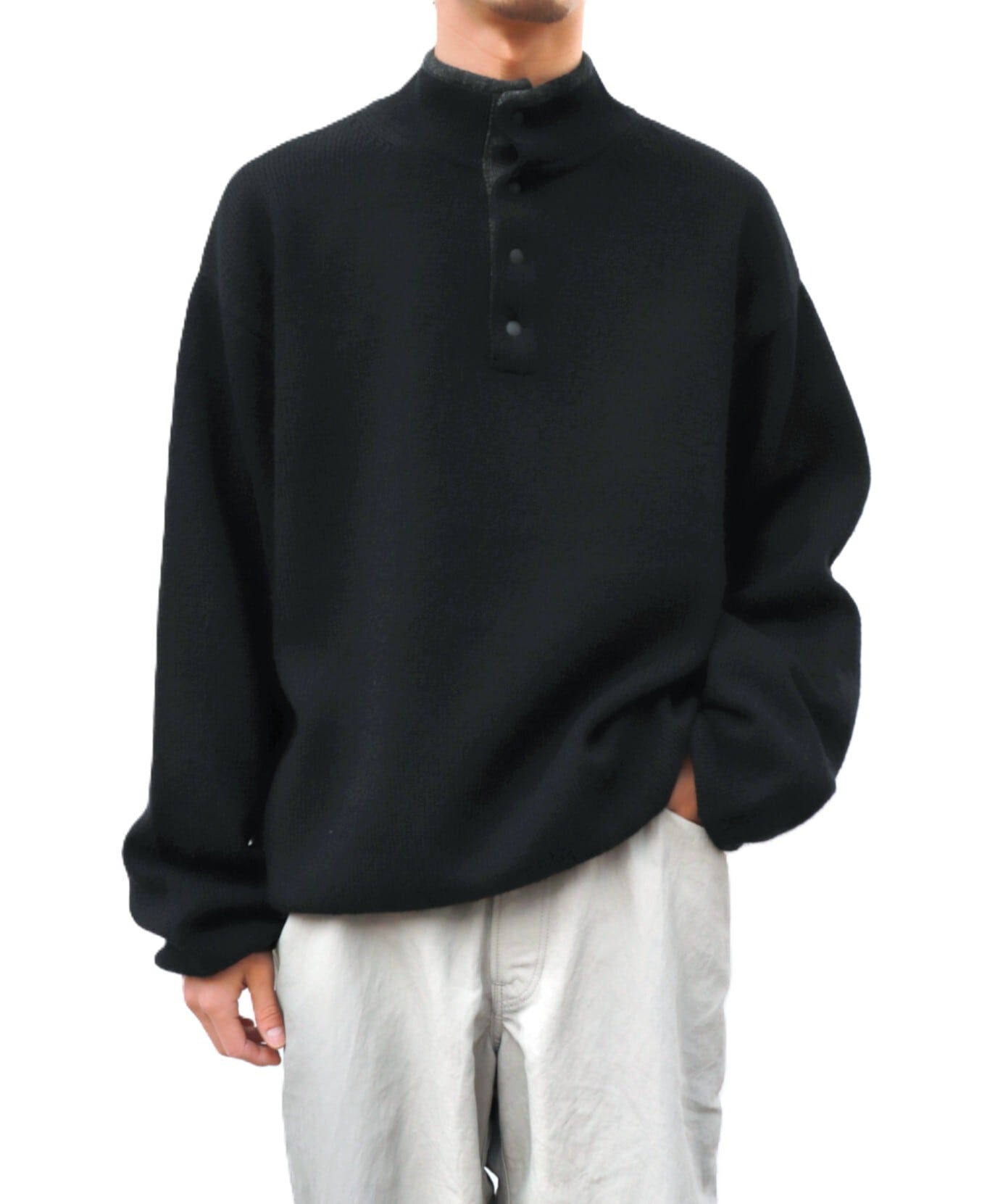 アウトドアブランドや古着で見る”スナップT”をモチーフに、上質なニット素材にアップデートしたUNUSEDらしいアプローチの1着。