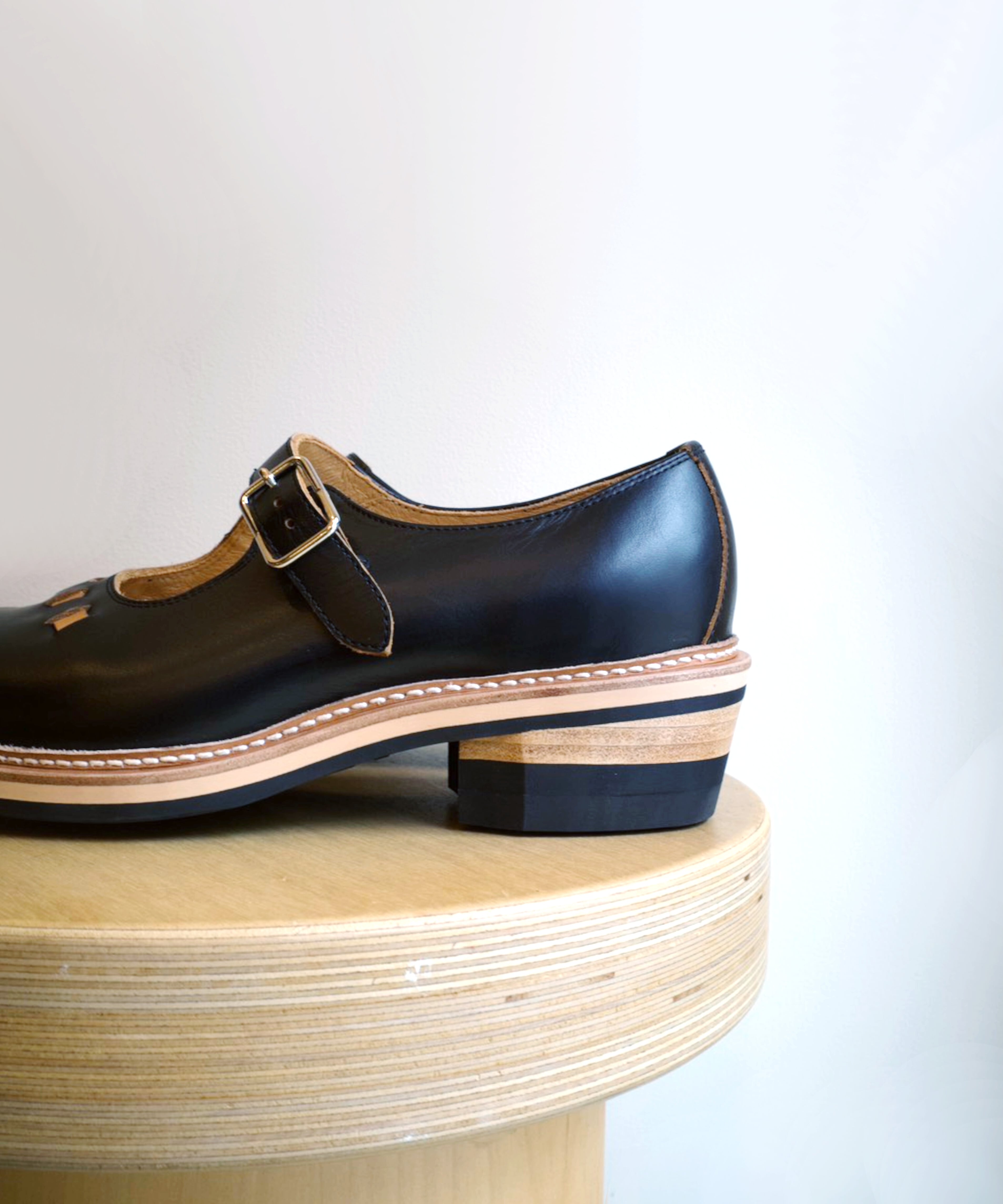MARIEOHIRA / SHO-002 Stitched Mary Jane / Black / Sole Natural
