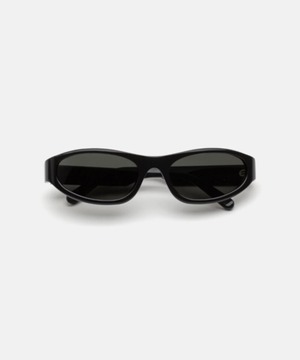 光沢のあるブラックフレームには、高級イタリア製アセテートを使用し、静かで力強い存在感を放ちます。