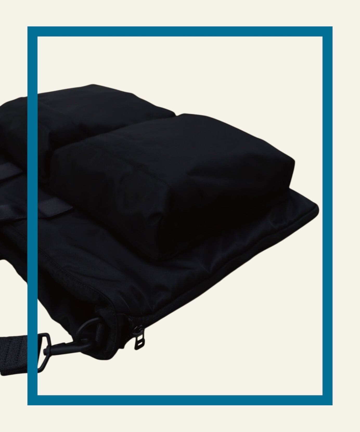 できる限りヘルメットバッグの本質は保ちつつも、ワイズを広めにとって横長のフォルムにし、肩掛けした際のフィット感や落ち感を重要視しました。
