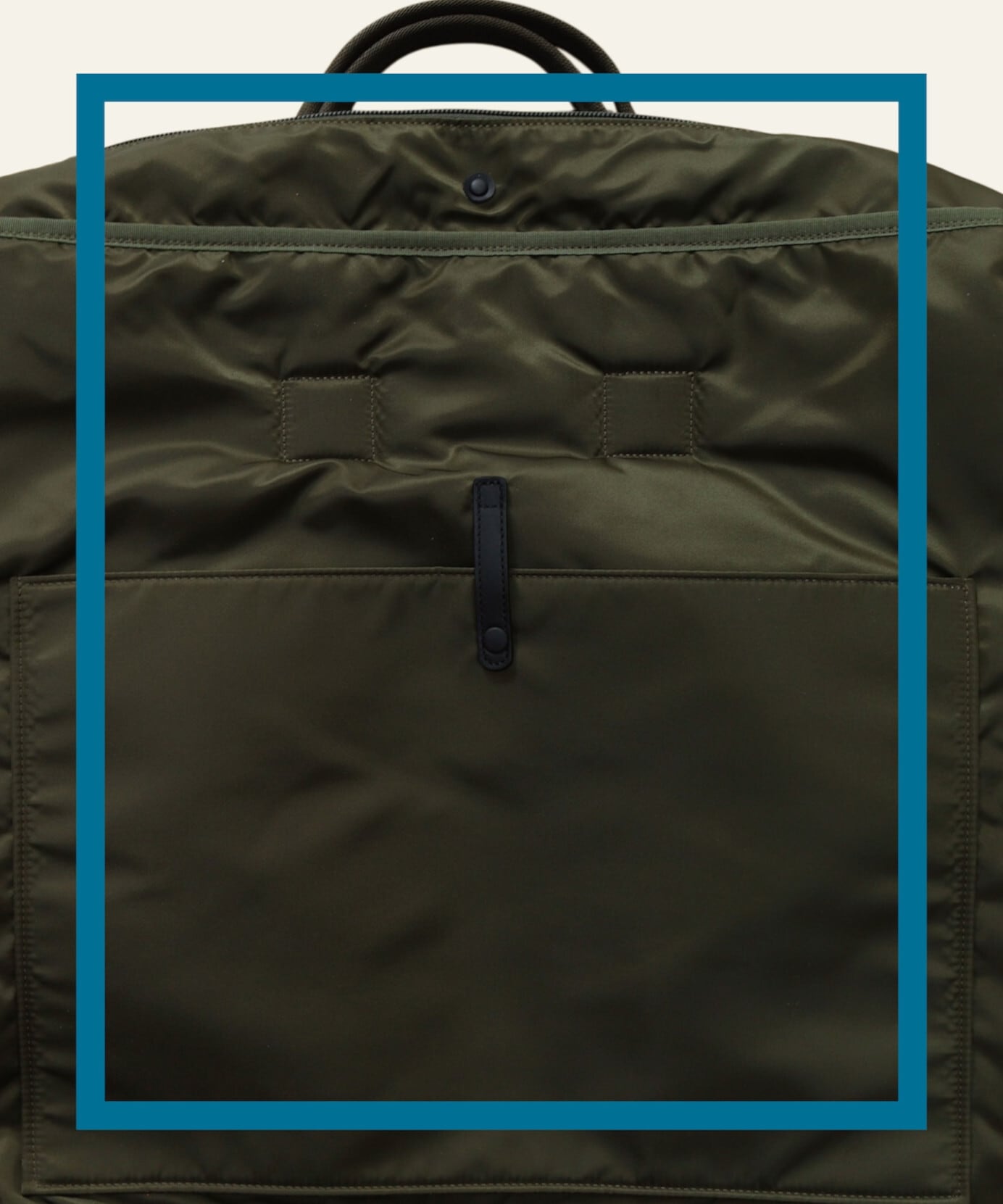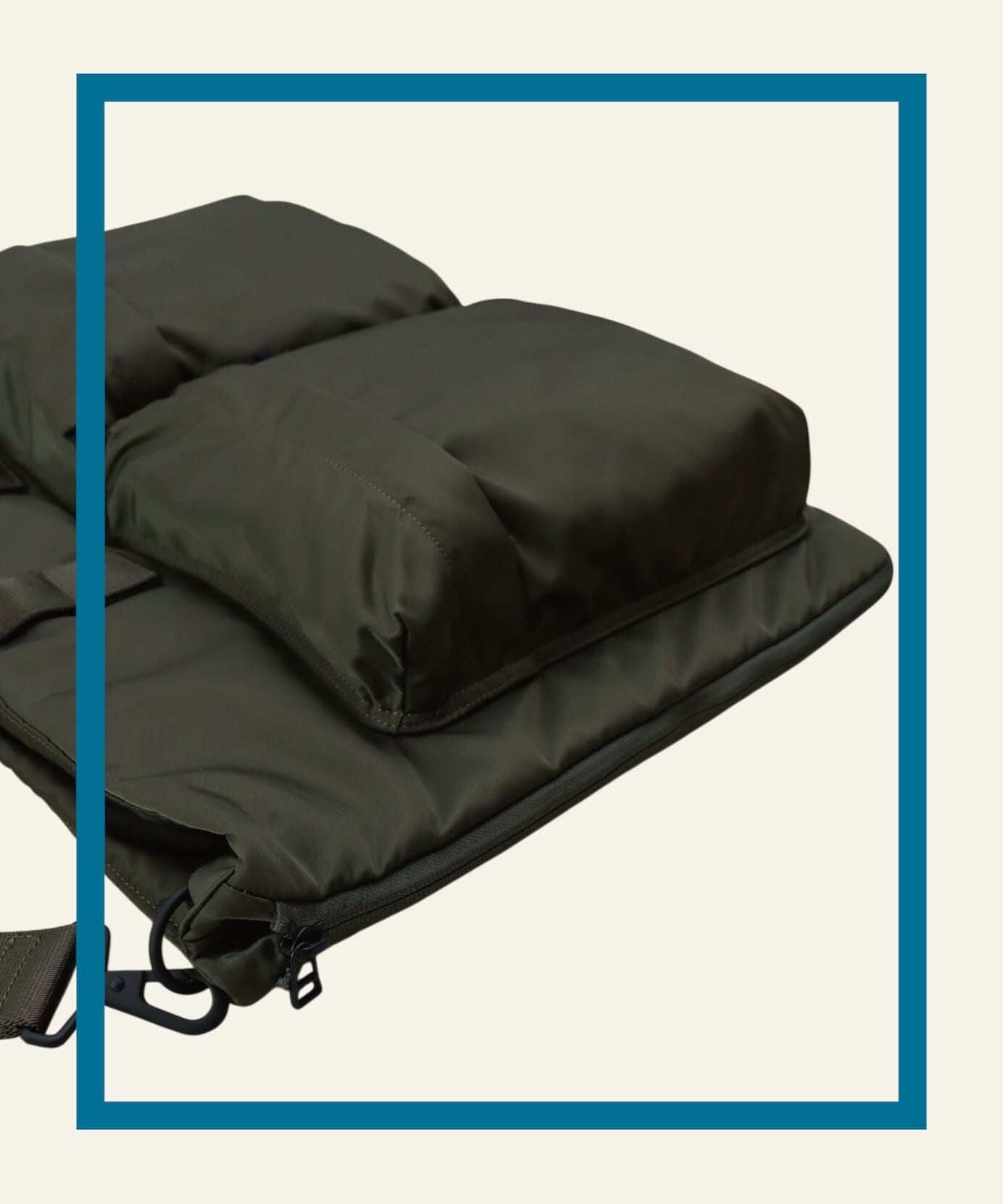 できる限りヘルメットバッグの本質は保ちつつも、ワイズを広めにとって横長のフォルムにし、肩掛けした際のフィット感や落ち感を重要視しました。