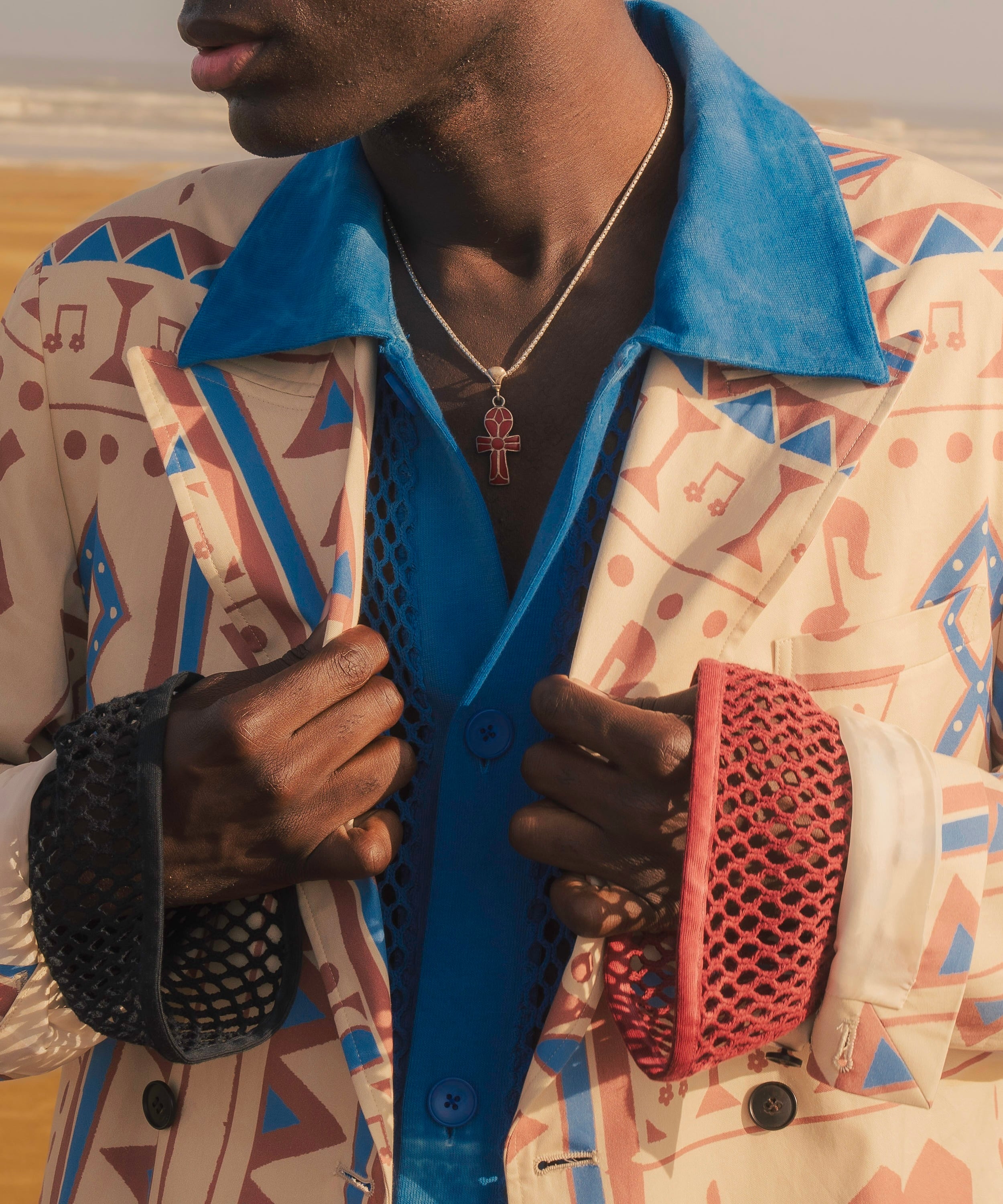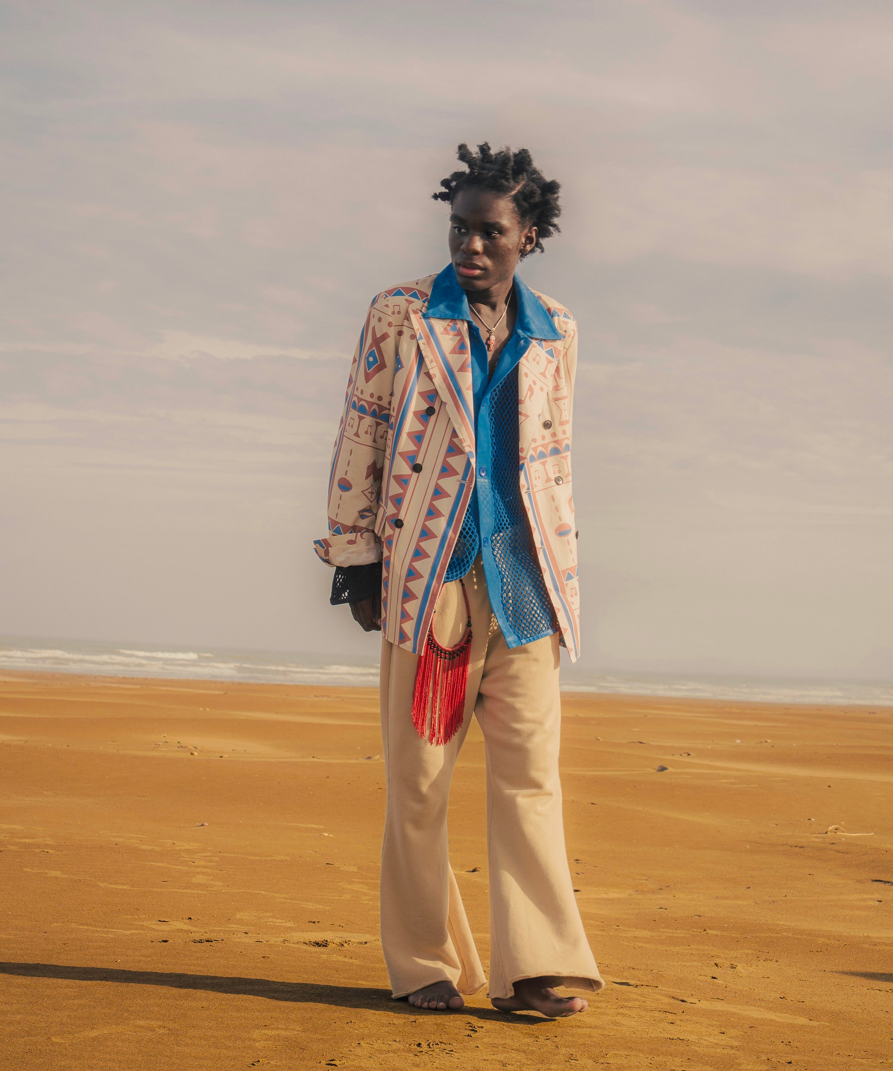 南アフリカの文脈を拾い、ビビッドなカラーのアイテムや民族的な小物を合わせることで、スタイリングにより奥行きを持たせることができます。