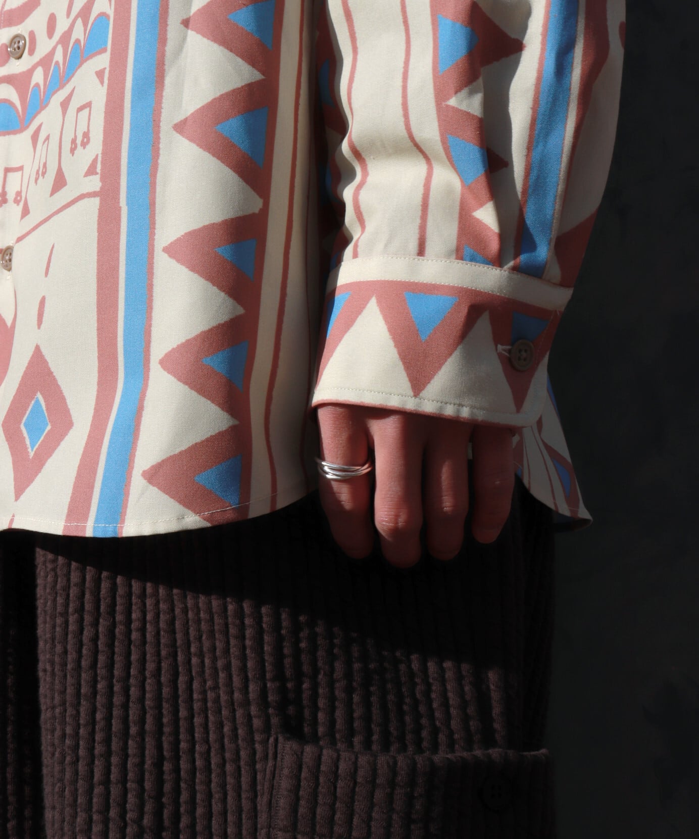 柄の存在感を引き立てながら、着やすさを損なわないバランス。