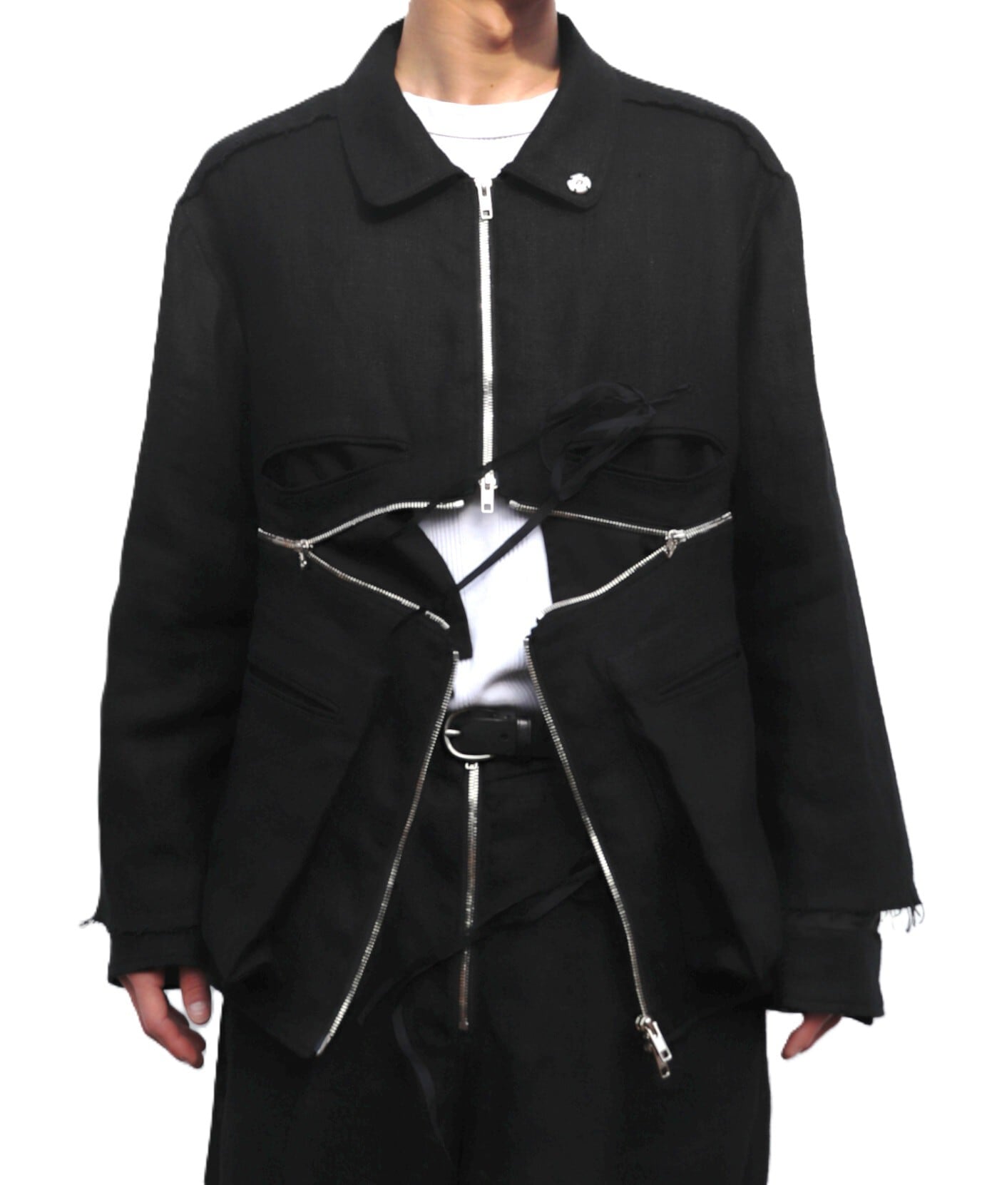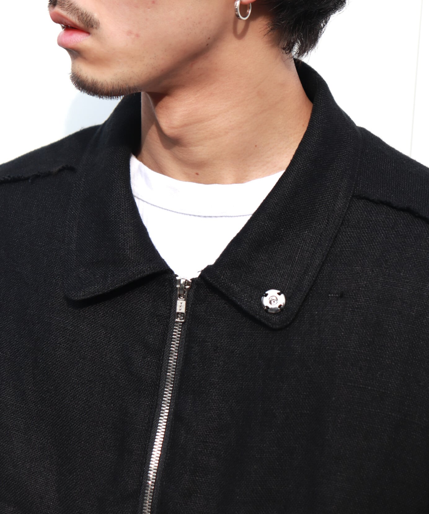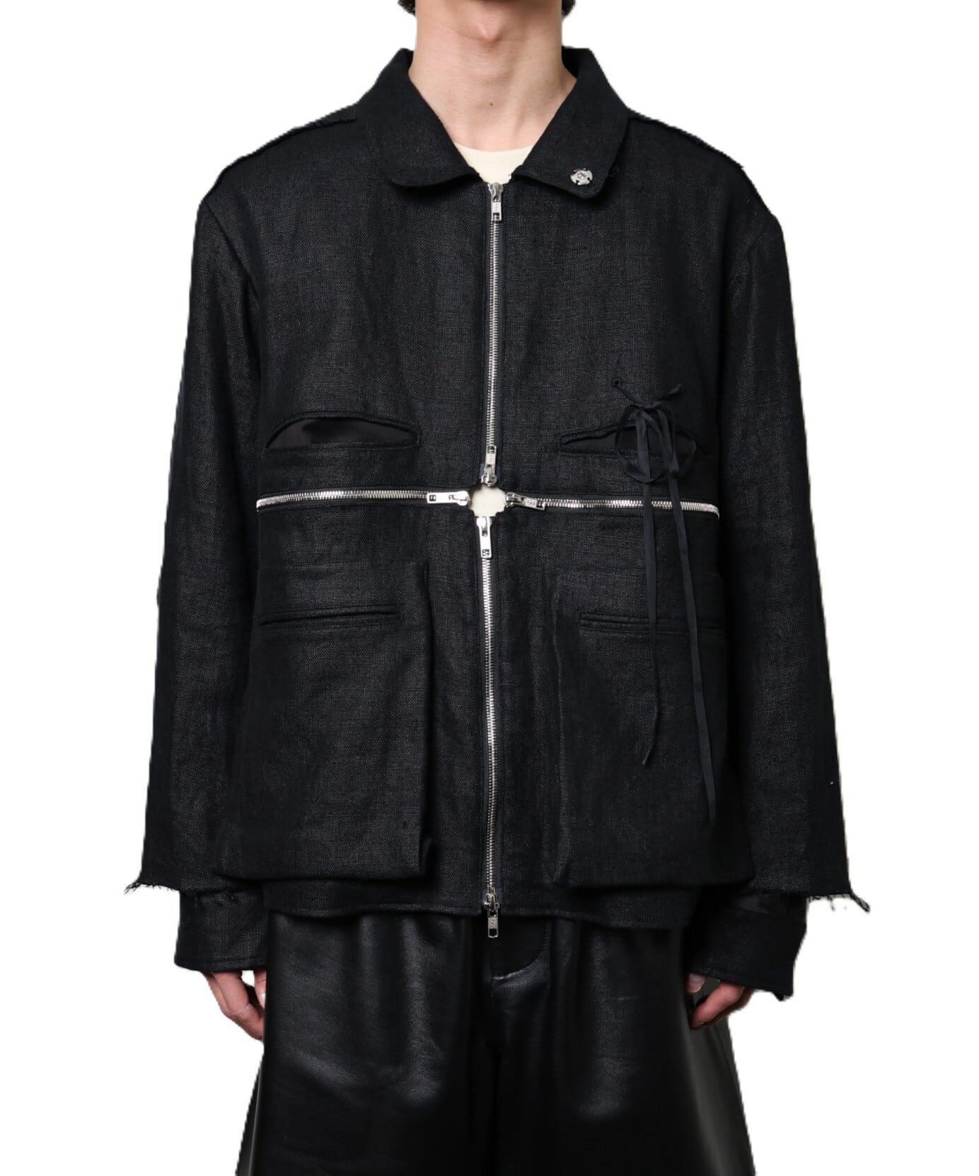 厚手のリネンが持つ豊かな表情と、ジップの開閉で変化する立体的なデザインが、静かな存在感を放つ一着です。