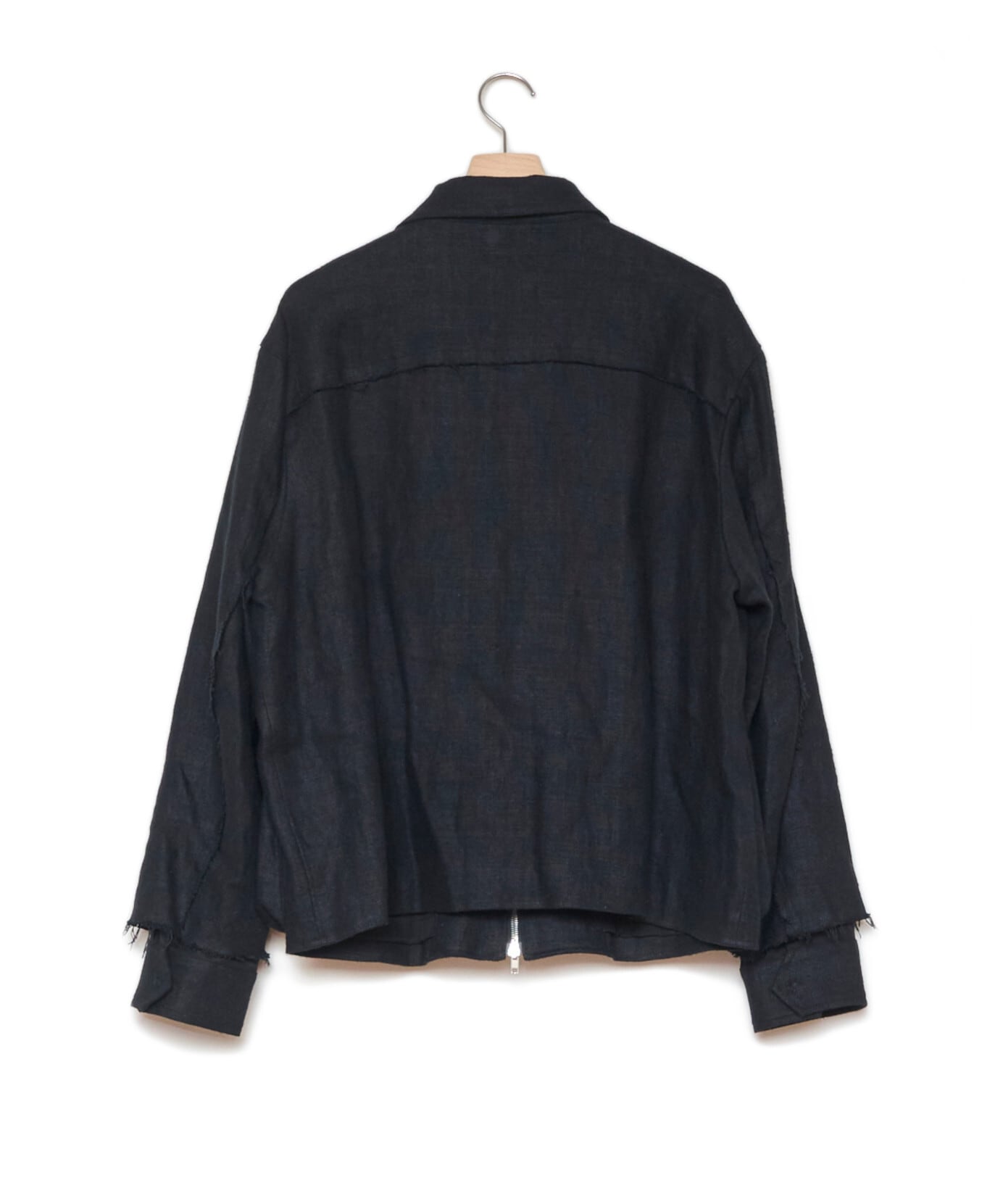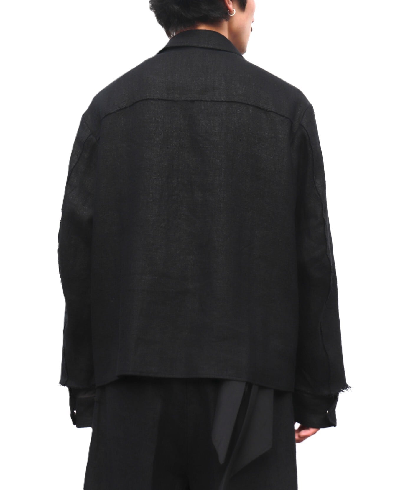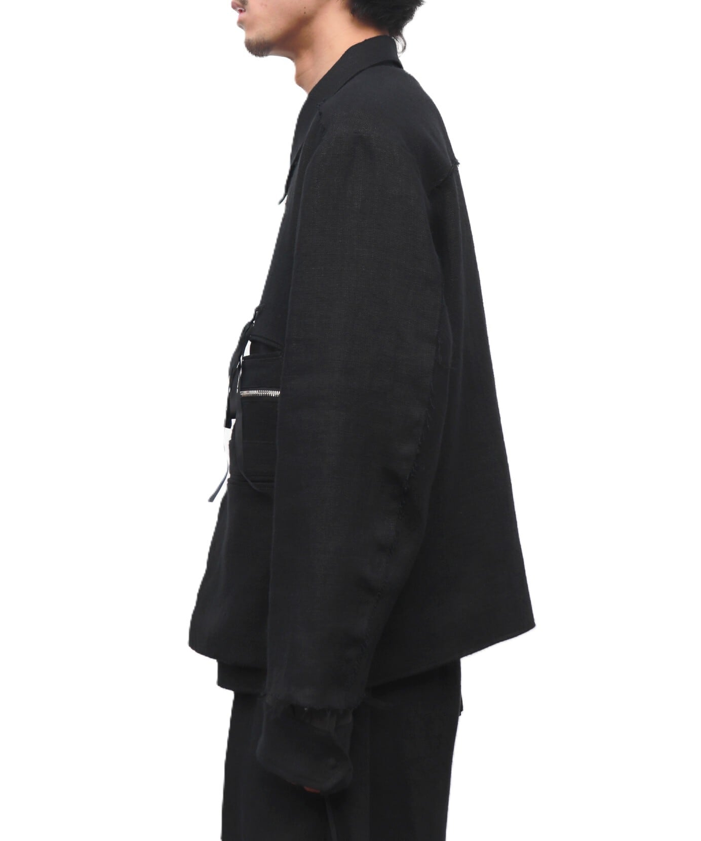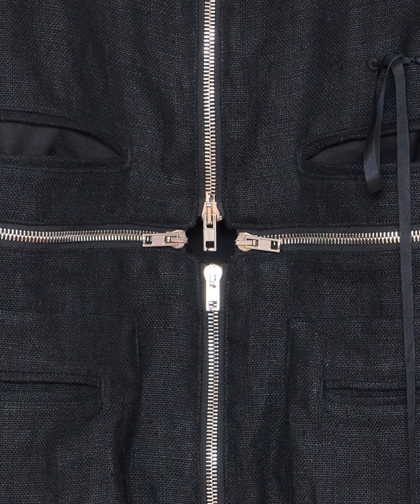 リネン素材なので、夏場はショーツと合わせてもバランスよく着られます。インナーに色物や柄物を入れ、ジップの開け具合で見え方を調整しながら、スタイリングを楽しんでいただきたい一着です。