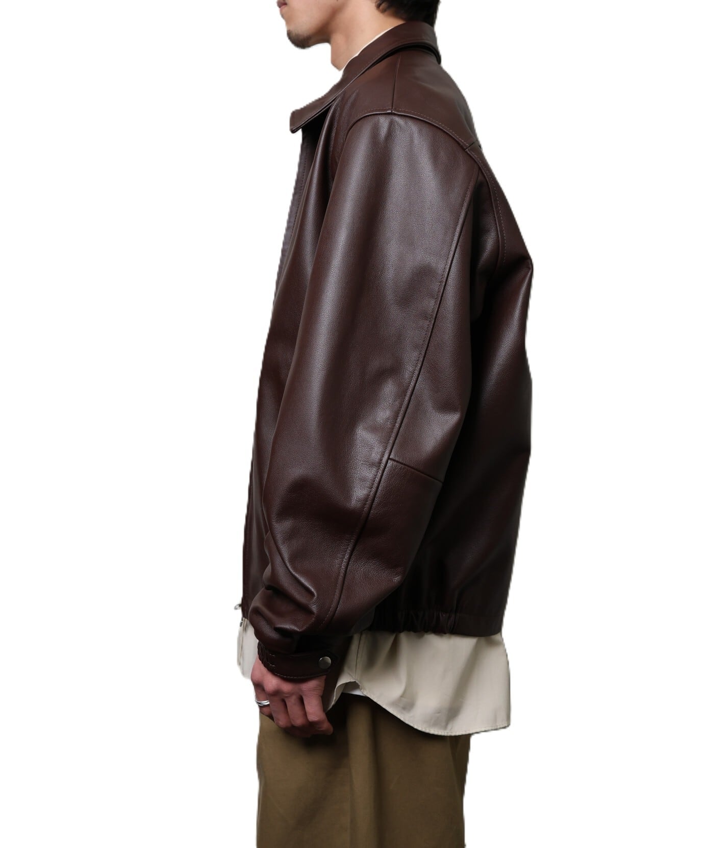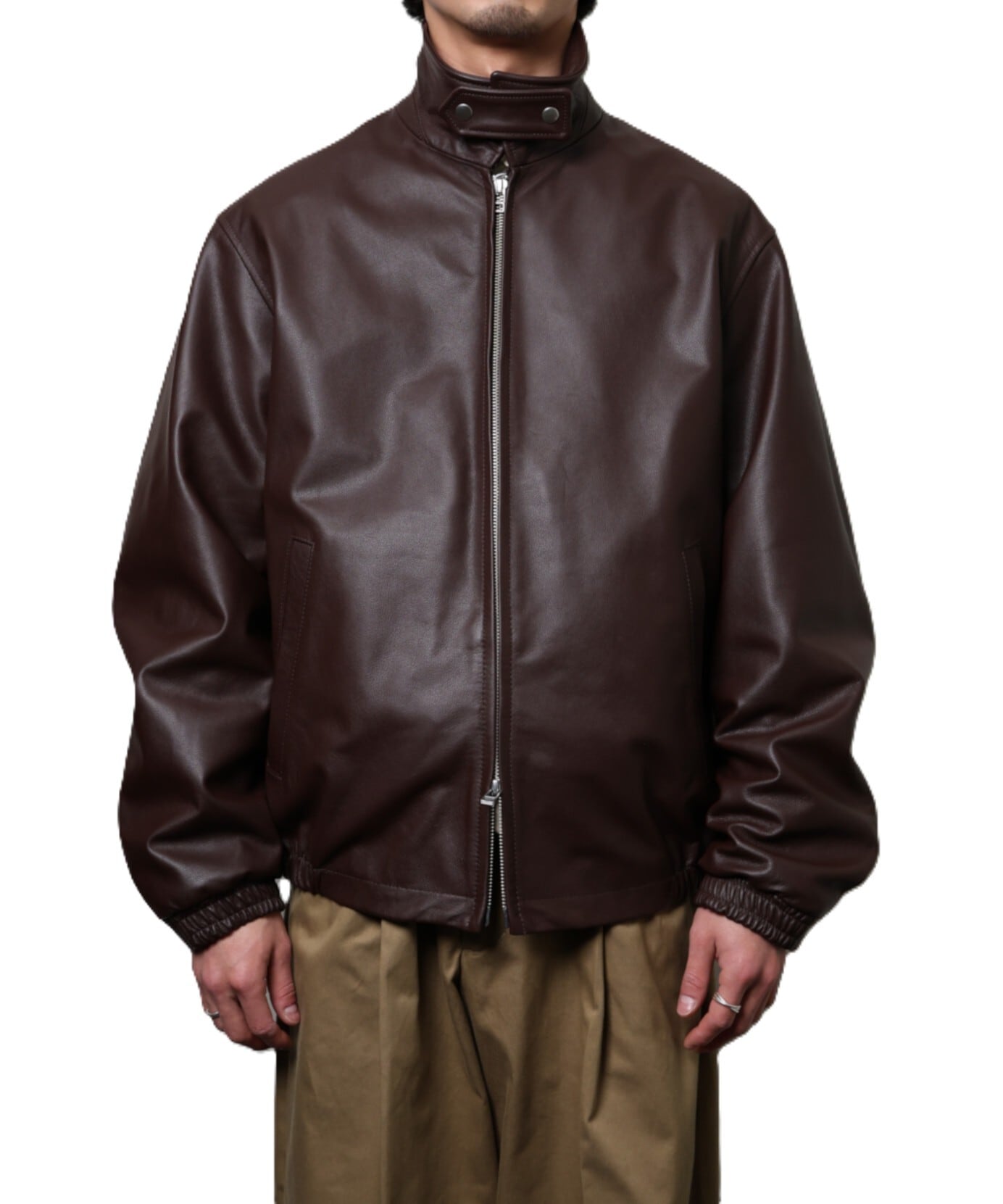 レザーでありながら軽やかに羽織れるシルエットです。