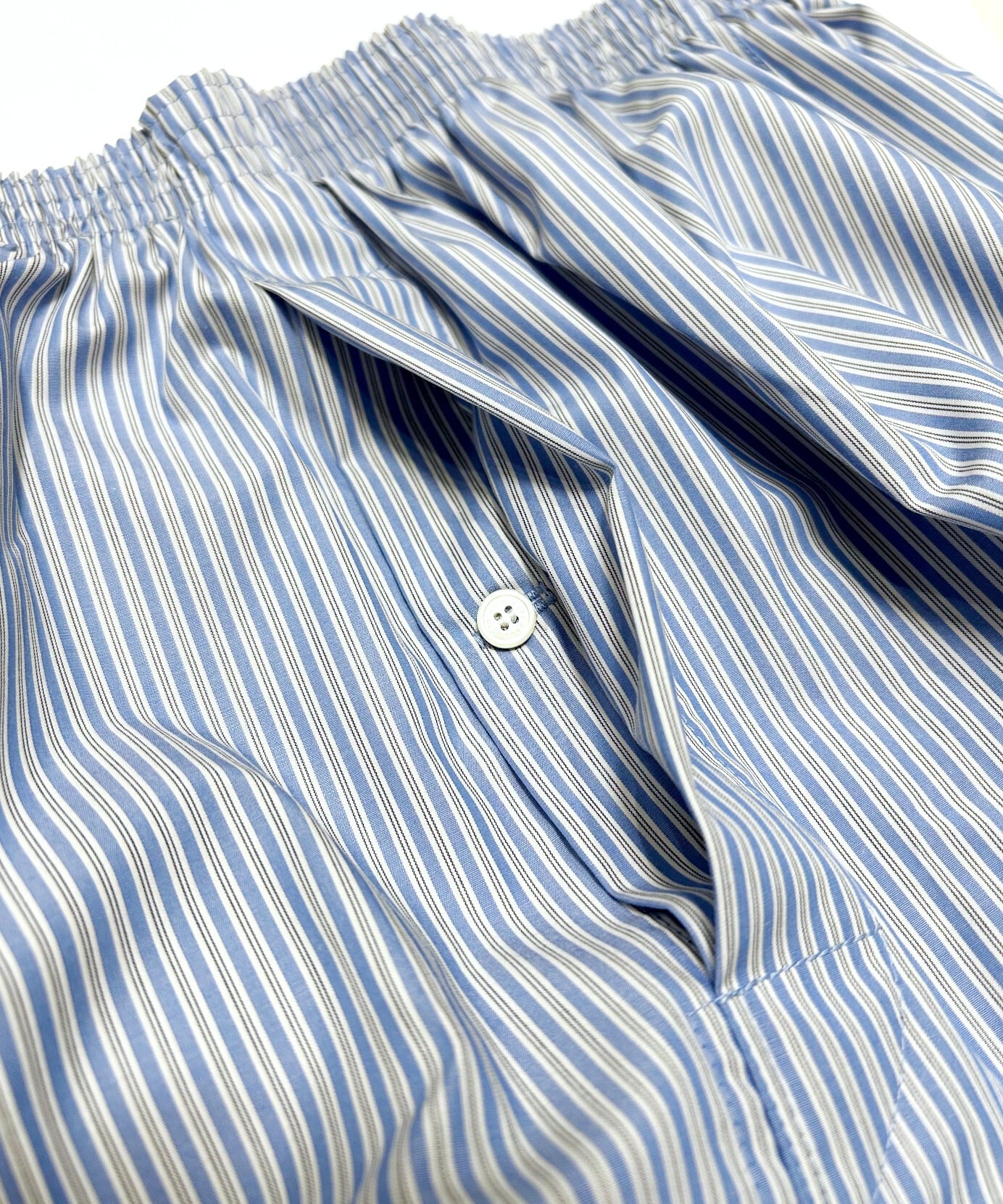 細番手の糸で織り上げた、カラフルなストライプ生地を使用したコットントランクス。