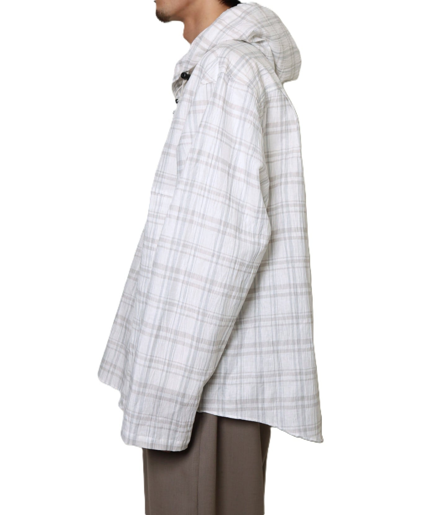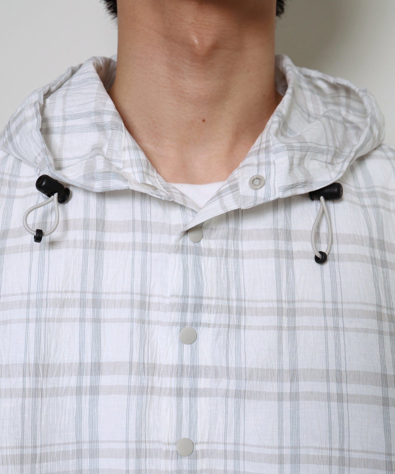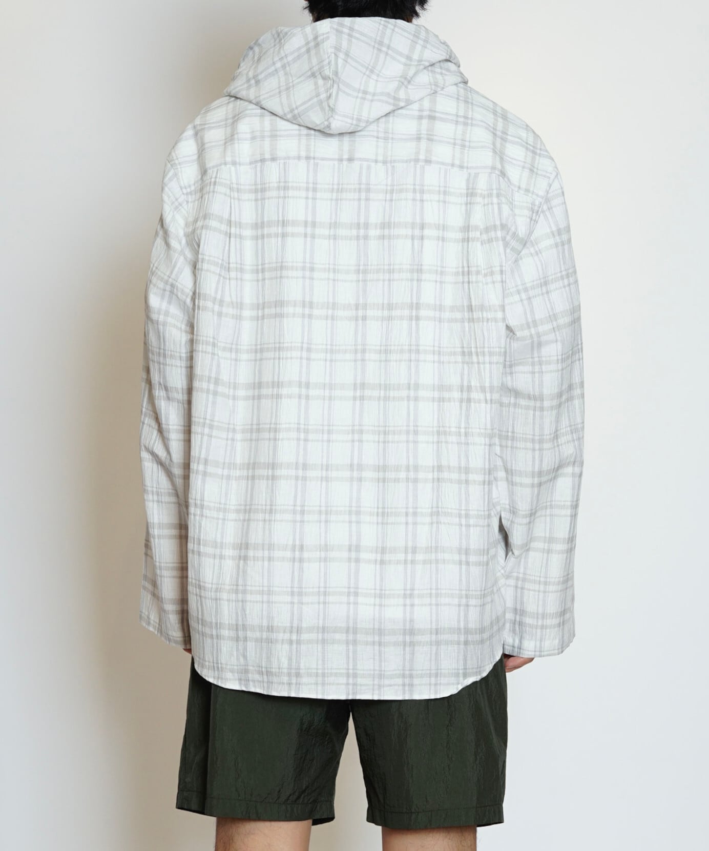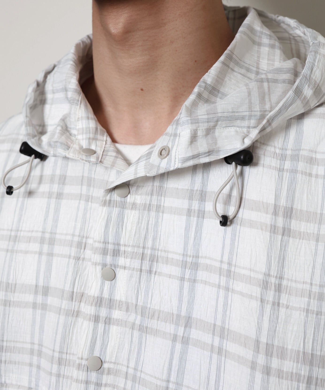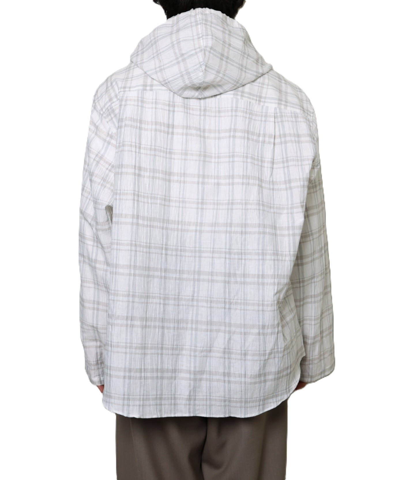 シャツの軽さとフーディーのカジュアルさが共存し、