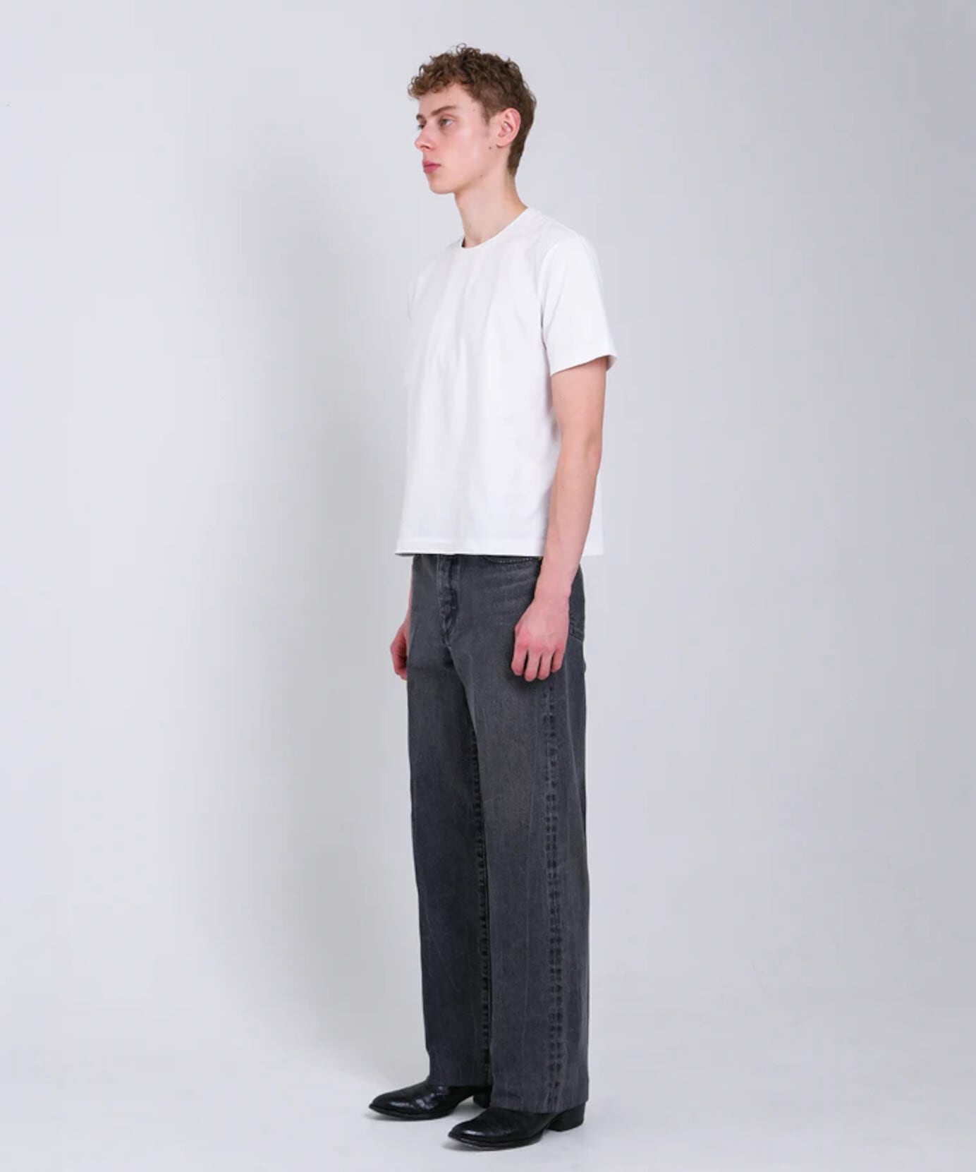 日本製プレミアムセルビッジデニムを使用し、ワイドレッグと深めの股上でバランスの良いリラックスフィットに仕上げています。