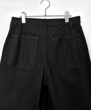 袴のような立体的シルエットをデニムで再解釈した一本で、