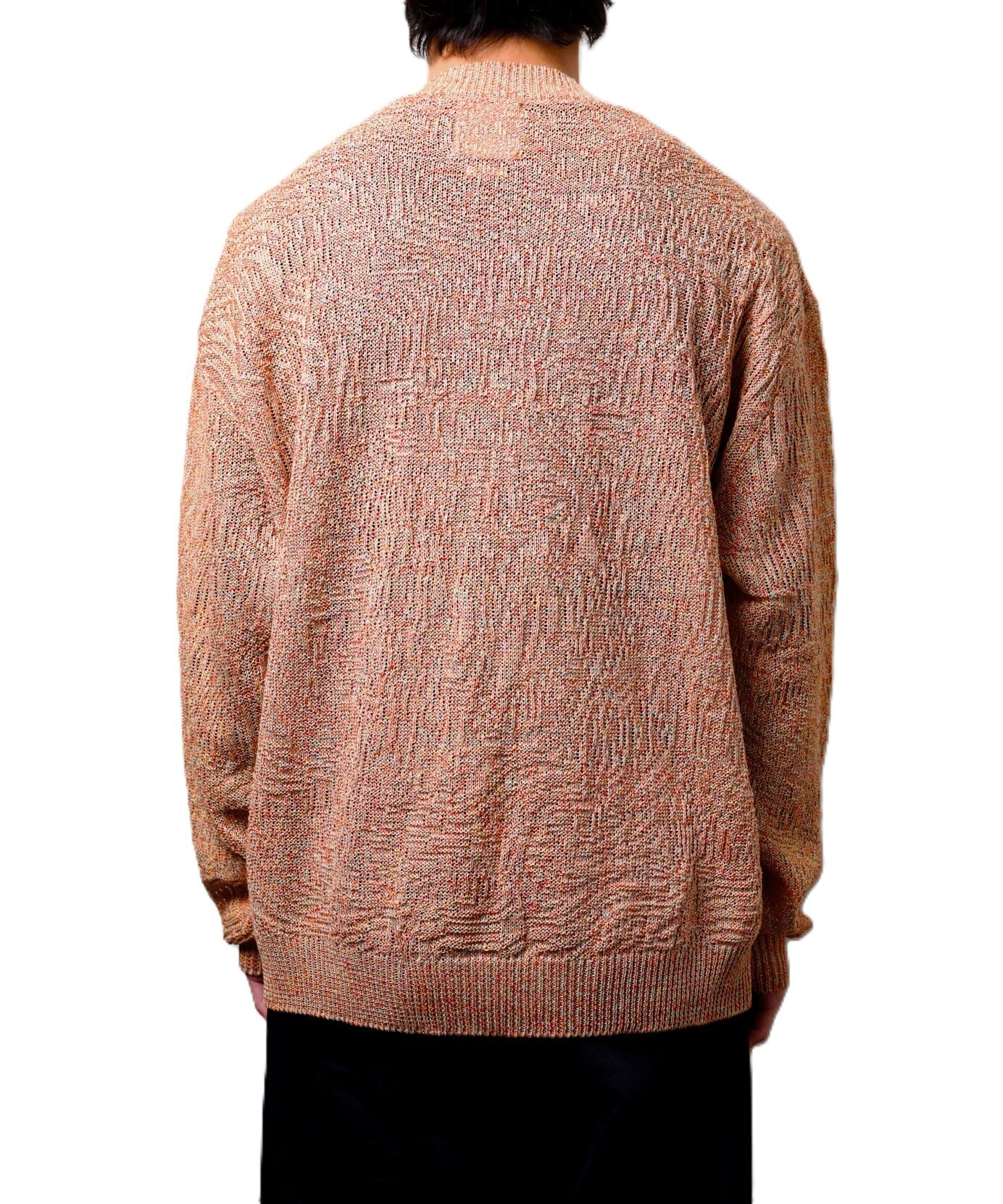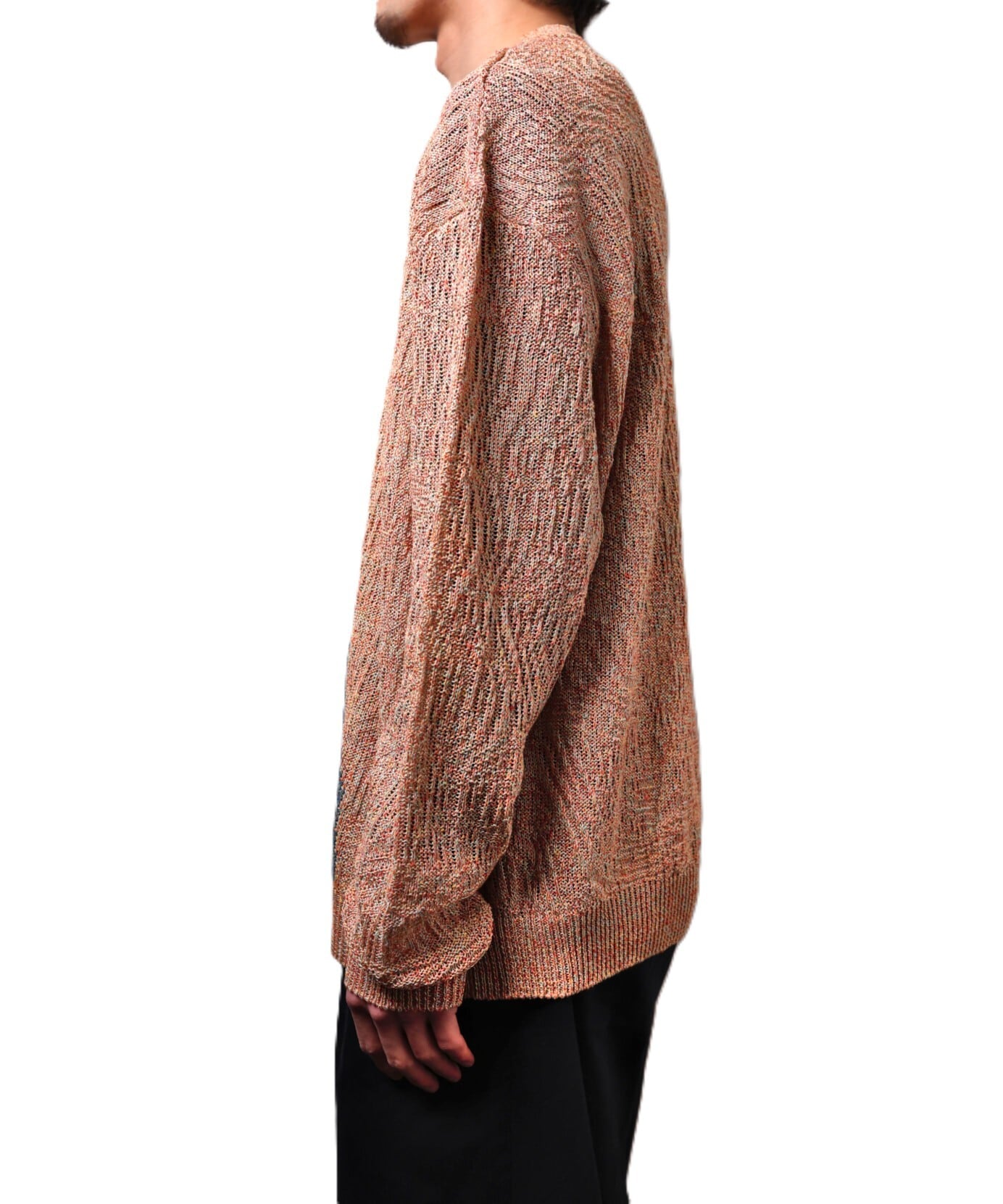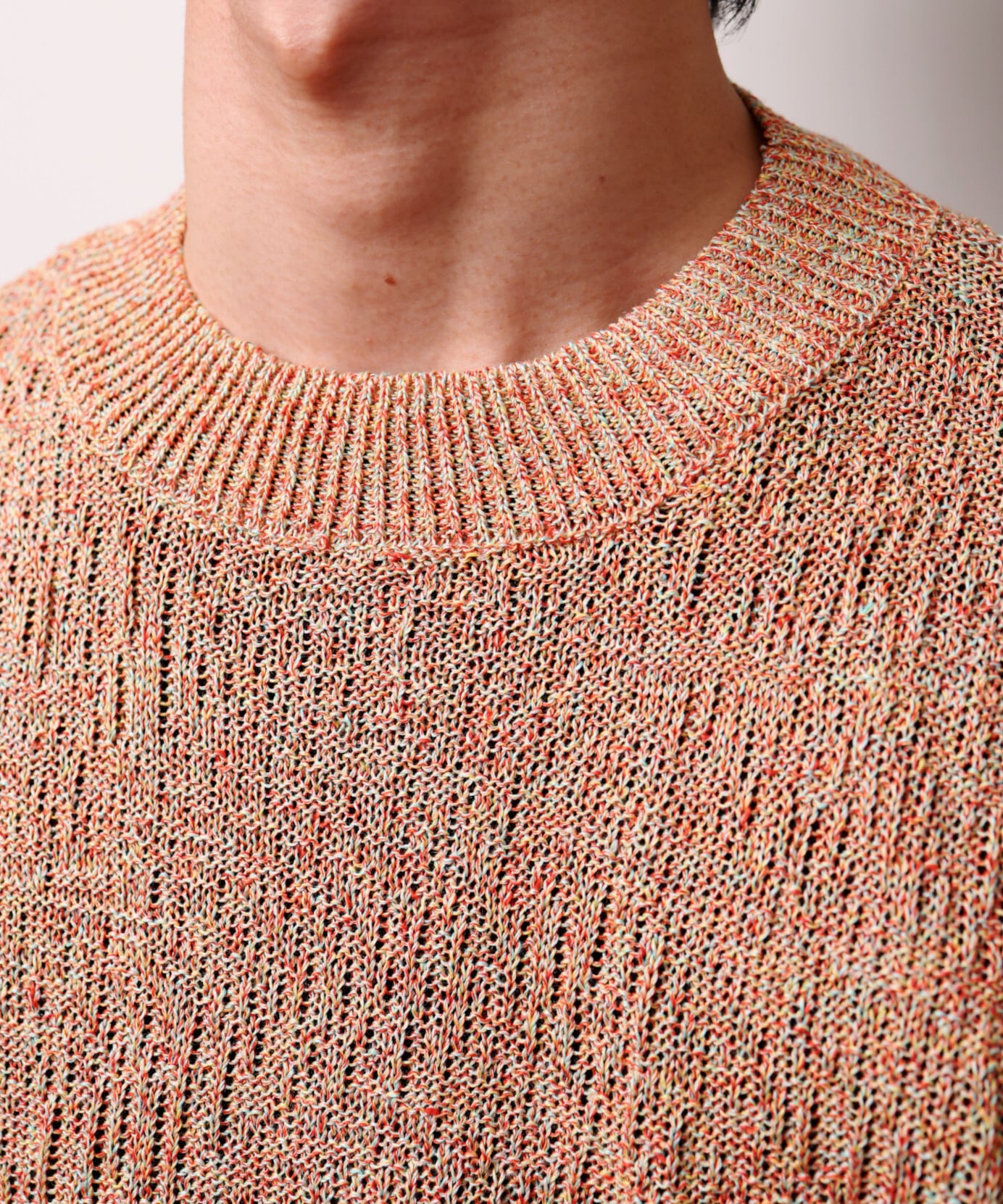 リネン100%のサマーニットを使用し、程よく透け感のある軽やかな風合い。全体に余裕を持たせたシルエットなので肌離れが良く、通気性・吸水性・速乾性に優れたリネン素材の特性も相まって、夏場でも快適に着用いただけます。