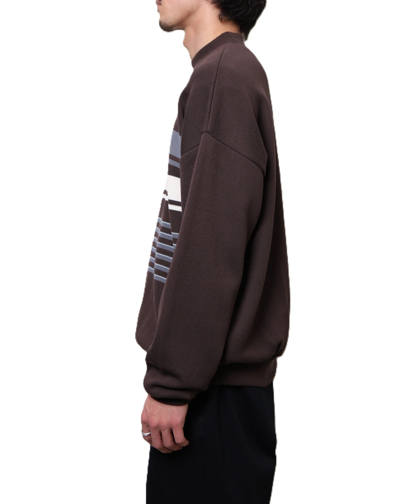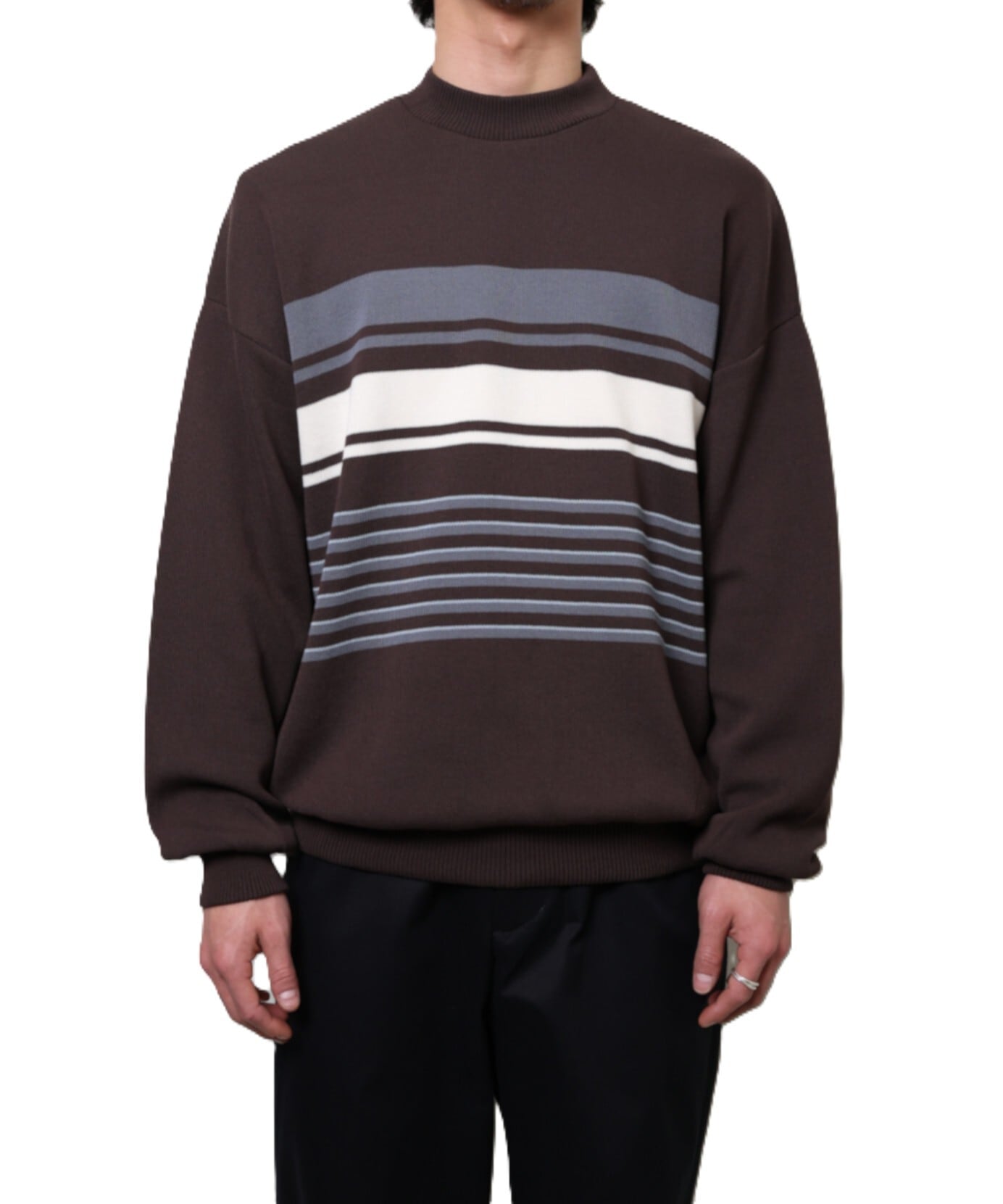 SEVEN BY SEVEN / 800-6160107 CREW NECK STRIPE KNIT SWEATER (BROWN)