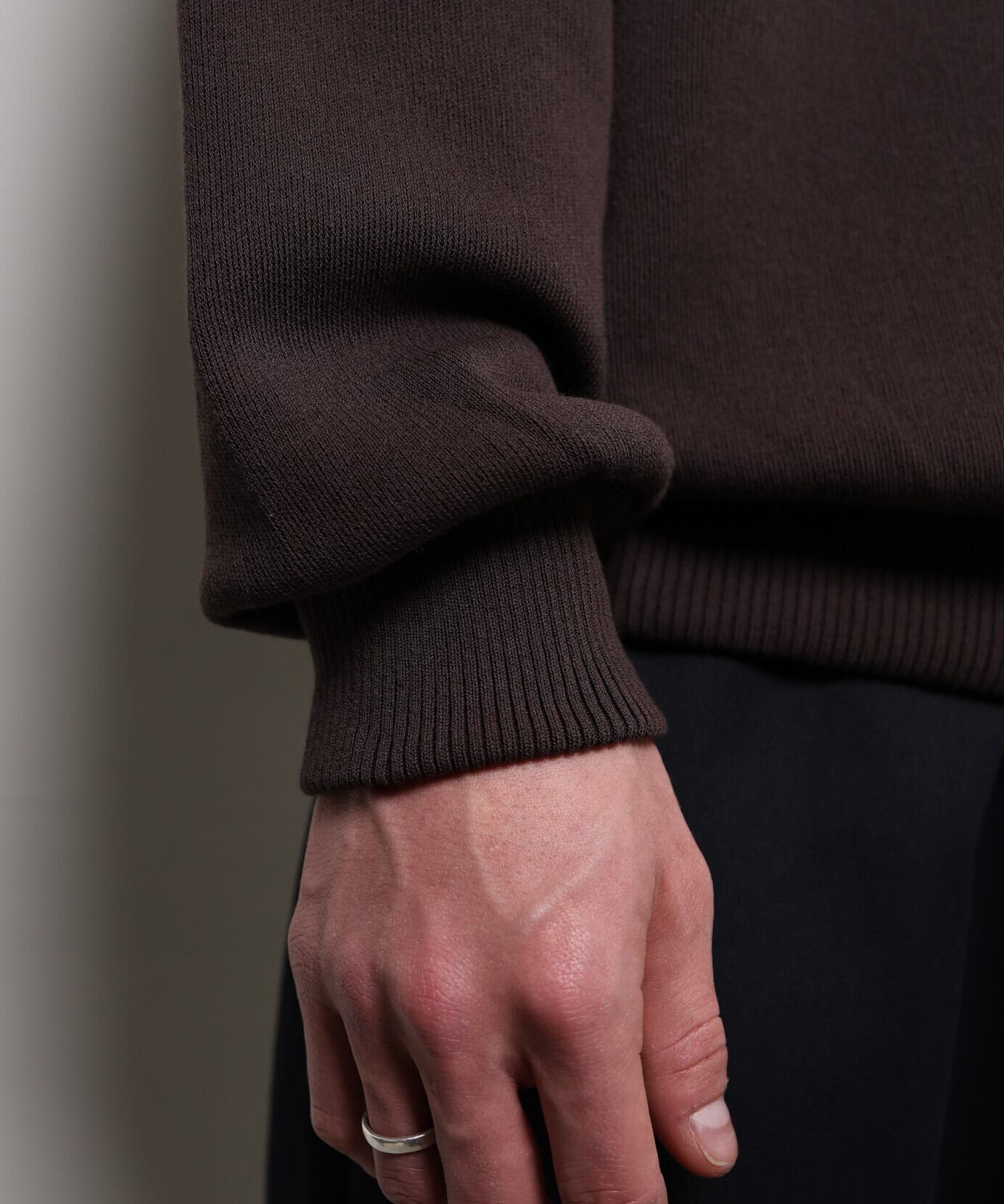 171cmでMサイズを着用しています。程よくゆとりのあるサイズ感で、見た目以上に着心地が軽いのが印象的でした。コットン100%とは思えないほど伸縮性があり、裾や首元のリブはしっかりと締まるつくり。個人的には、裾を内側に織り込んで少し丸みを出して着るのがおすすめです。