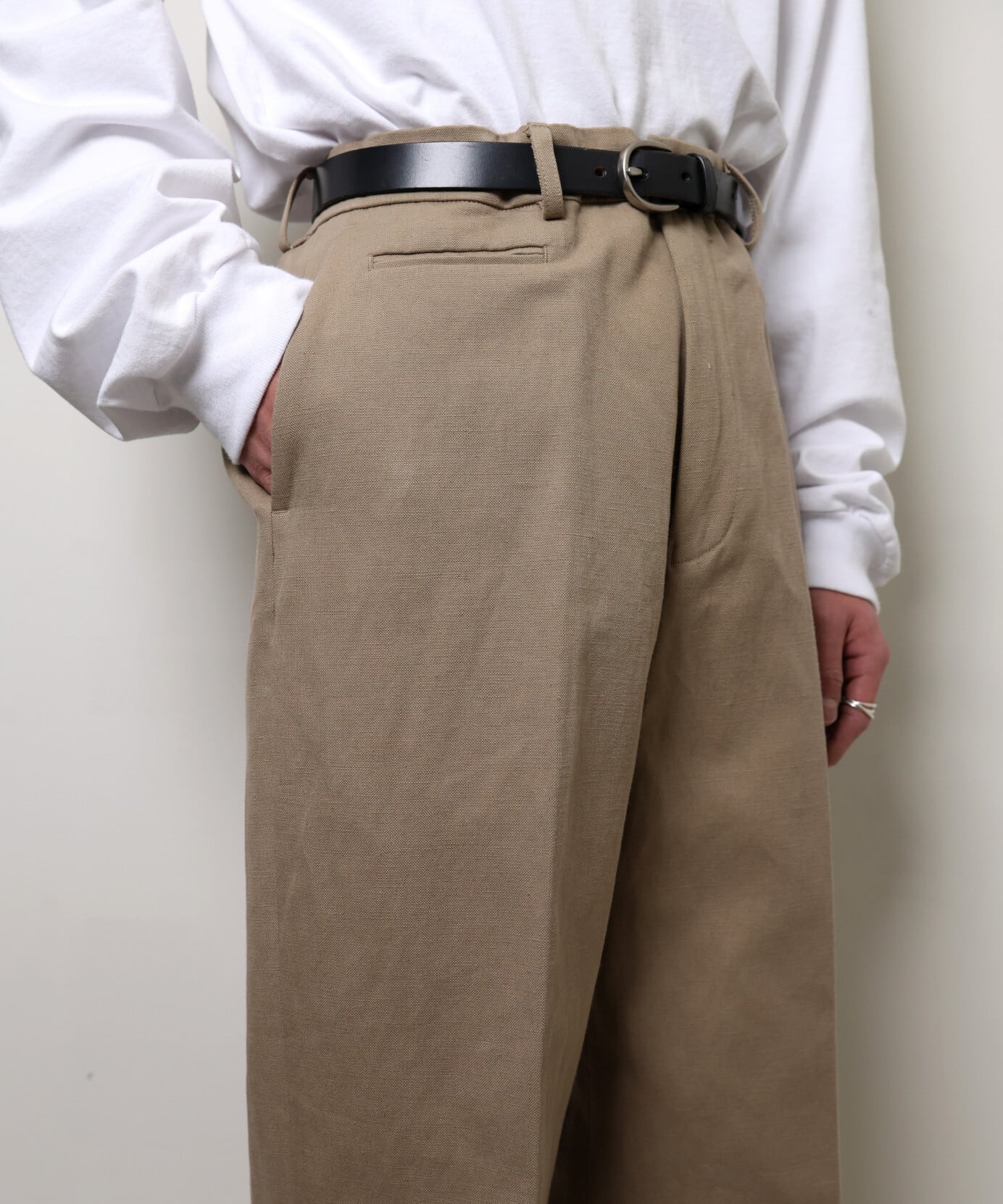 コットンリネン素材の落ち感をきれいに活かした一本です。