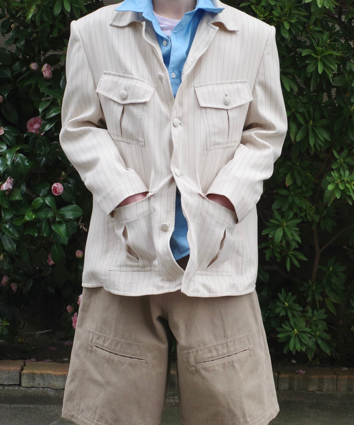 同生地のジャケットと合わせるのはもちろん、